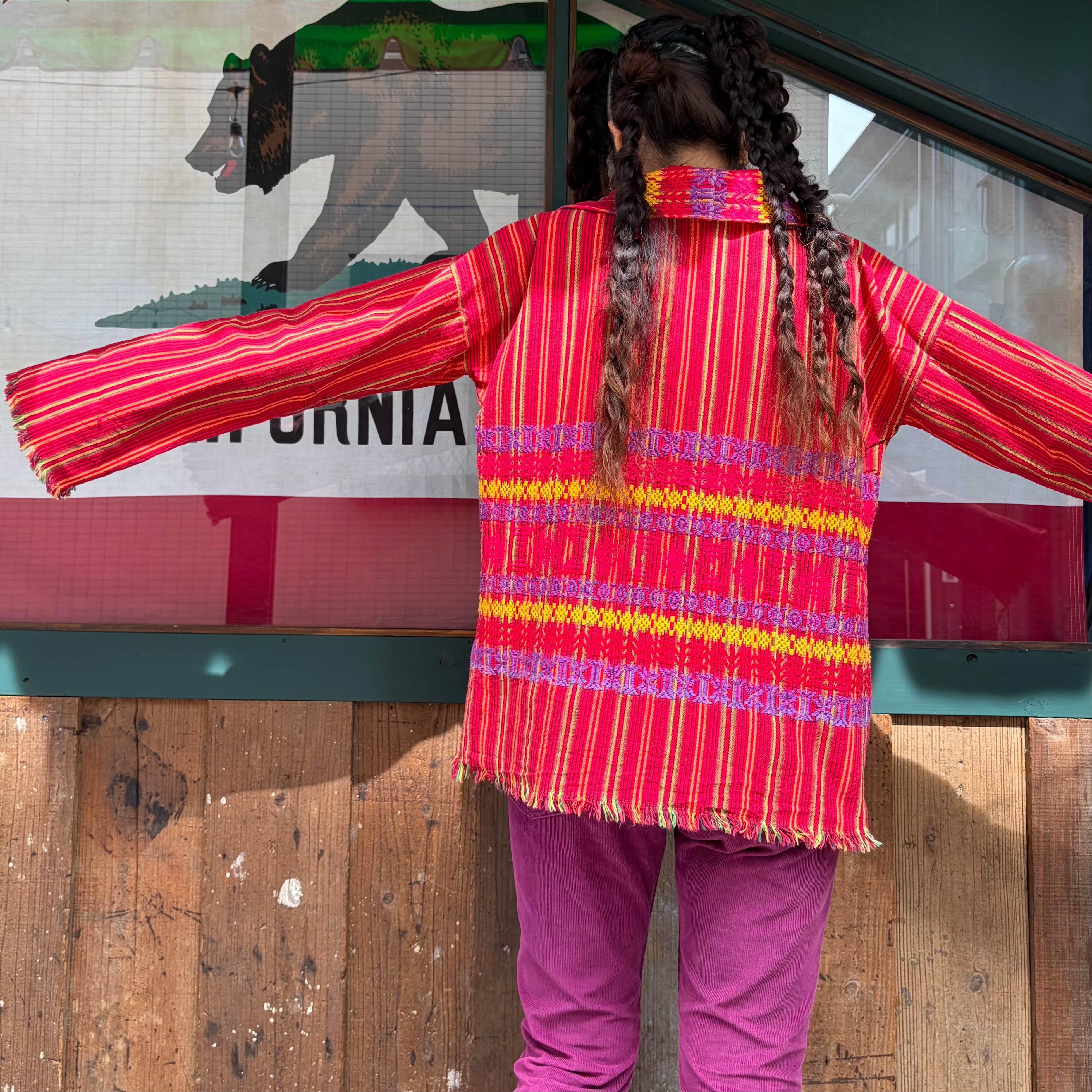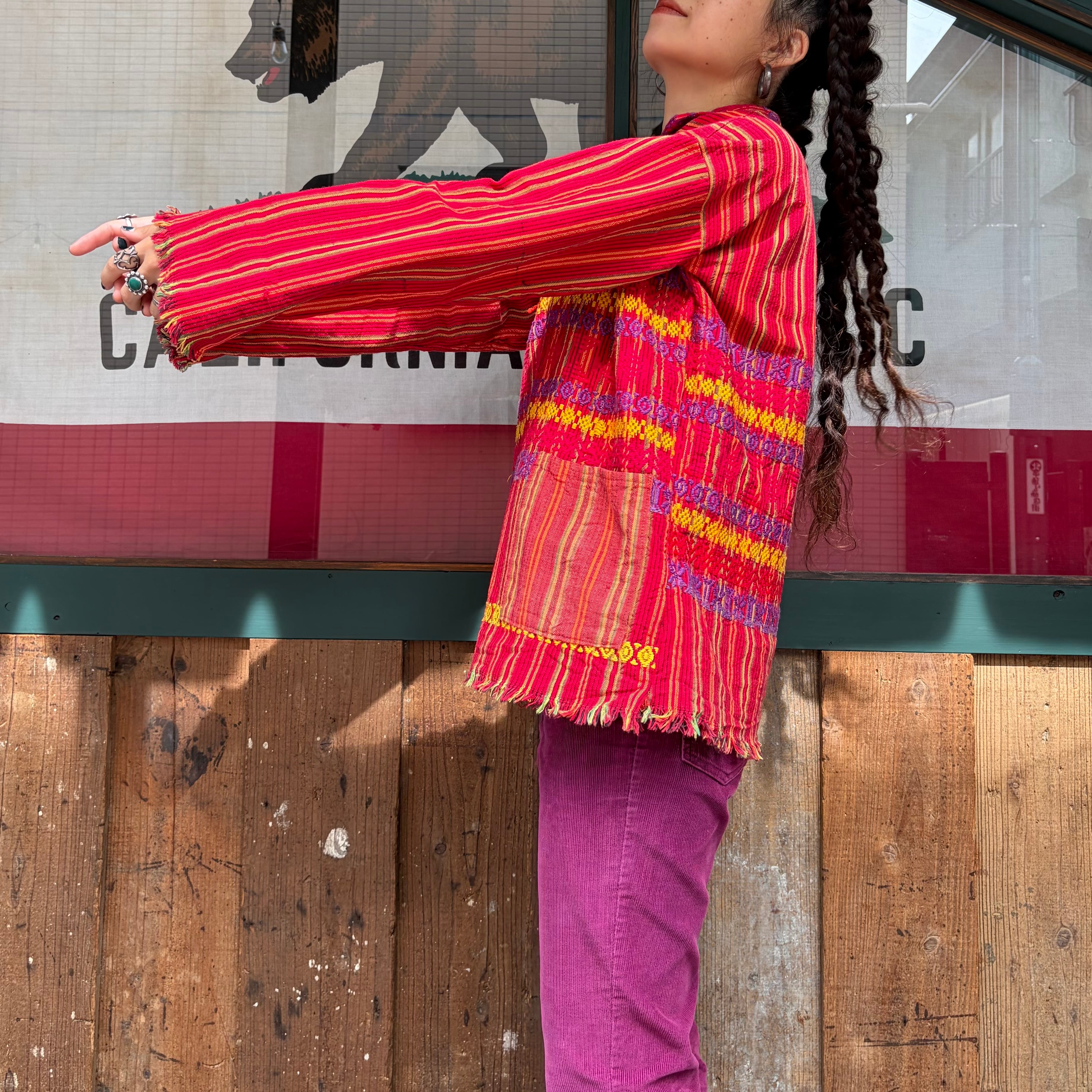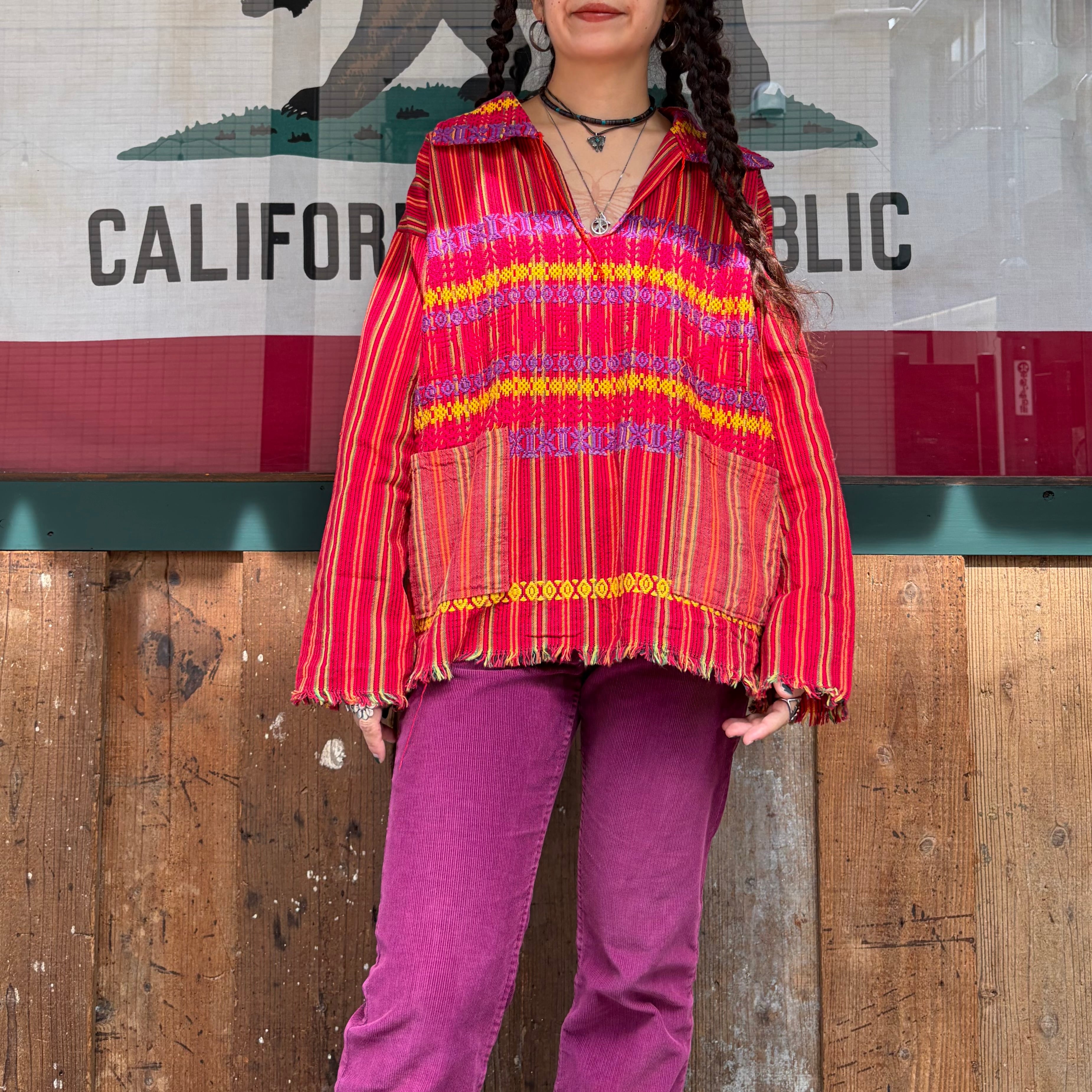 グアテマラの手織りの生地と刺繍のように模様になった織りがとてもかっこいいトップスです。