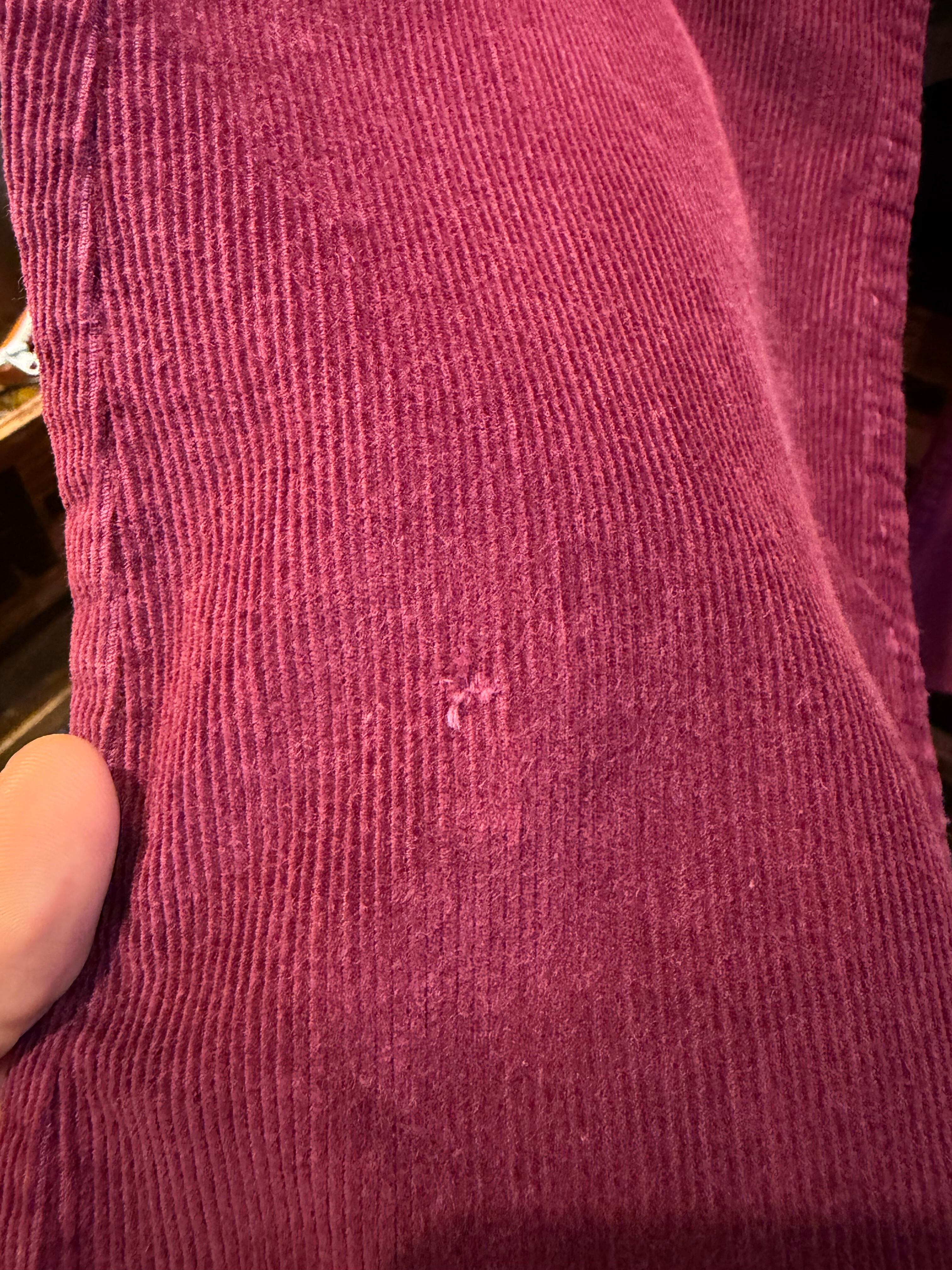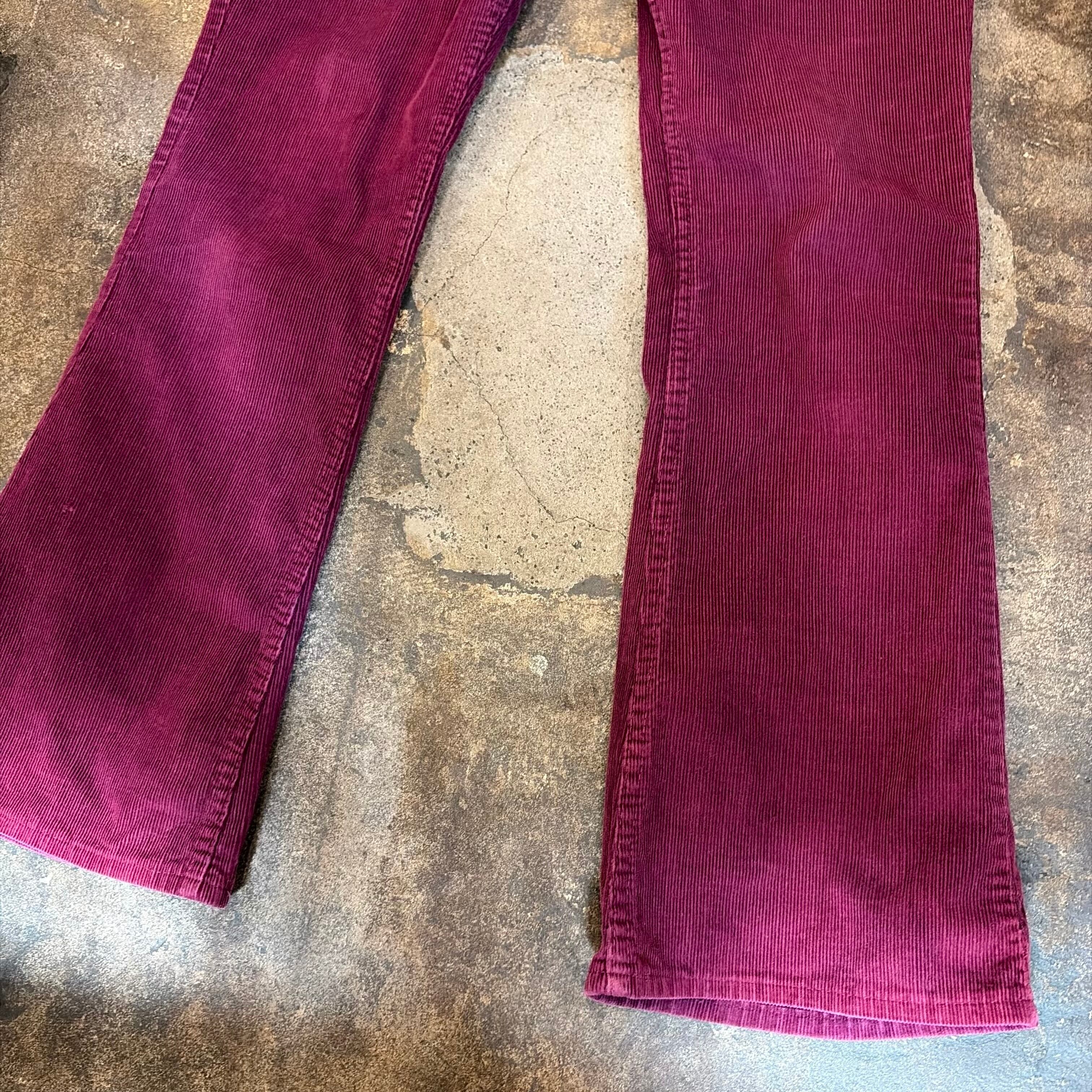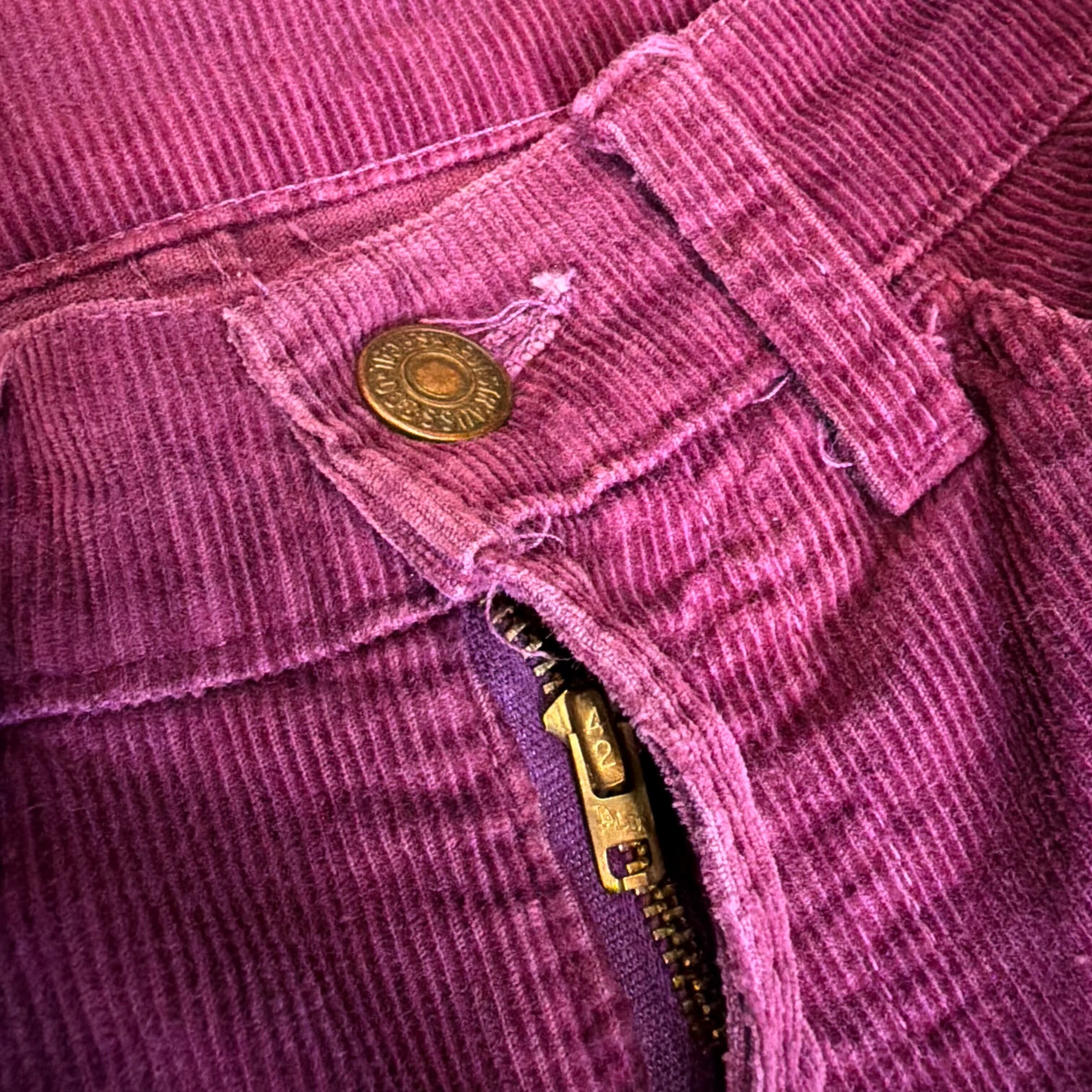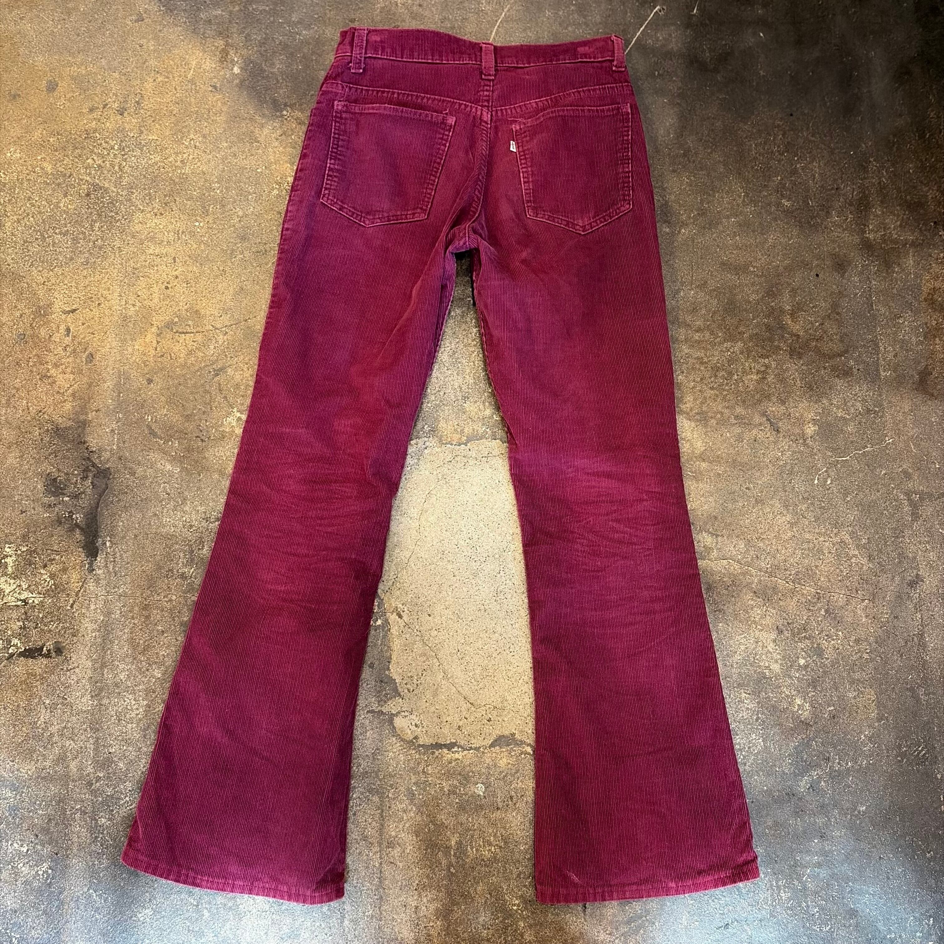 きれいな紫色のコーデュロイがかわいいフレアパンツです。タグが欠損しており不明ですが、おそらく80年代頃のLevi's 646かと思われます。