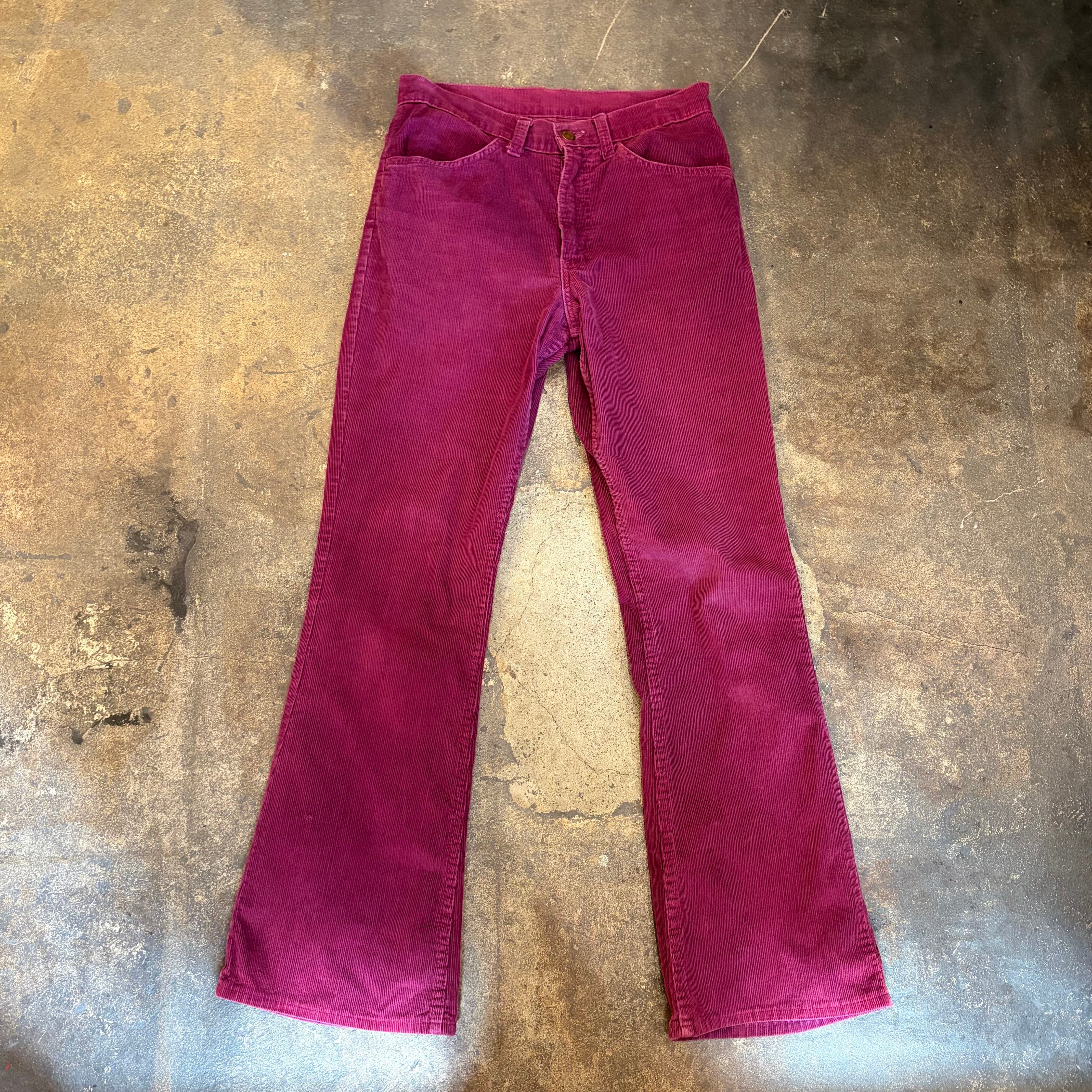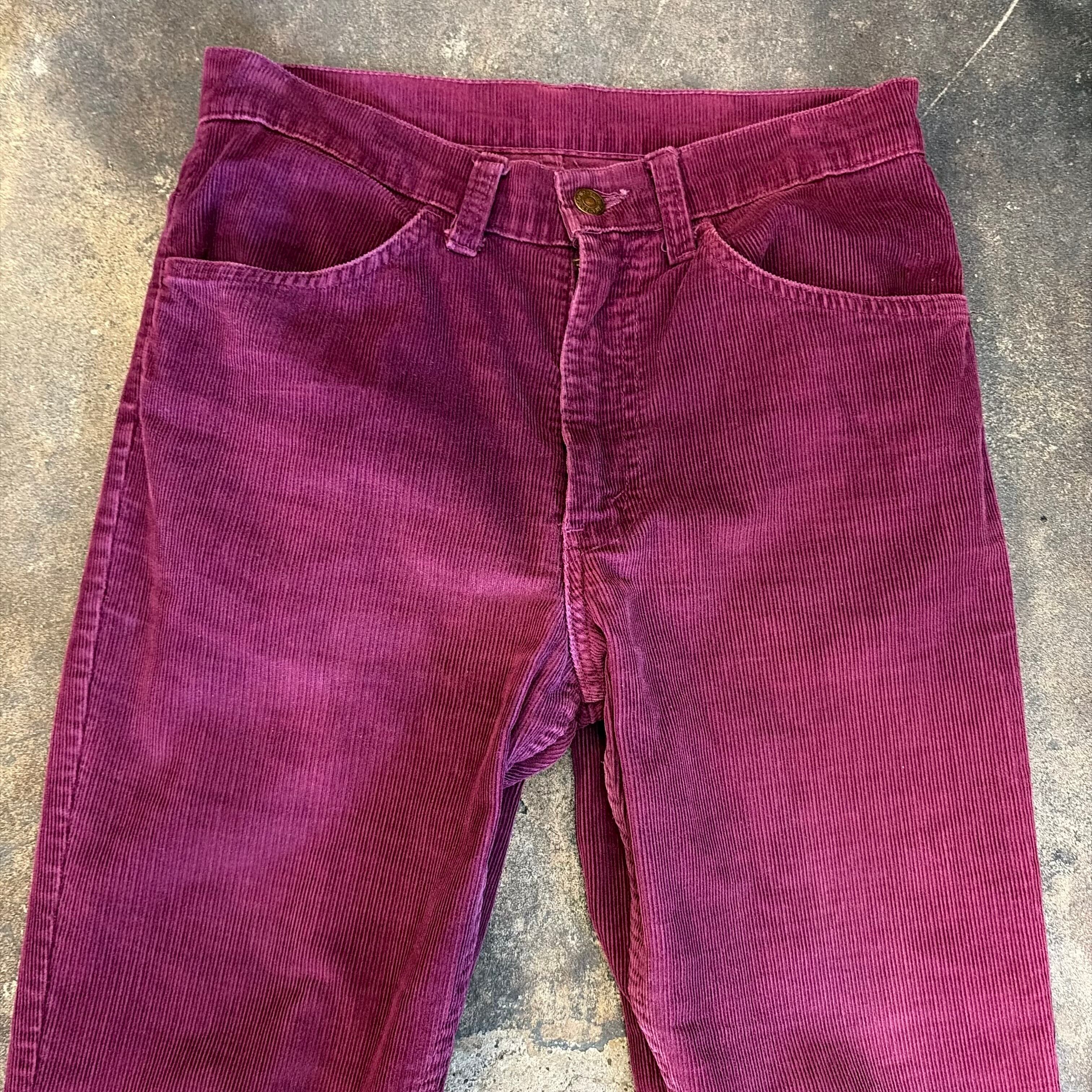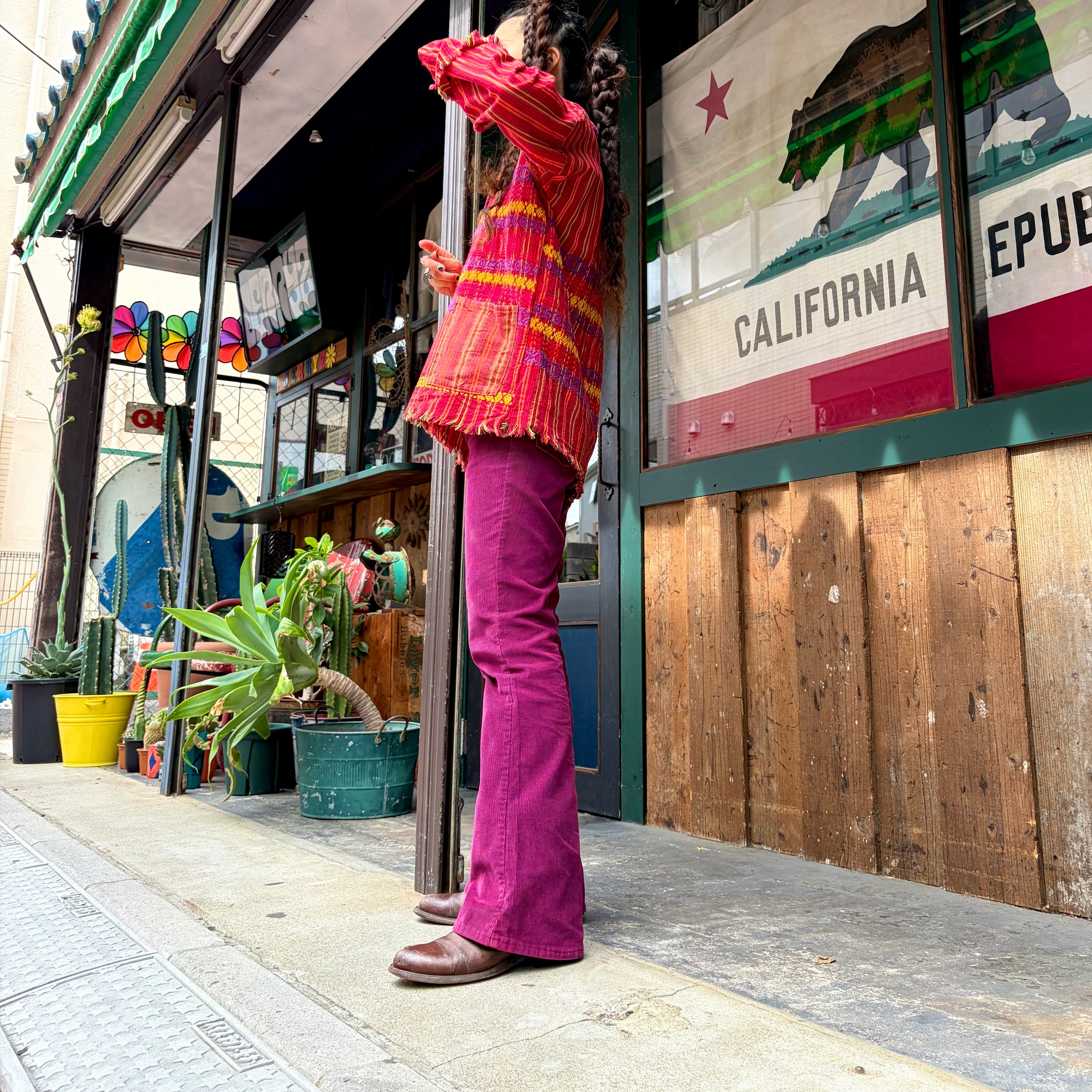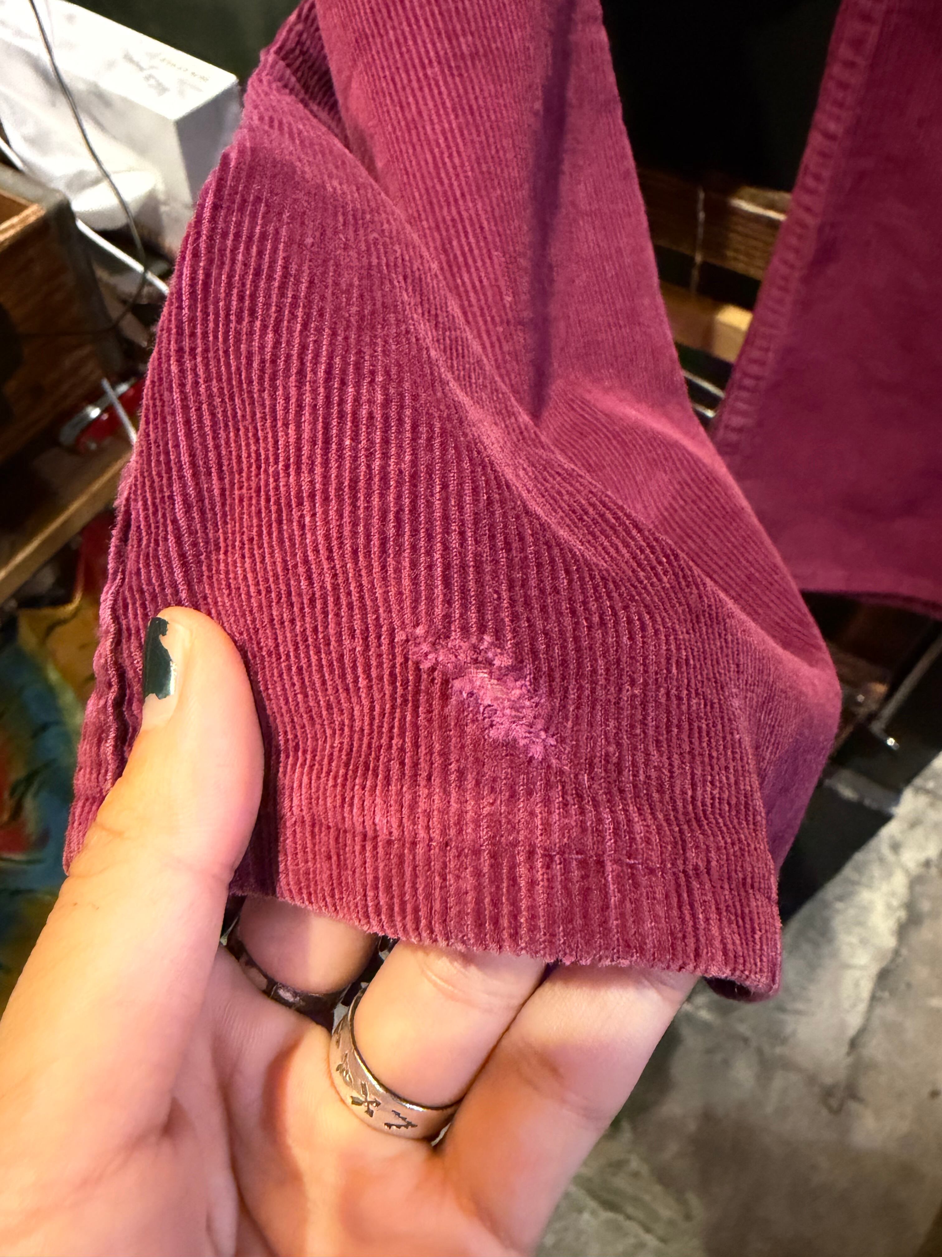 きれいな紫色のコーデュロイがかわいいフレアパンツです。タグが欠損しており不明ですが、おそらく80年代頃のLevi's 646かと思われます。