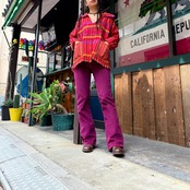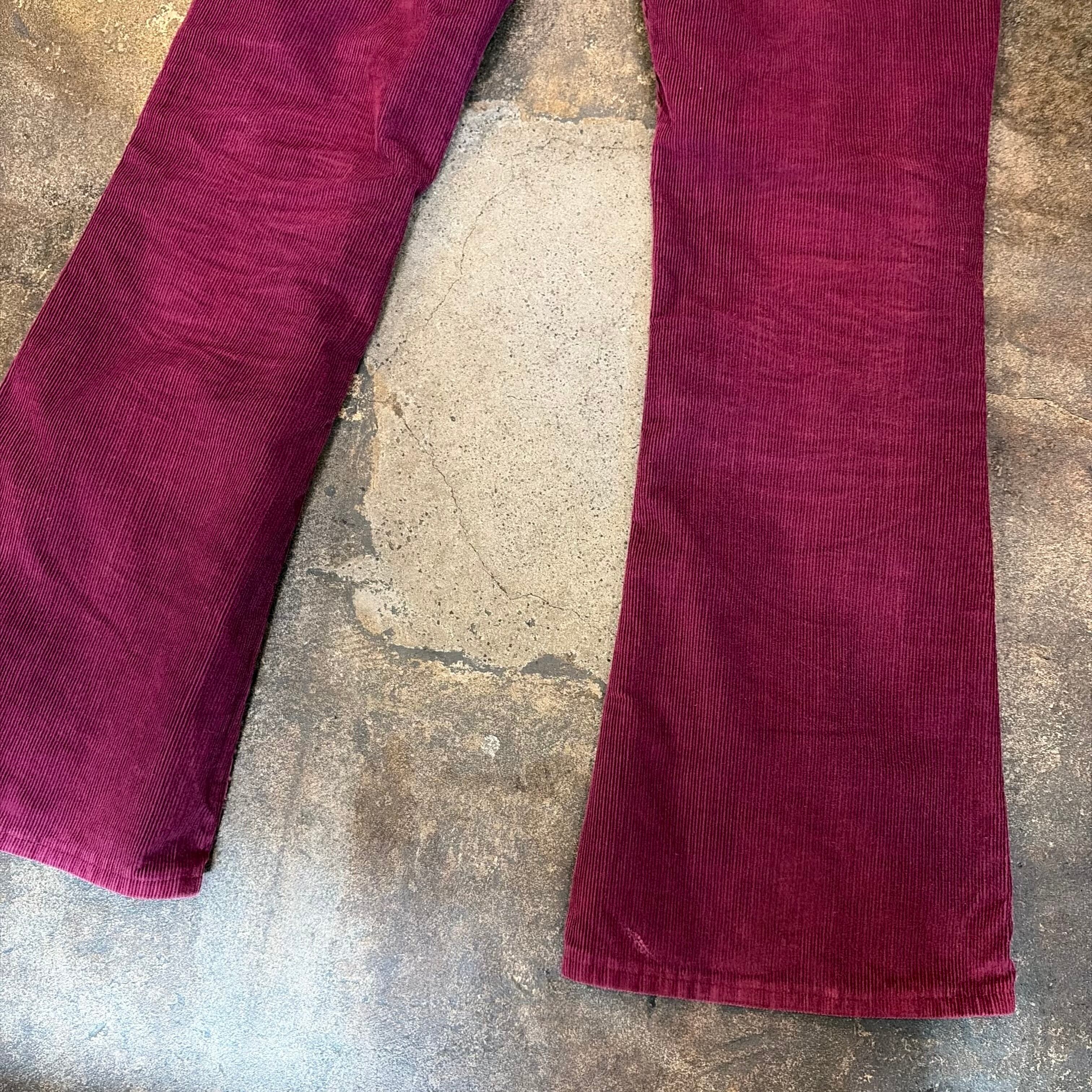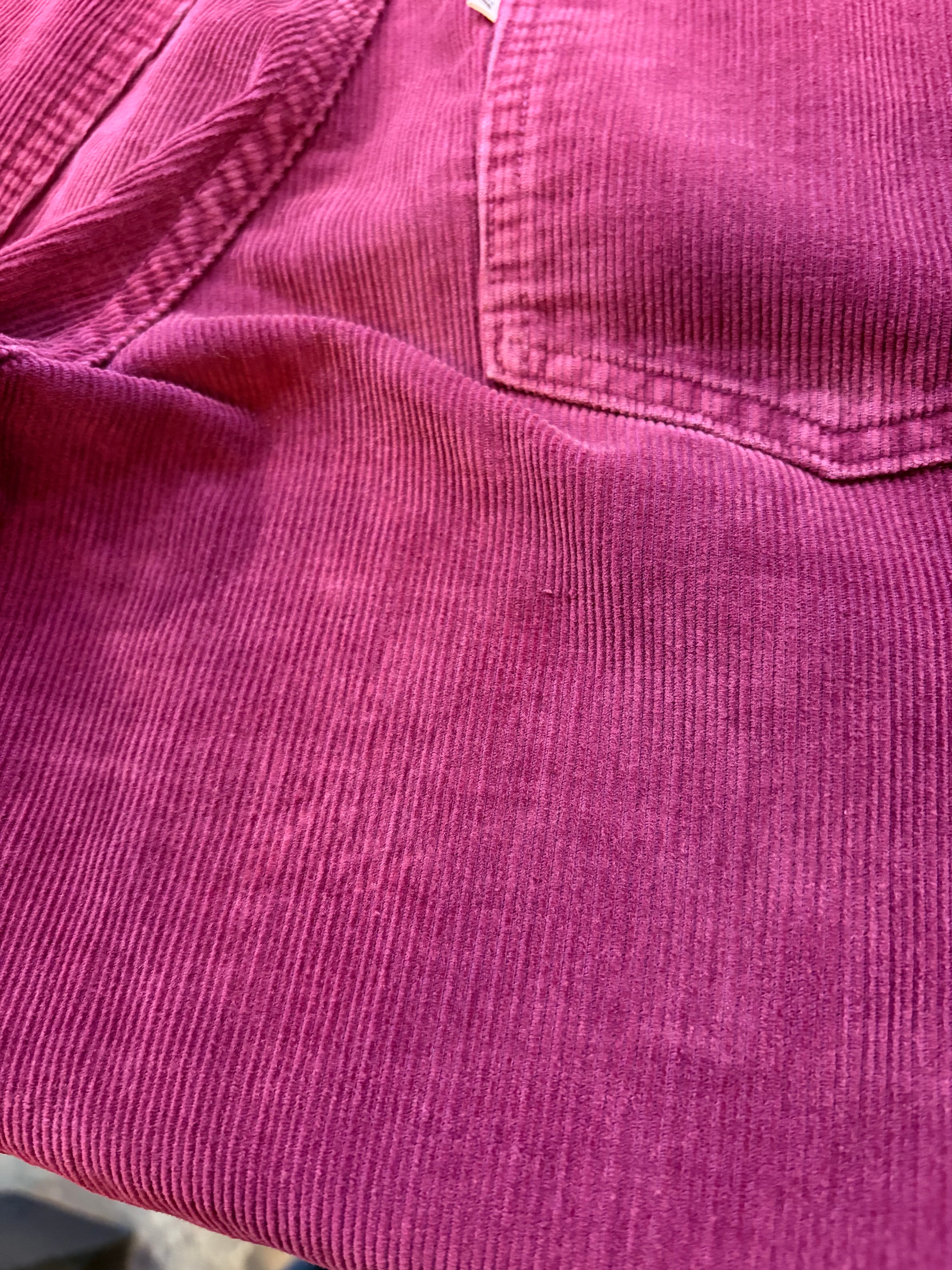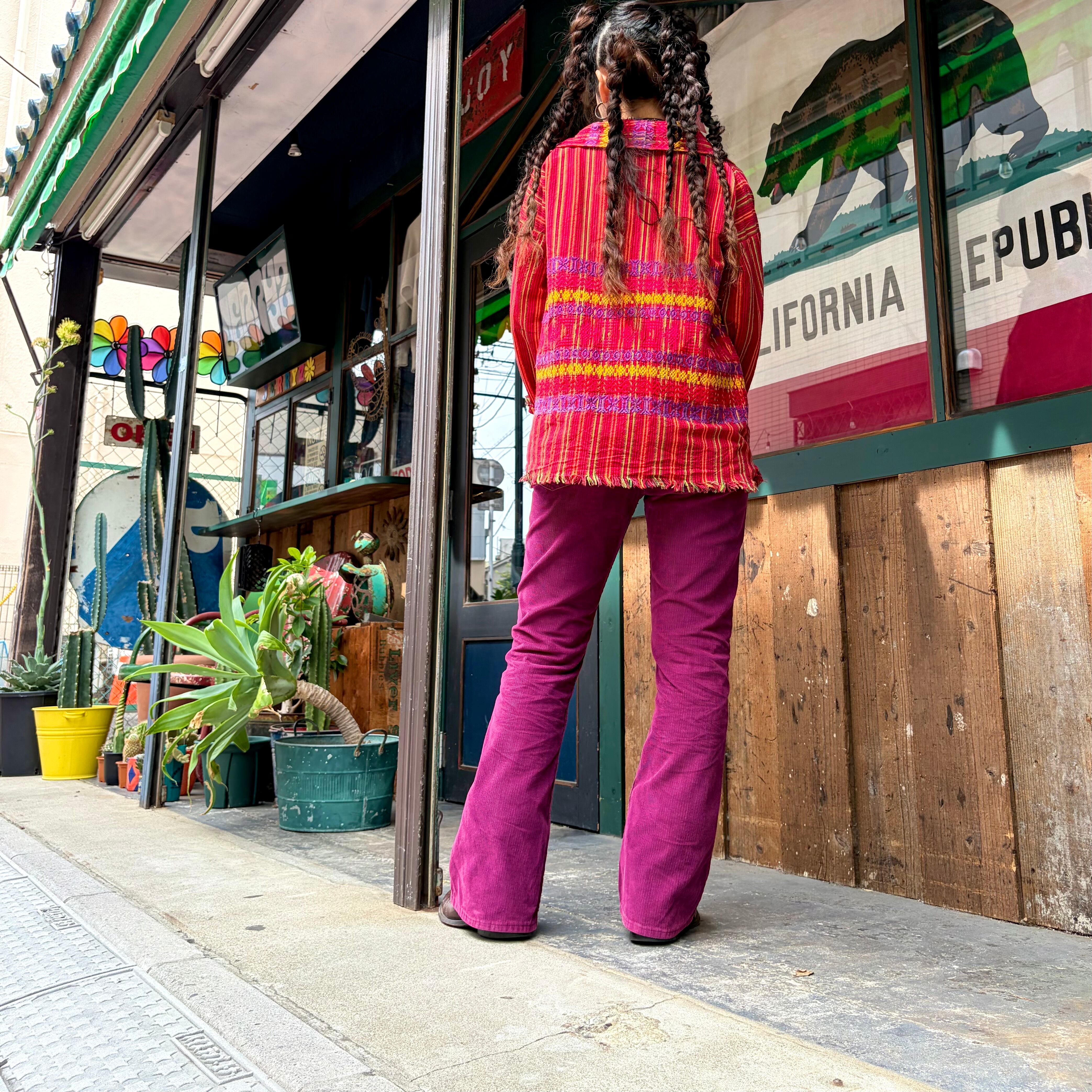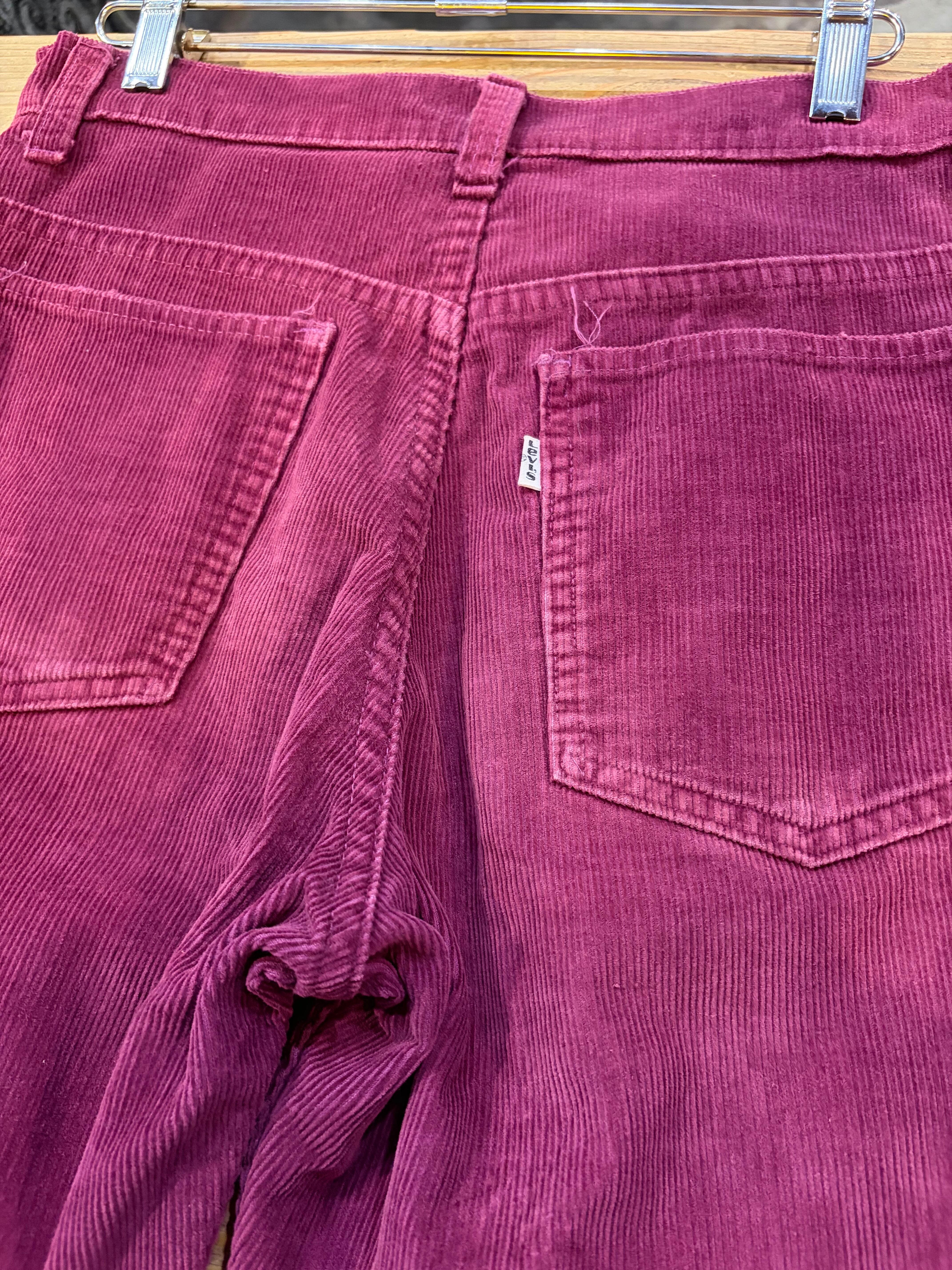きれいな紫色のコーデュロイがかわいいフレアパンツです。タグが欠損しており不明ですが、おそらく80年代頃のLevi's 646かと思われます。