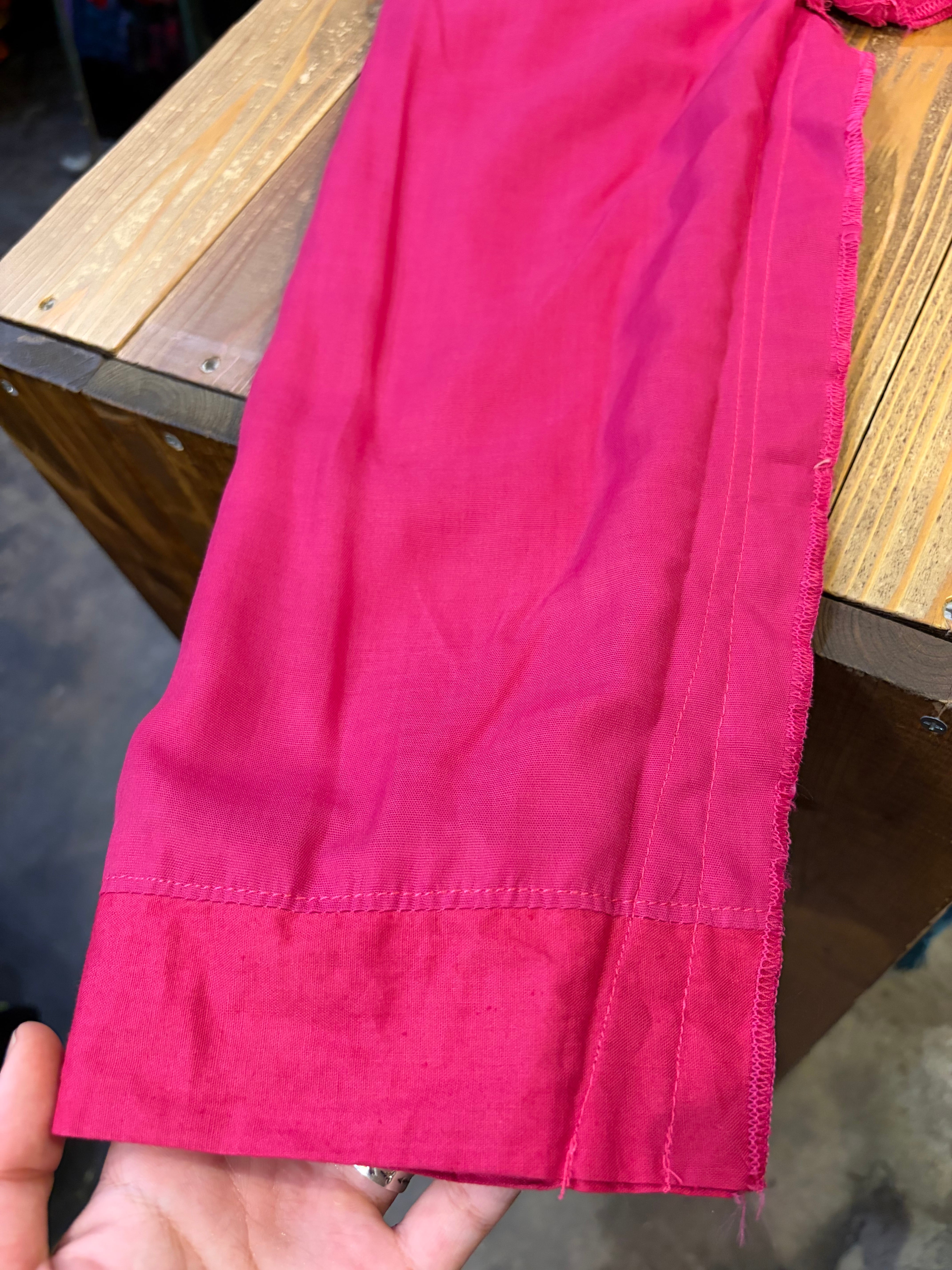 袖と胸上は生地が二重になっていて、袖のみ縫い代がかなり広くなっていますが着用には問題ありません。
