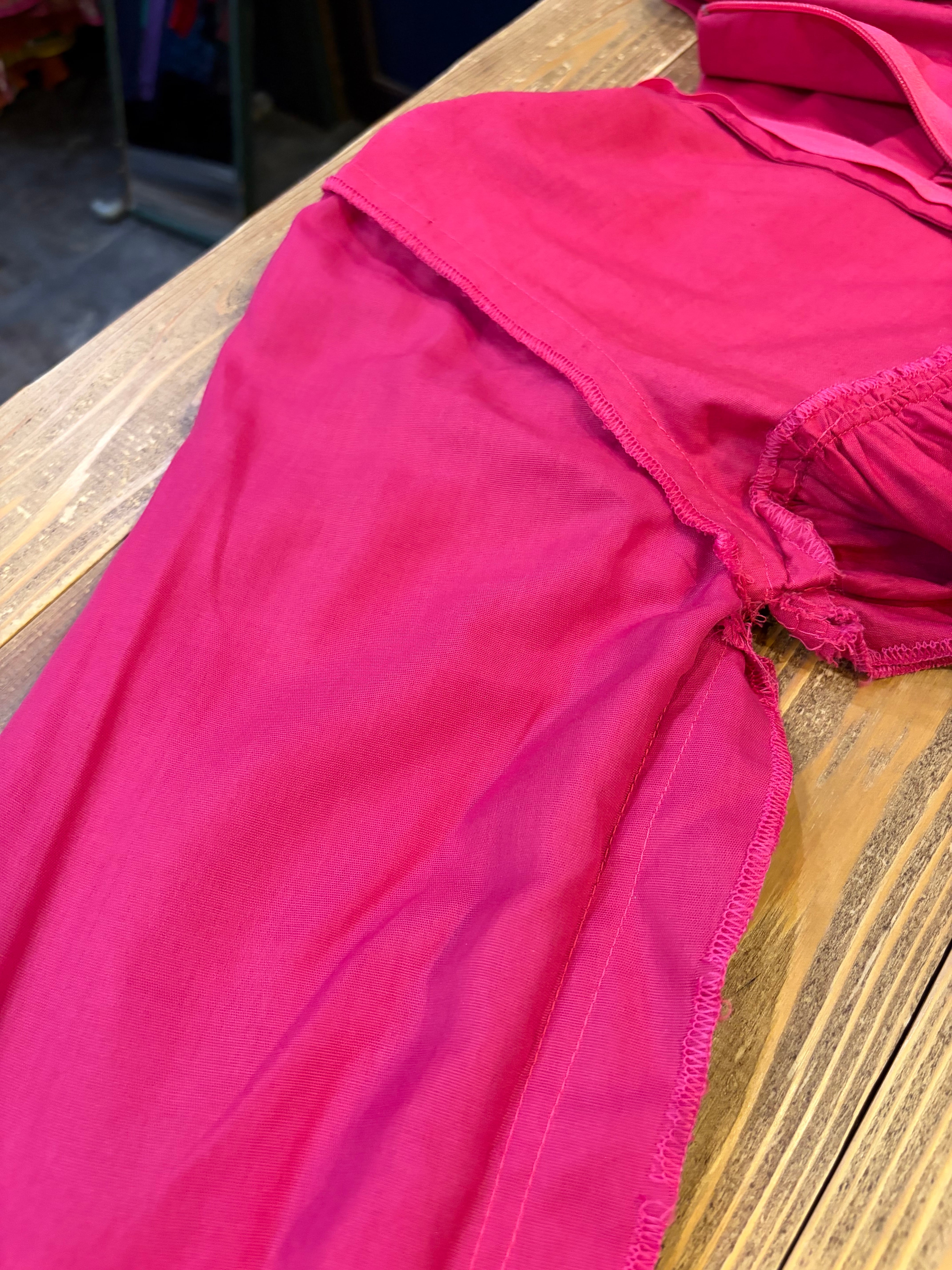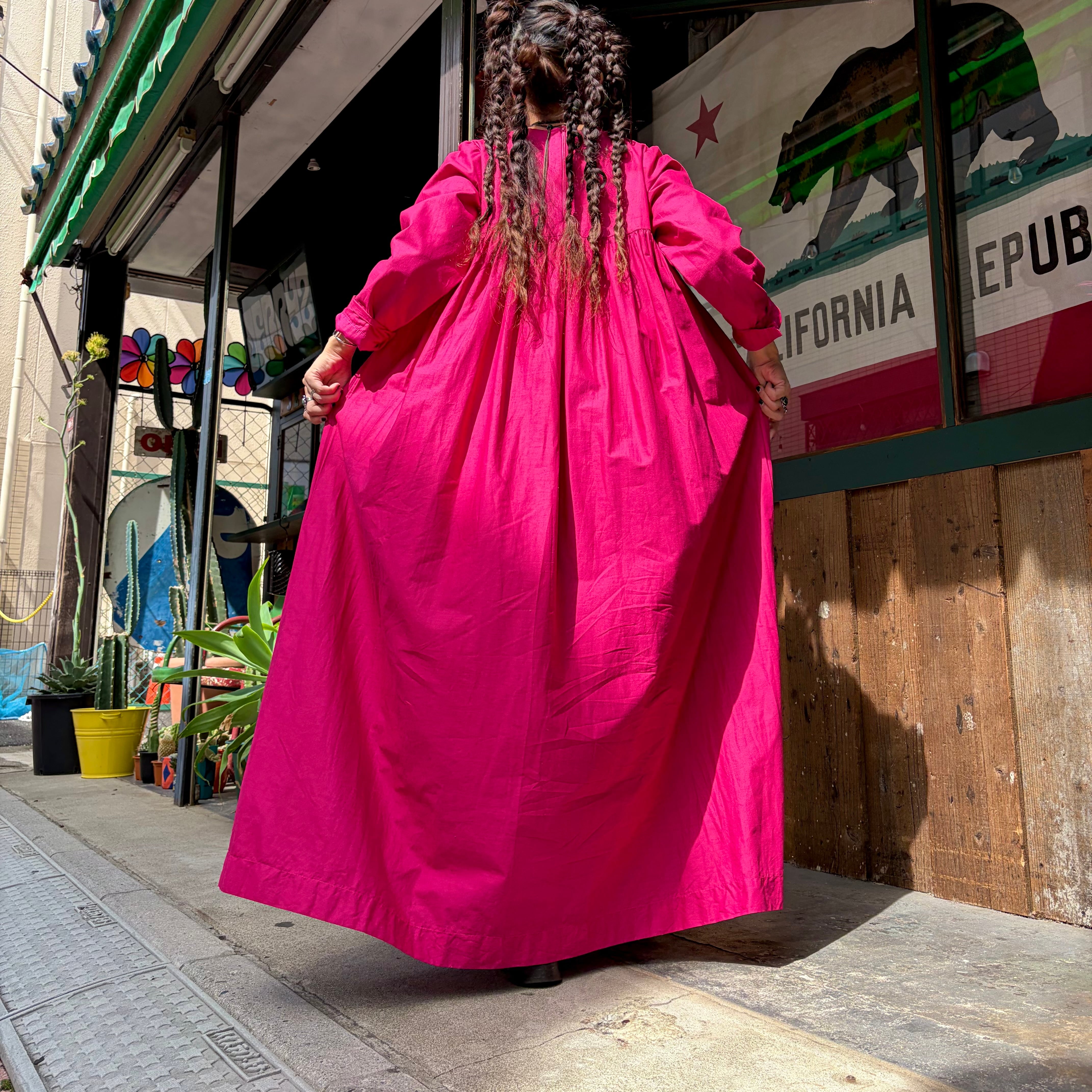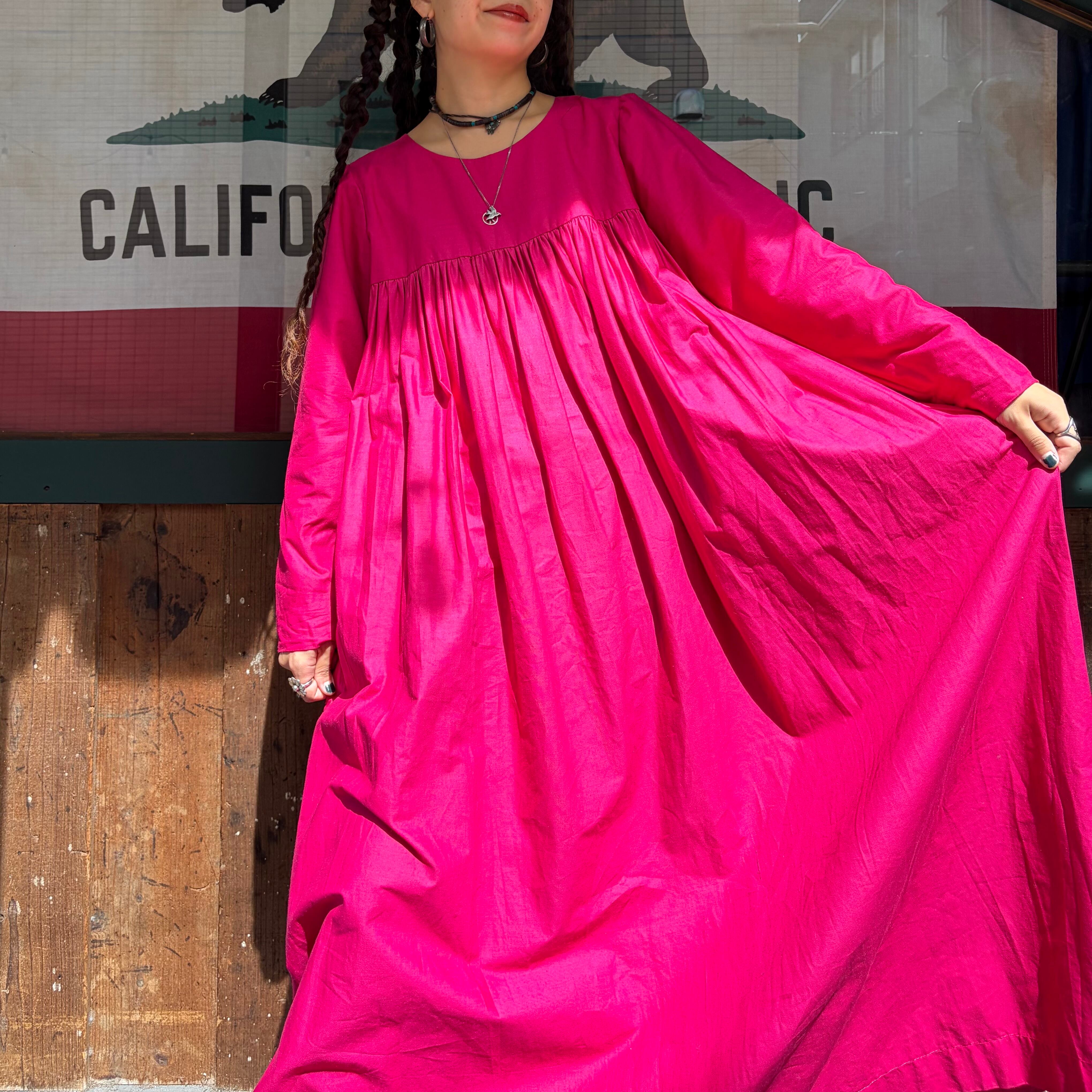 綺麗なマゼンタカラーがお花のようでとても素敵なワンピースです。しっかり長袖なので全身マゼンタカラーになれてかわいいです。