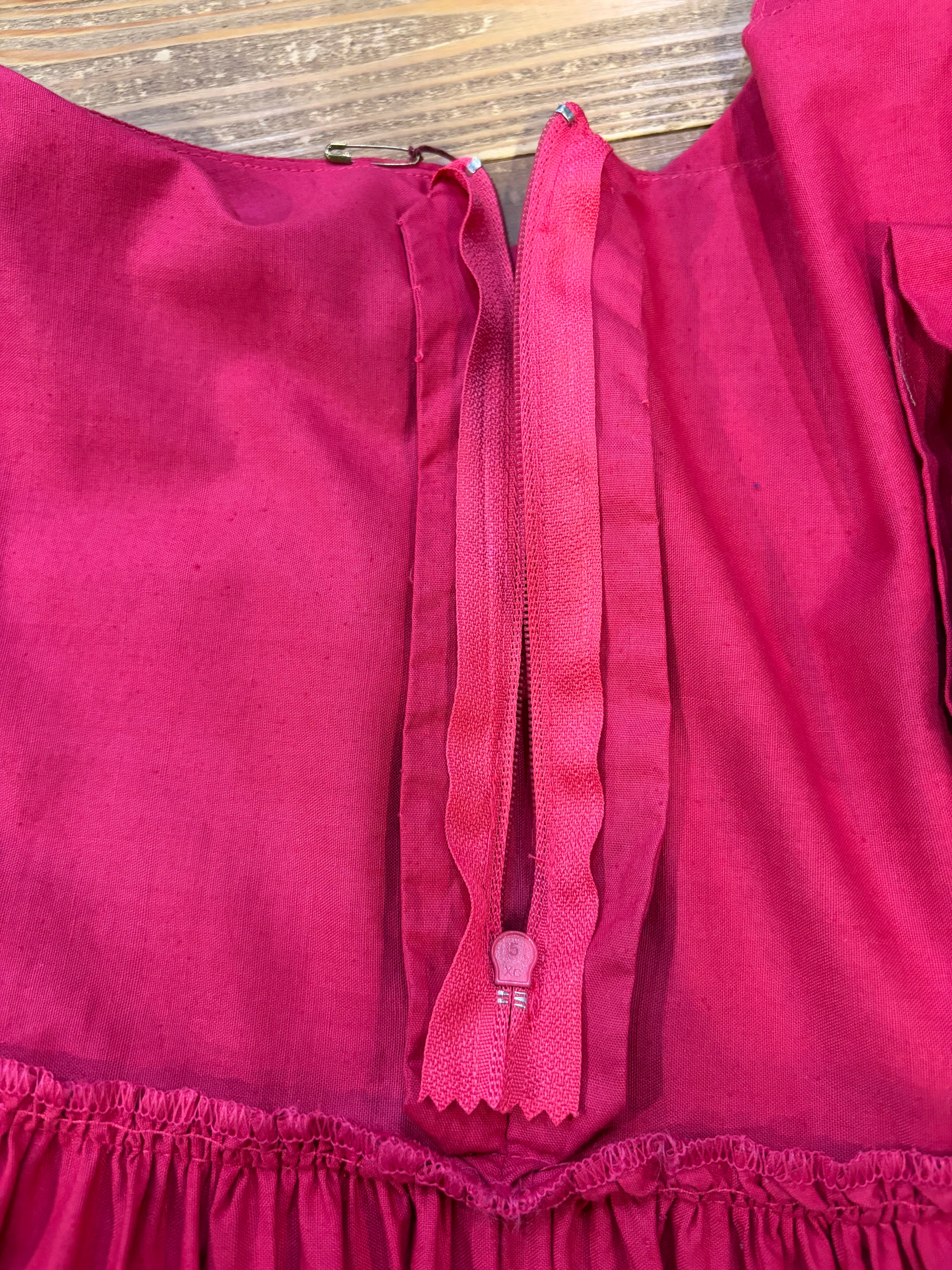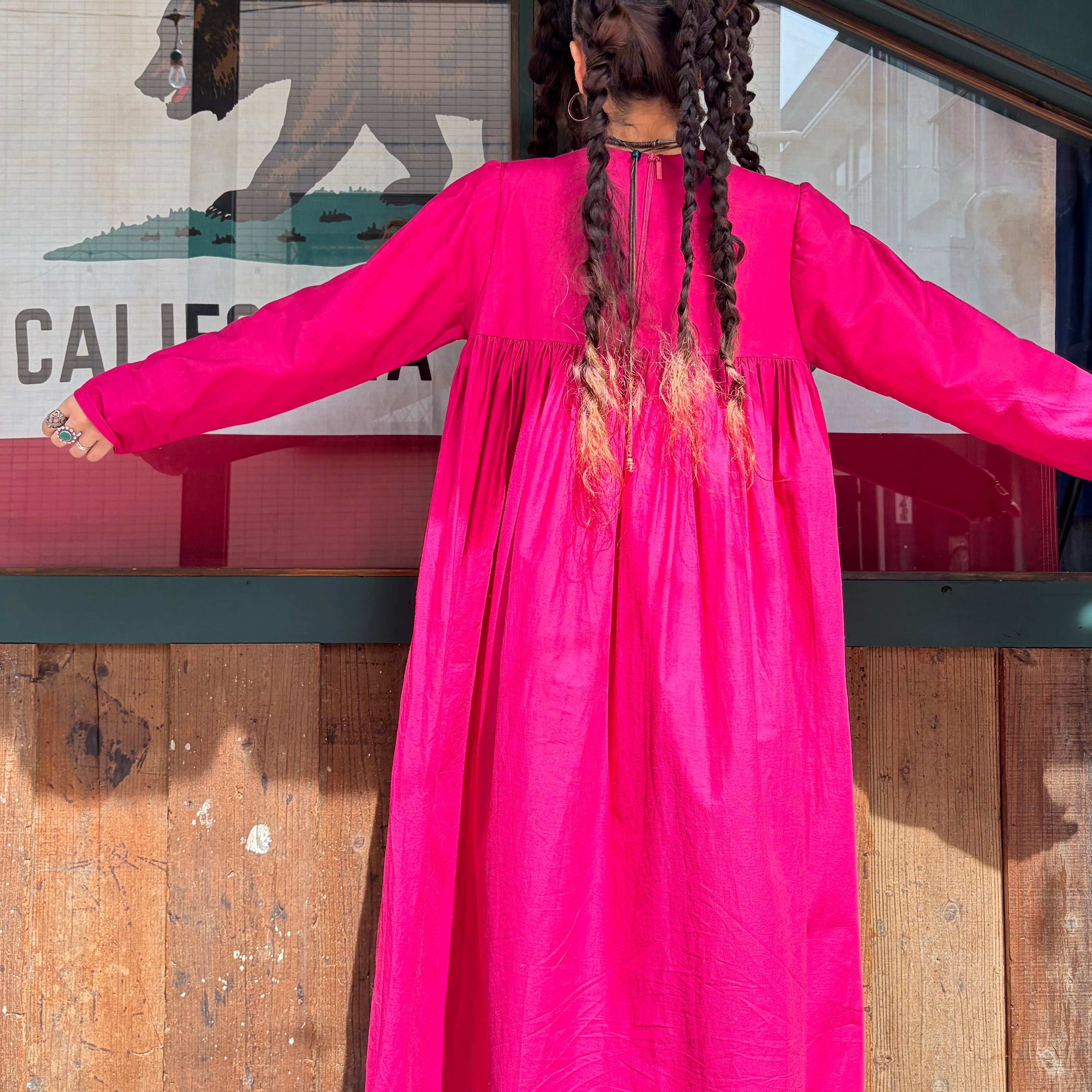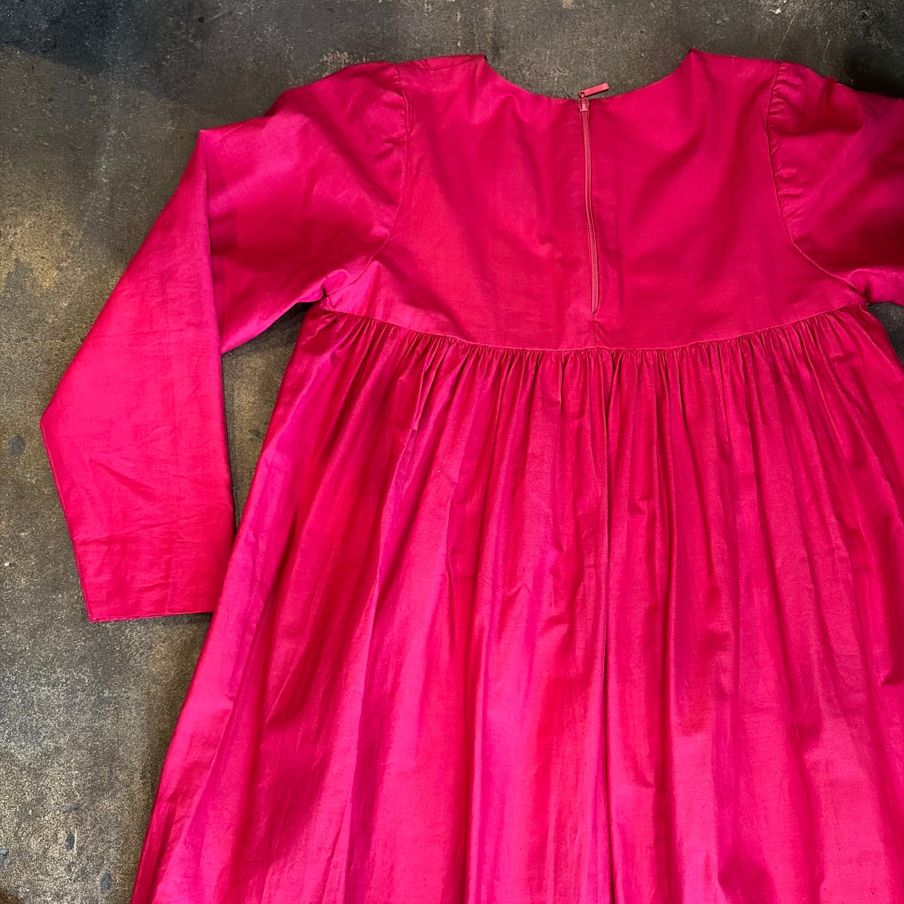 綺麗なマゼンタカラーがお花のようでとても素敵なワンピースです。しっかり長袖なので全身マゼンタカラーになれてかわいいです。