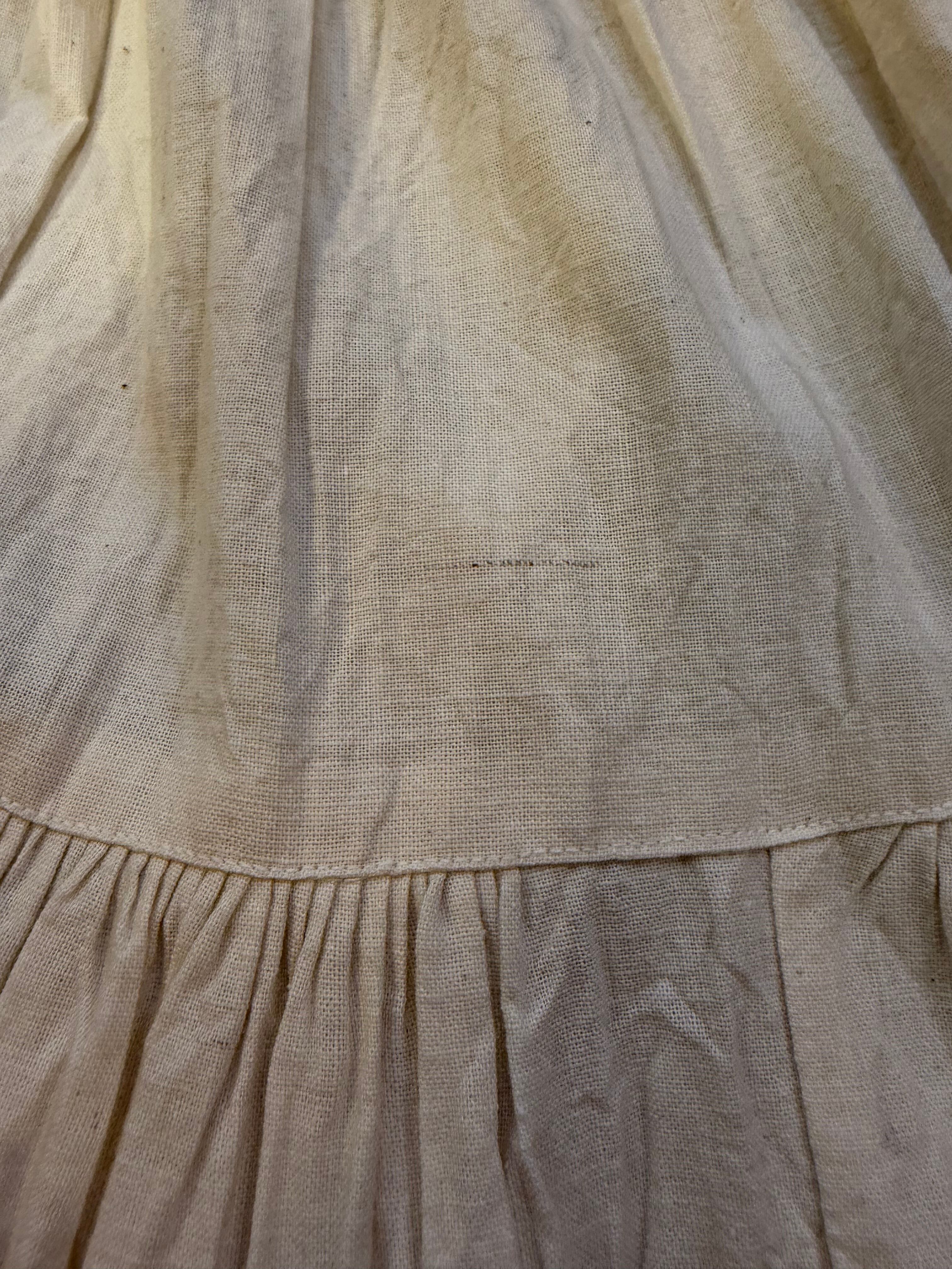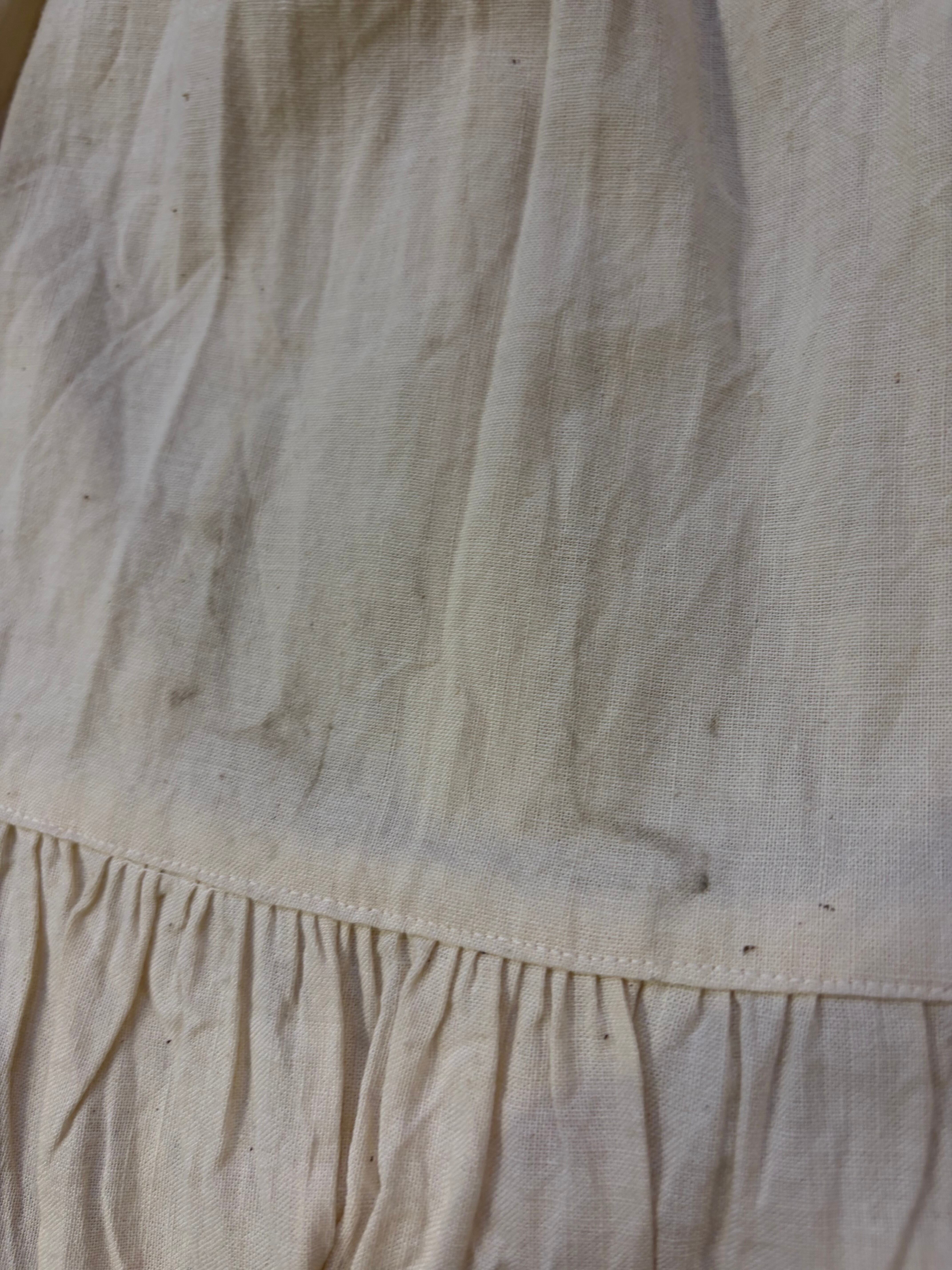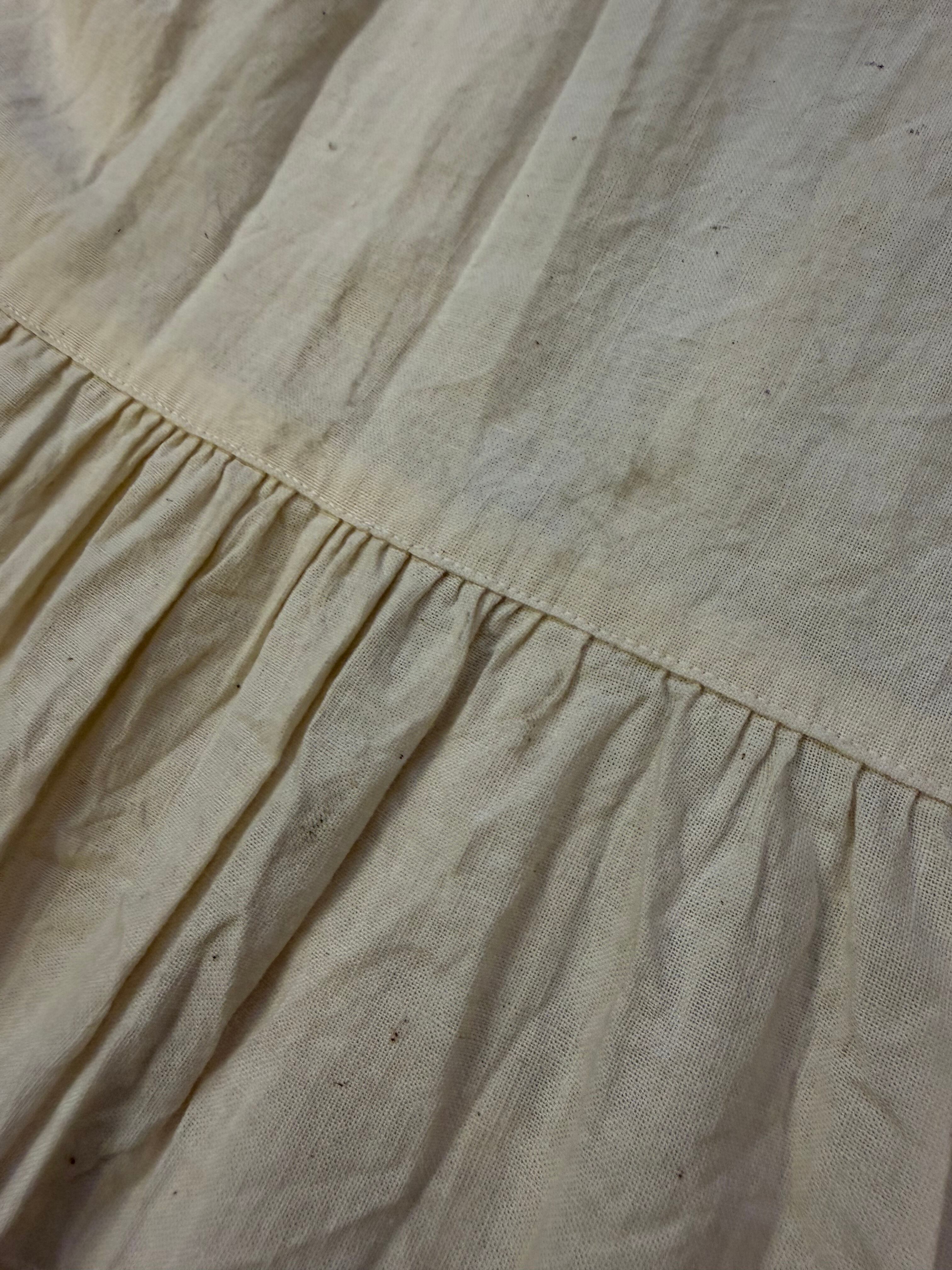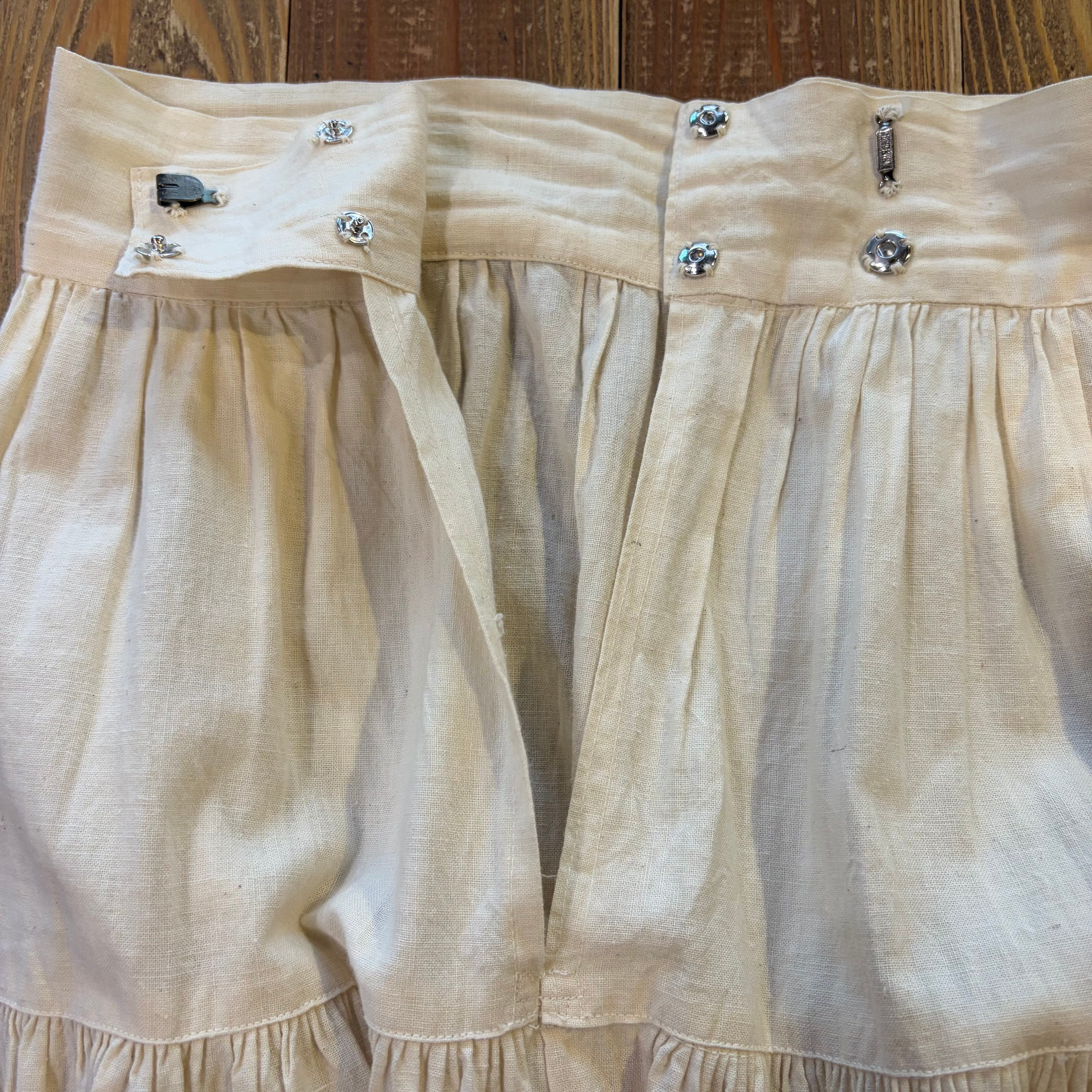 生成り色の生地がたっぷり惜しみなく使われて、ボリューム感がとても素敵なティアードロングスカートです。ただ生地は薄手な方ですのでそこまで重みはありません。