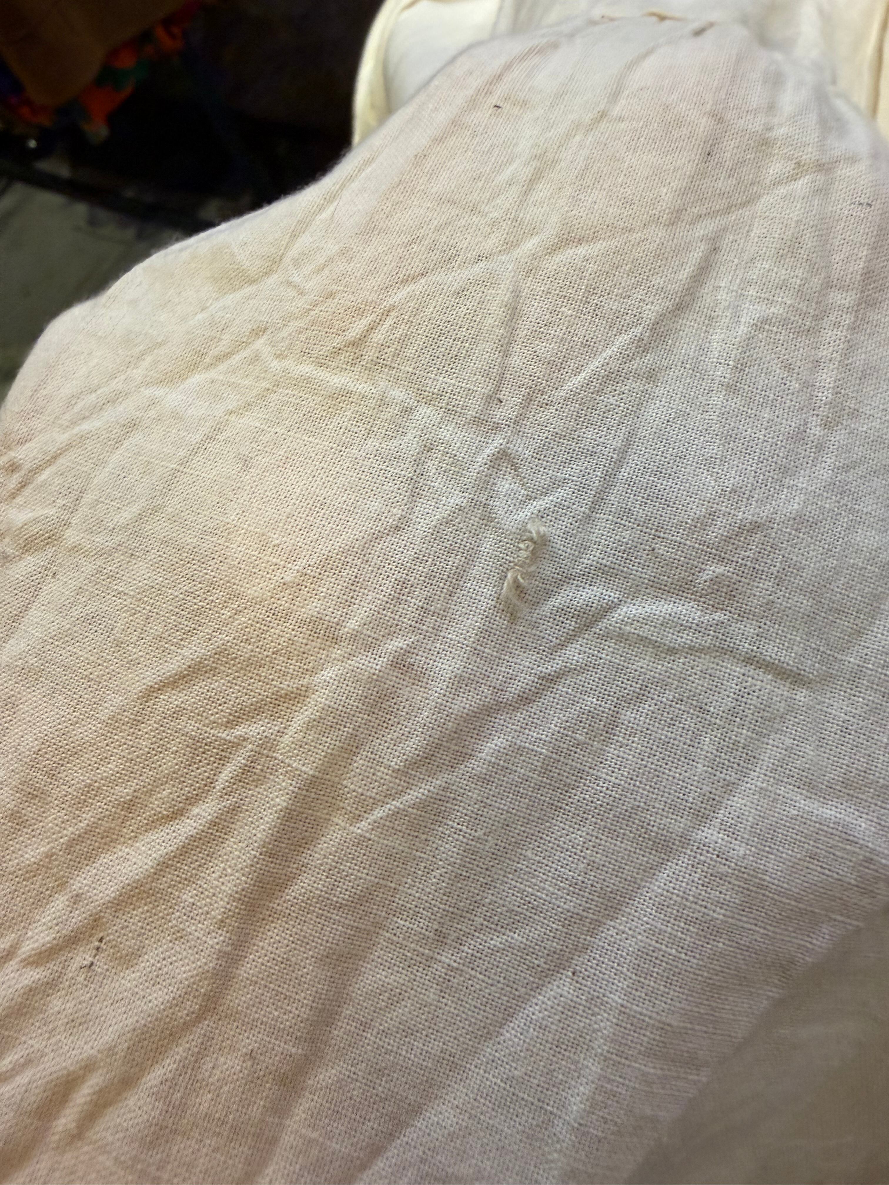 せっかくの無地ですがペンキが飛んだり、絵を描いたり、刺繍をしたり、染めたり、もっと汚して着るのも素敵だと思います!