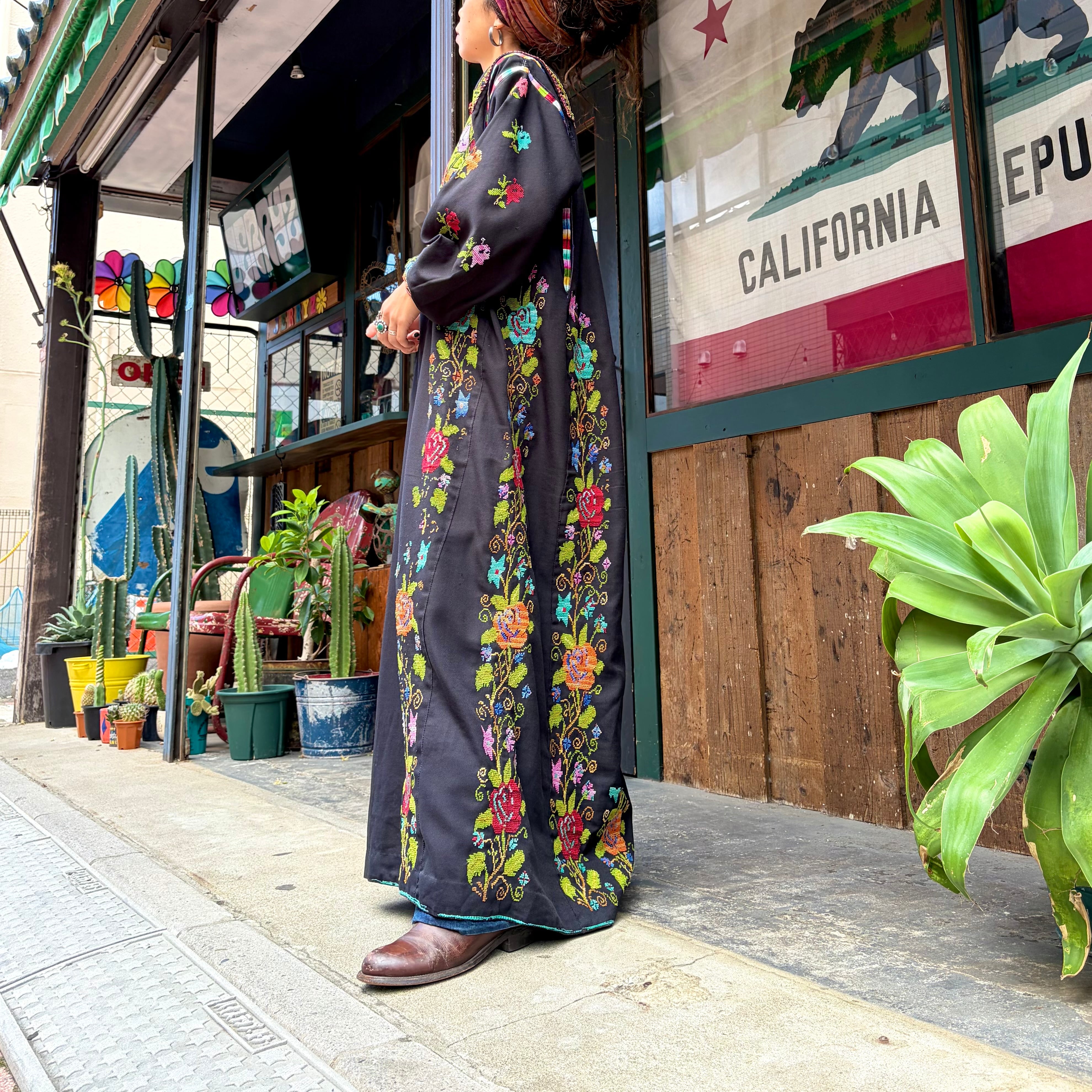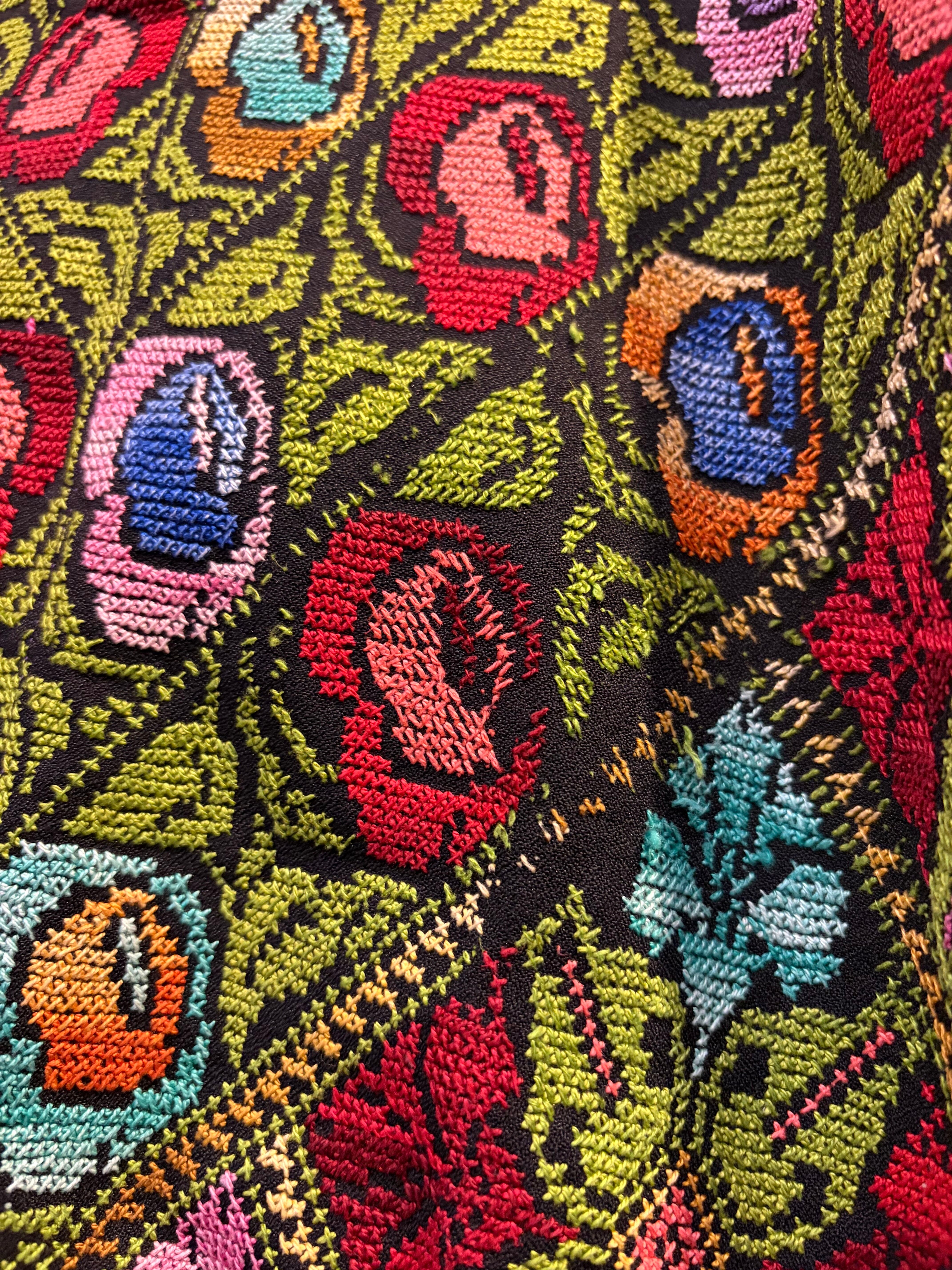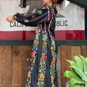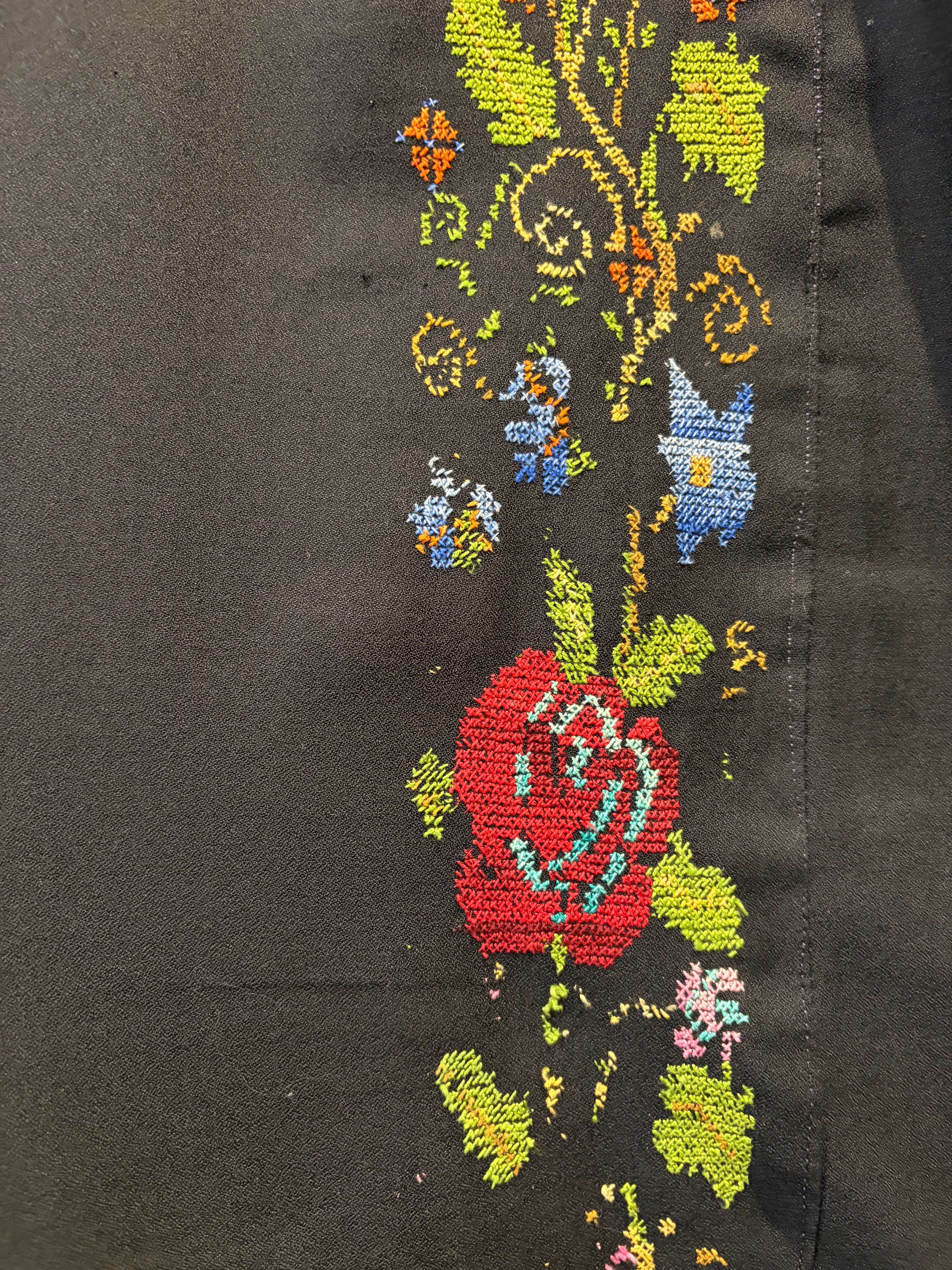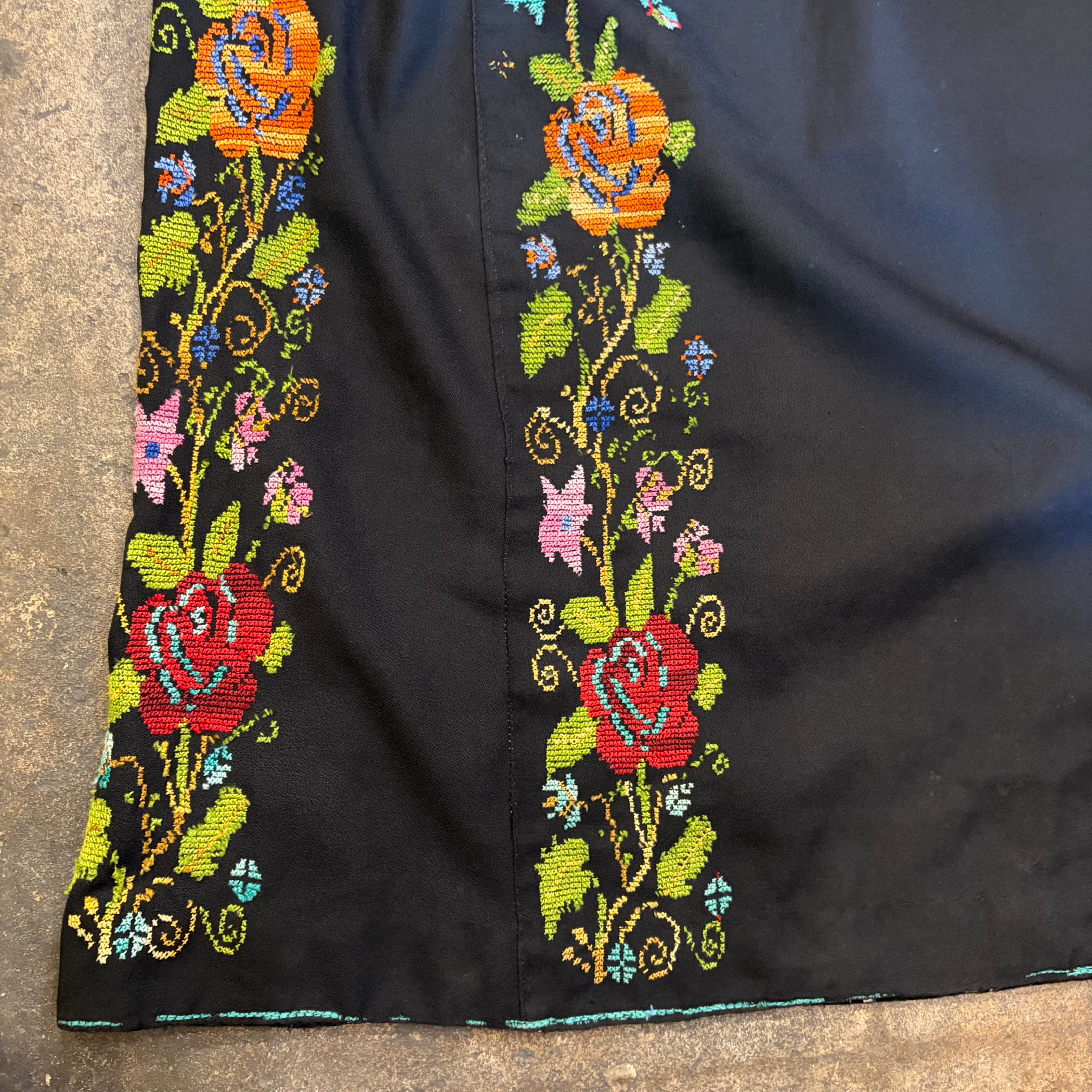 黒ベースにとても細かいクロスステッチの手刺繍が美しい、おそらくパレスチナのワンピースです。