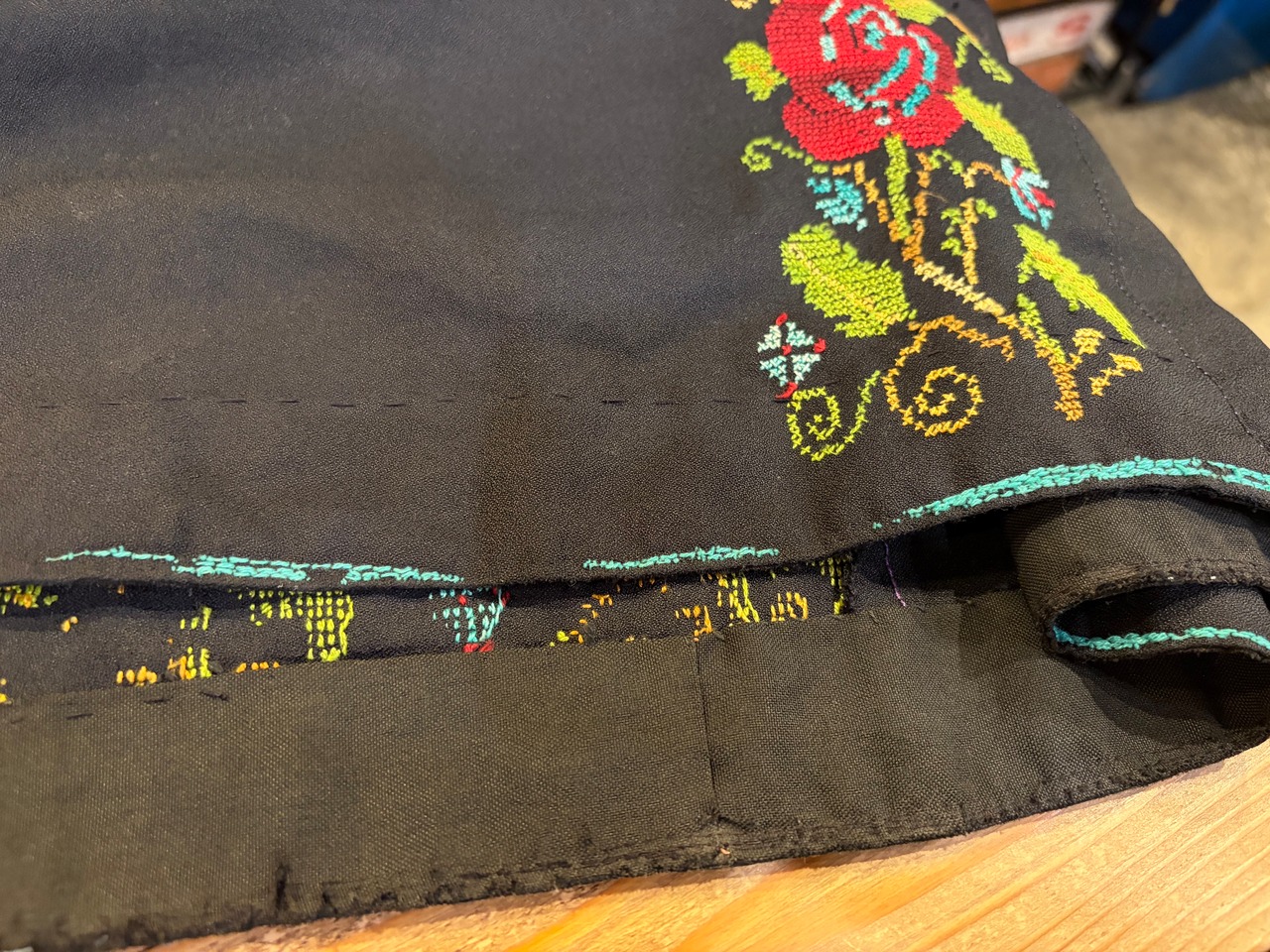※裾上げは無料で承りますが、刺繍のため折り曲げてまつる方法になることをご了承ください。
