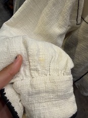 襟ぐり紐先のウッドビーズが片方欠損しています。生地のツレやシミ、背中の方のうっすら黄ばみ等ダメージのある商品です。古着にご理解のある方のご購入をお願い致します。
