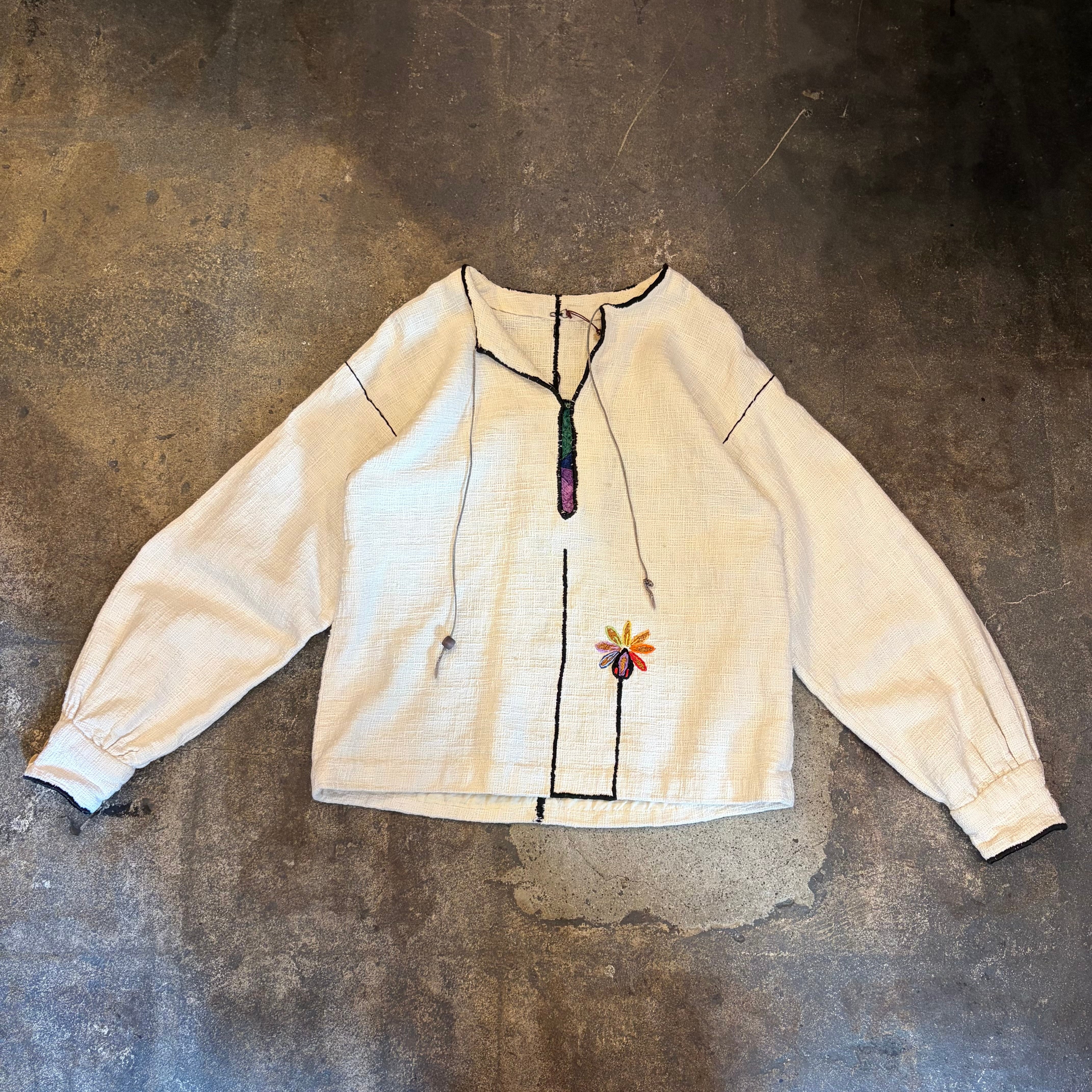 おそらく全ての工程を手作業で作られたヴィンテージのムード漂うトップスです。