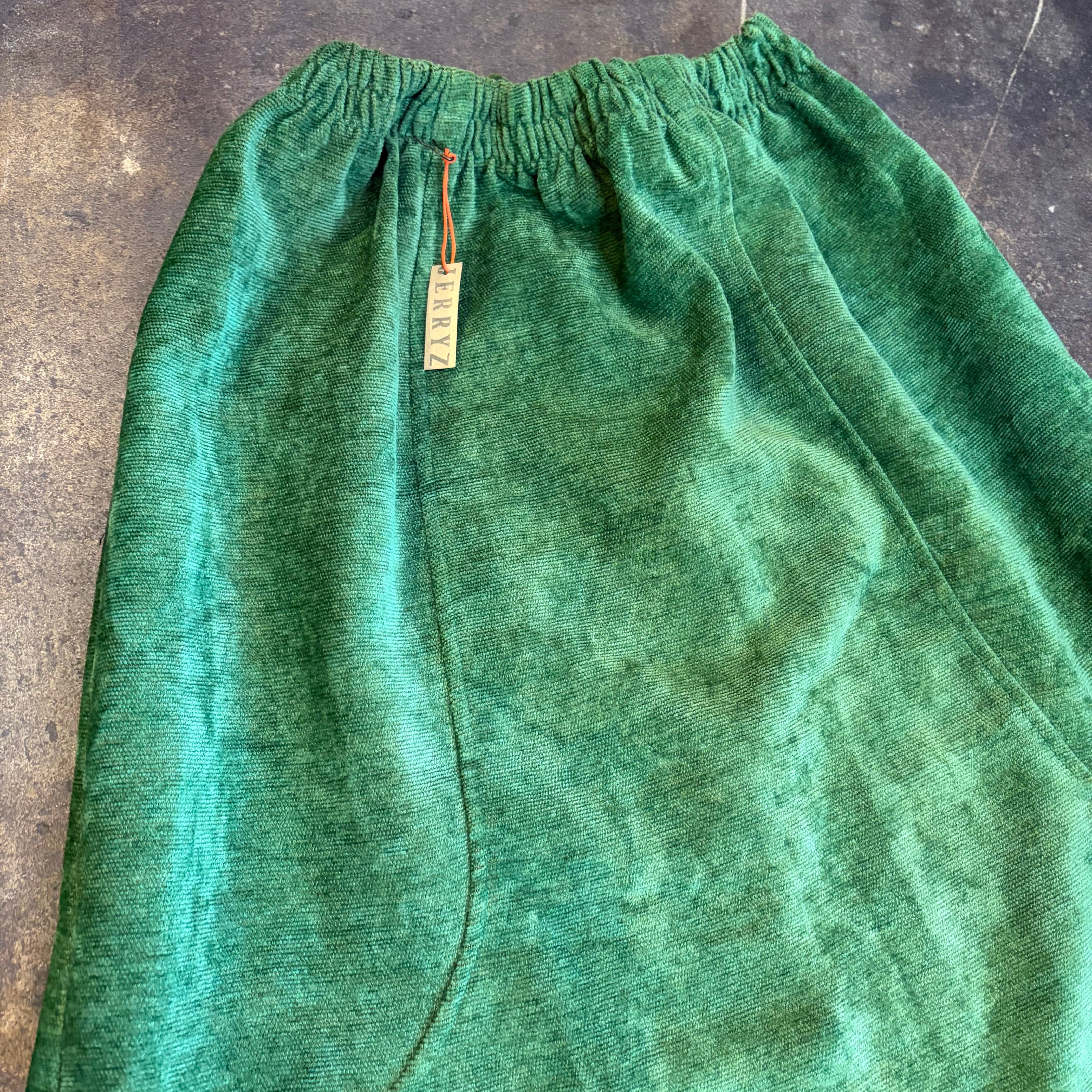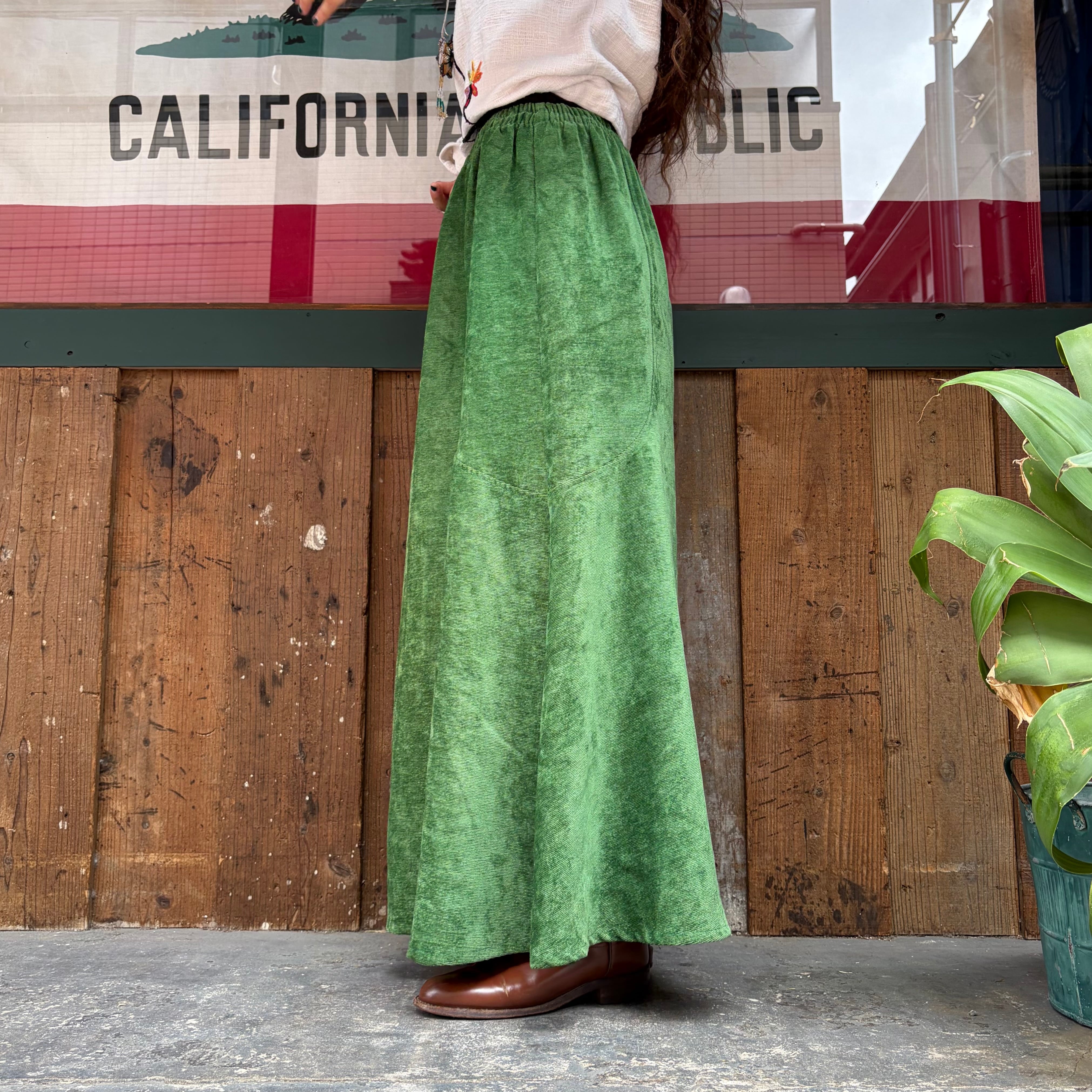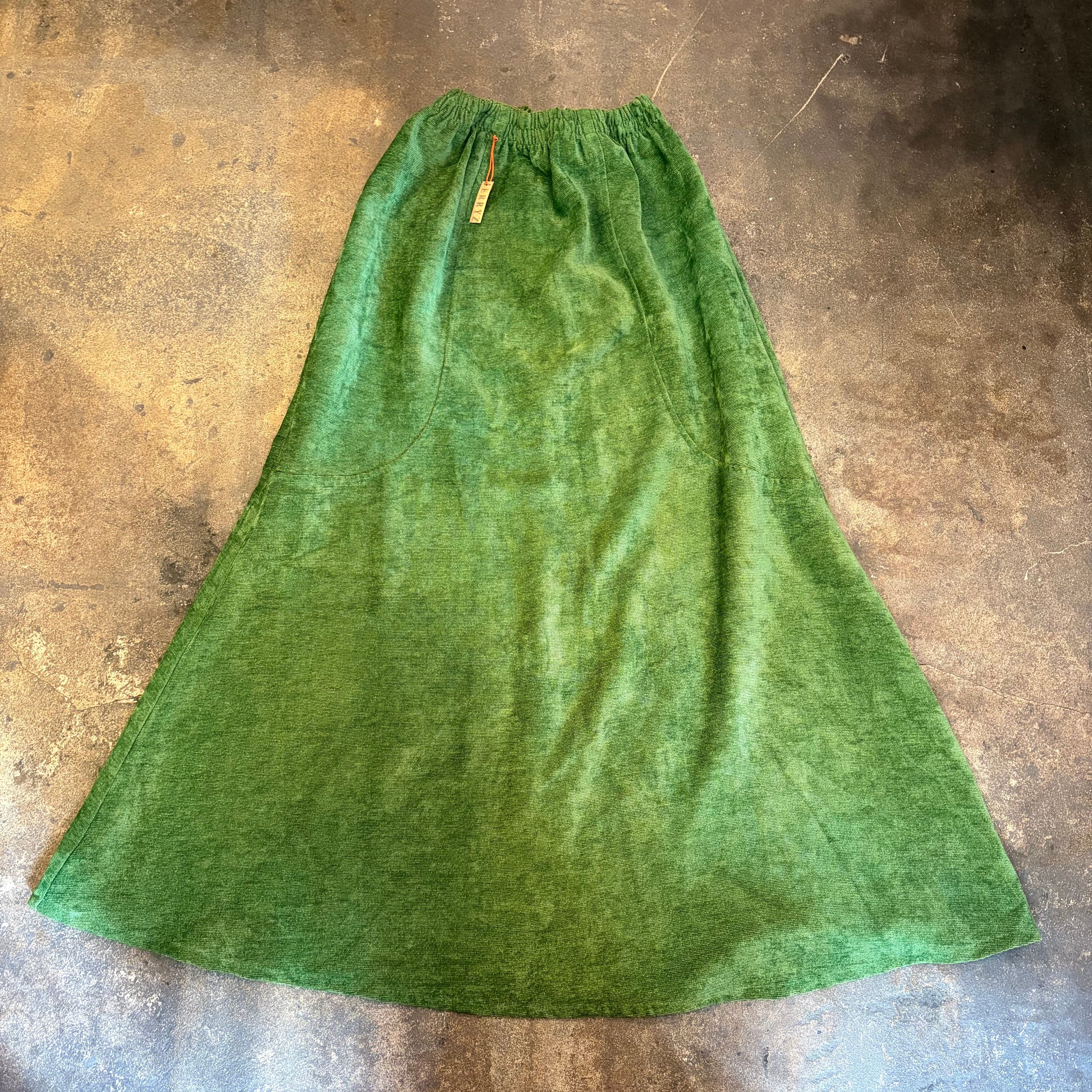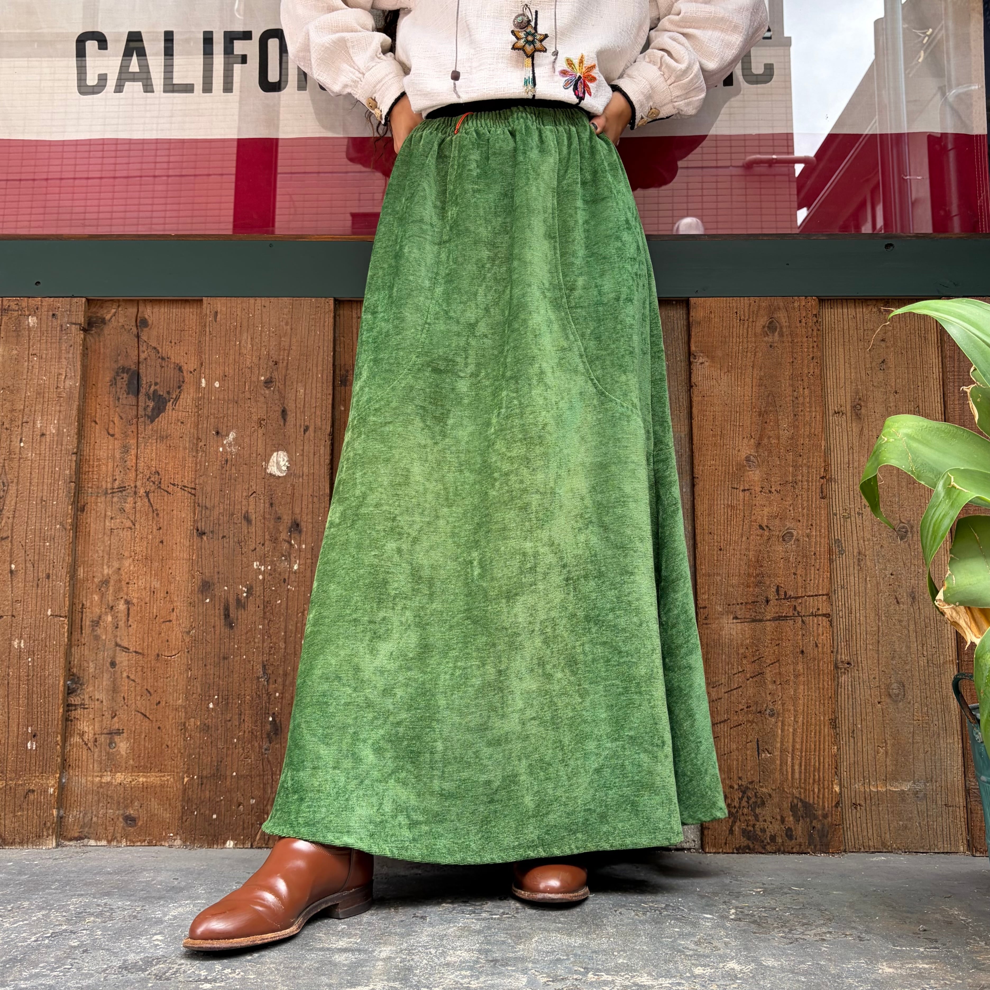 ベロアとコーデュロイの間のような雰囲気の起毛感のある素材が温かみがあってかわいい、ロングスカートです。