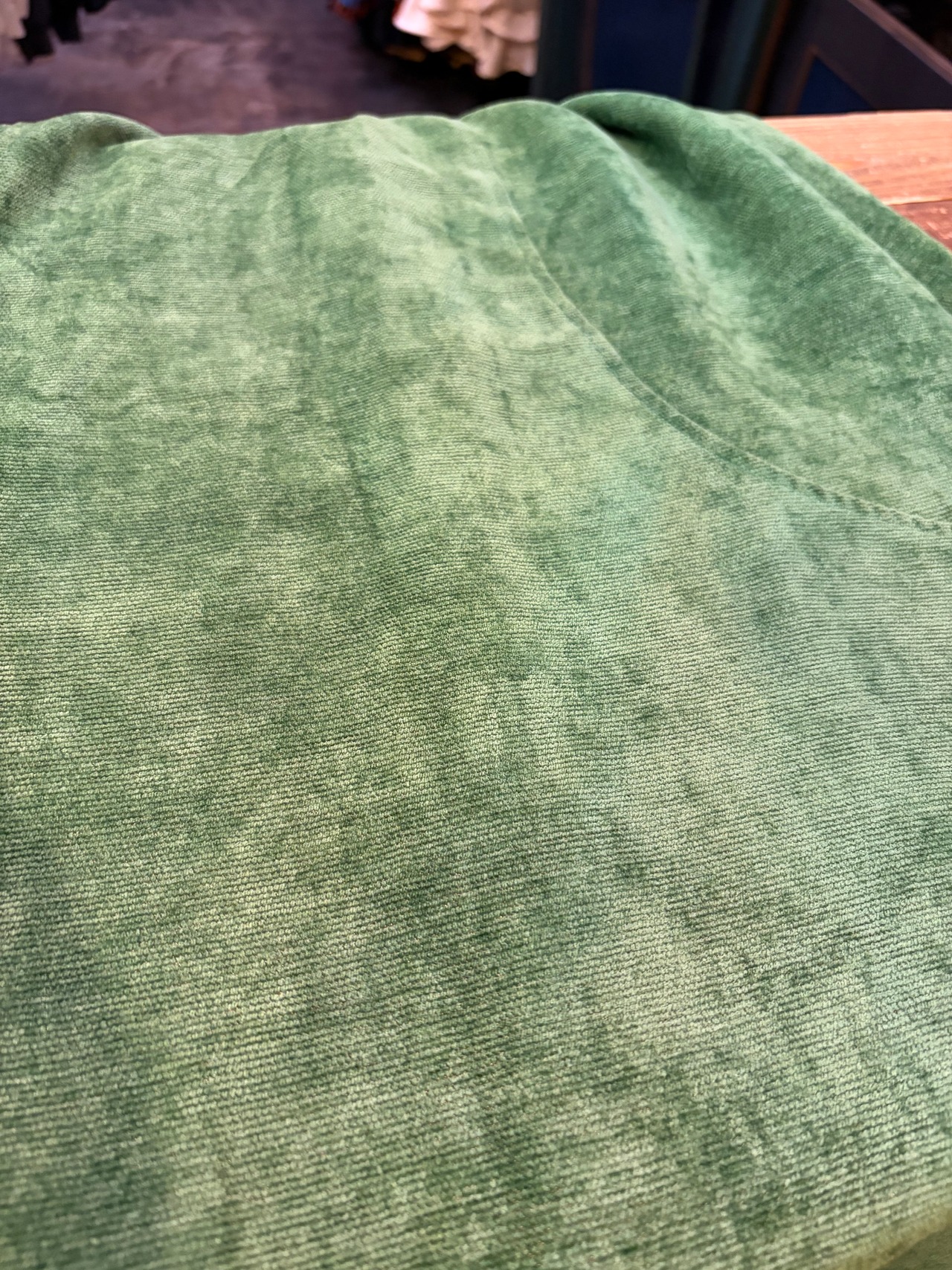少しキミドリ色っぽく色褪せているように見える箇所が広範囲にございます。使用感のある商品ですので古着にご理解のある方のご購入をお願い致します。