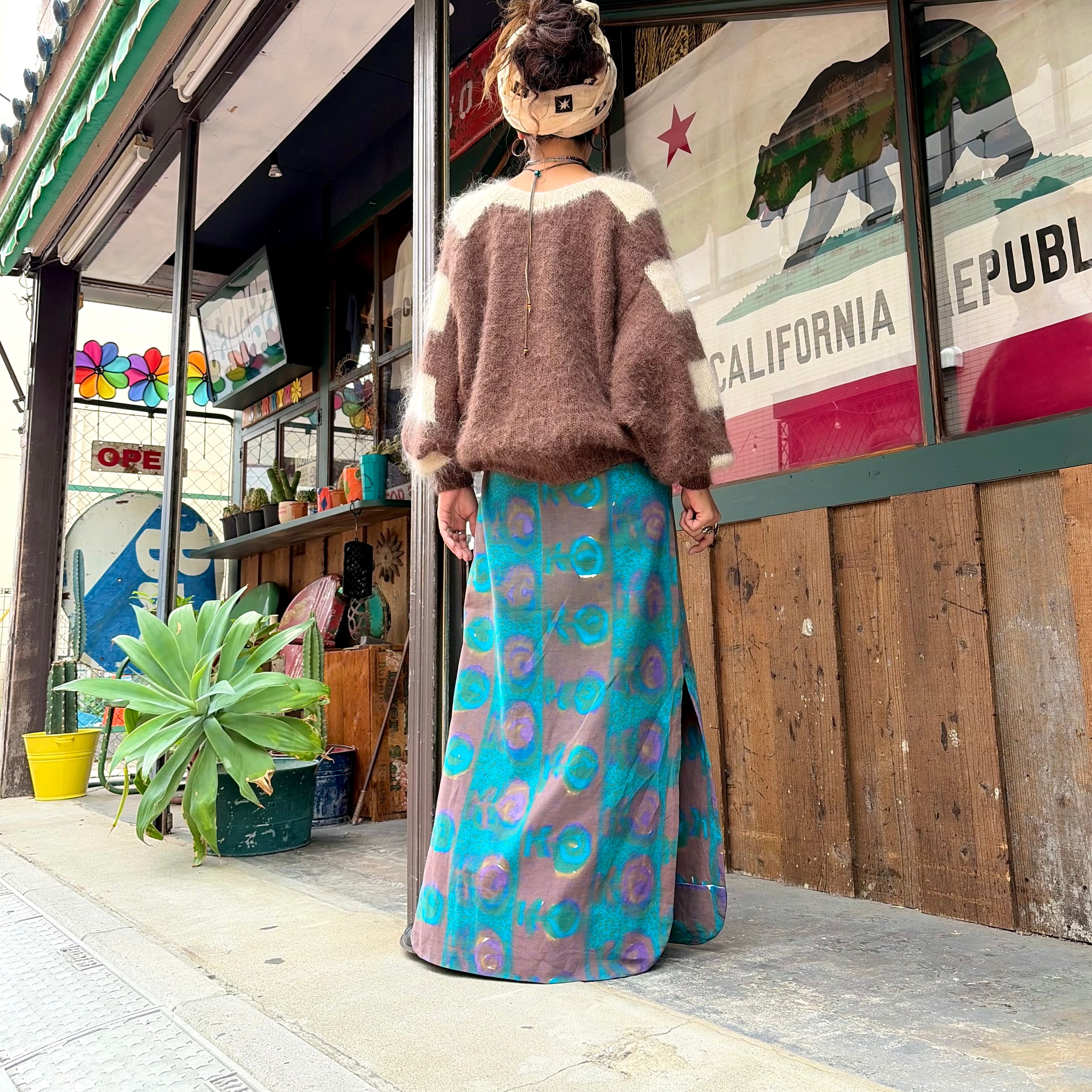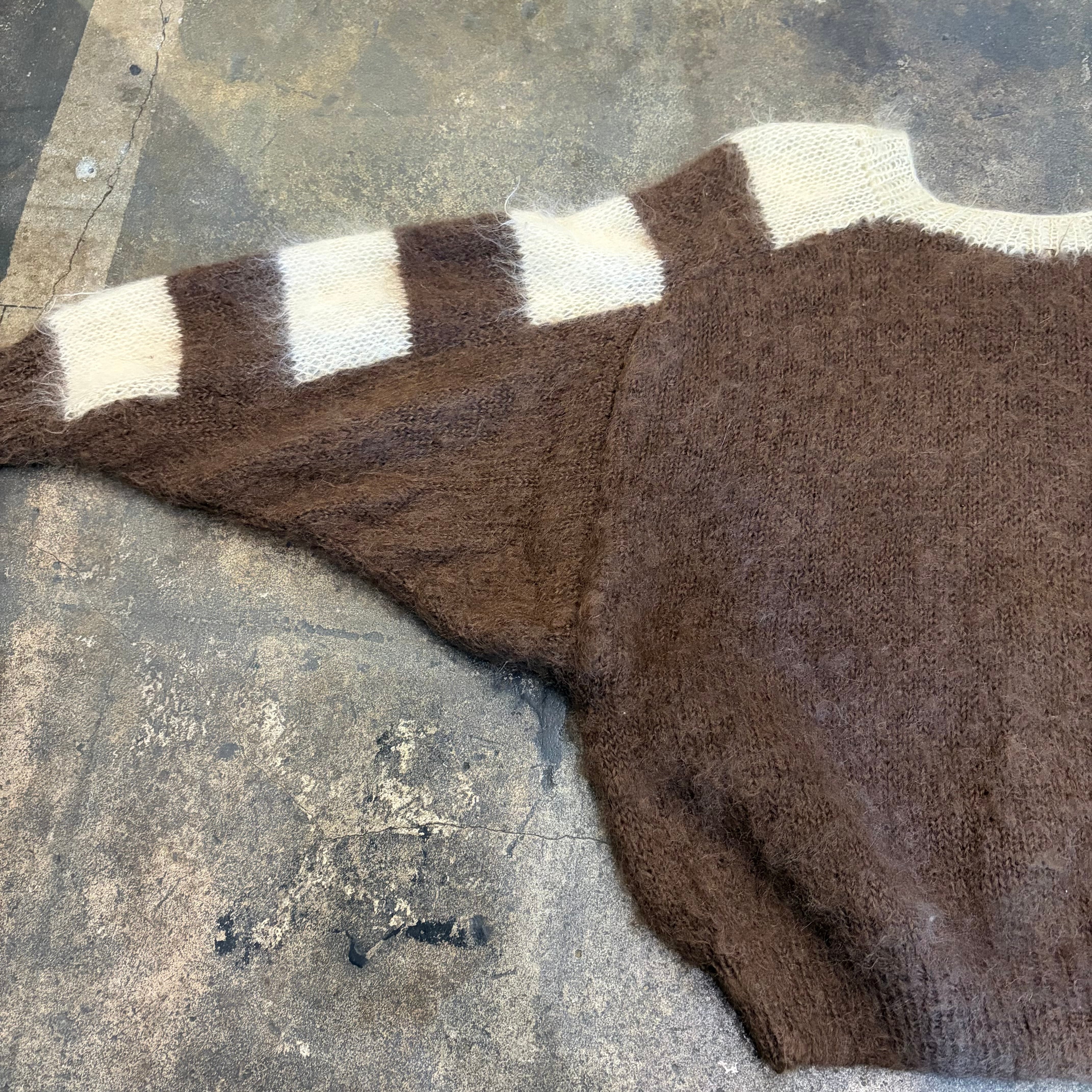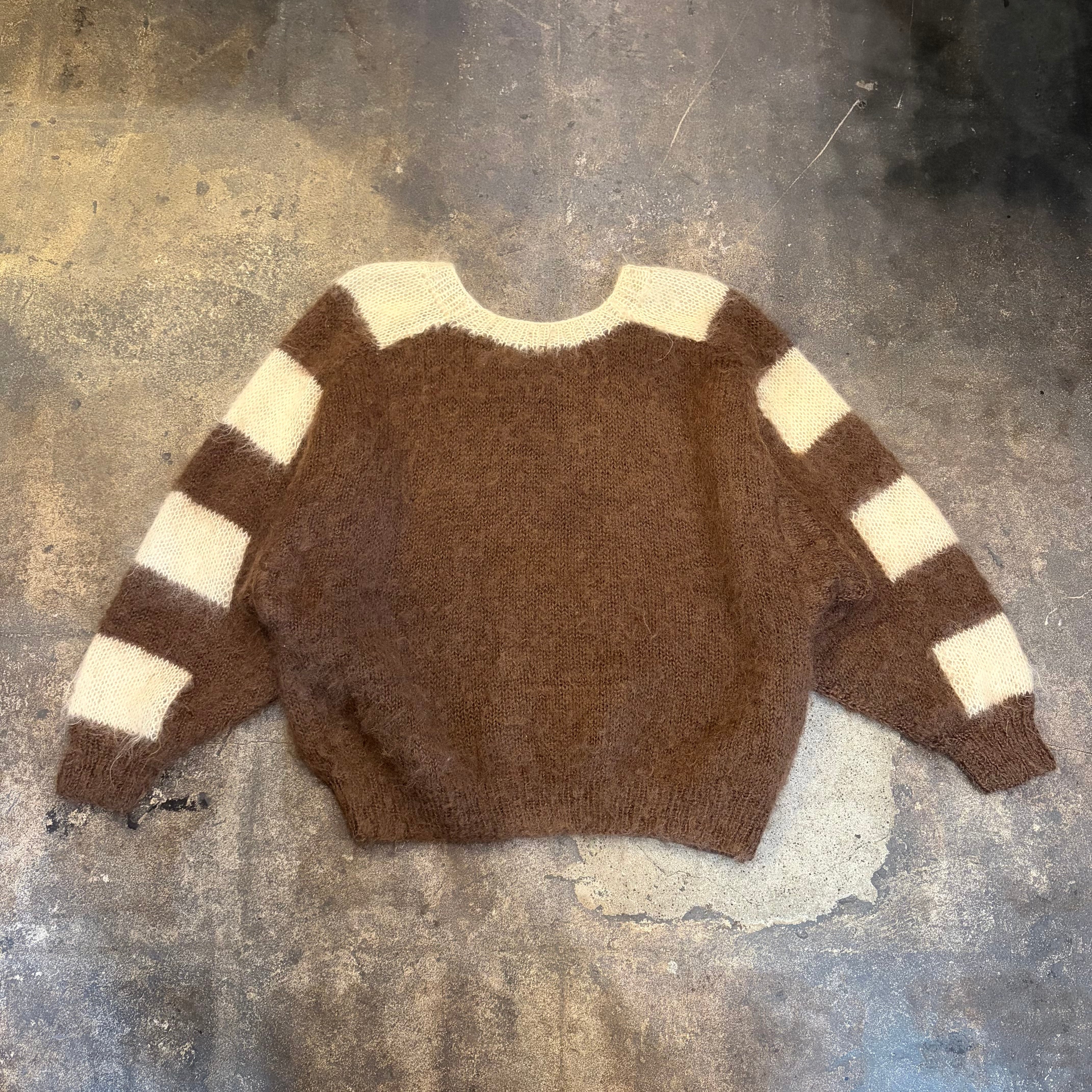 オーラを纏ったように毛がふわふわ泳いで雰囲気がありますね。ドルマンスリーブでまるいシルエットが素敵なのはもちろん、なんと言っても袖のボーダーがレッサーパンダのようでとてもかわいいですね。