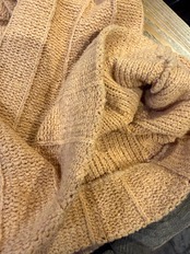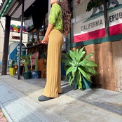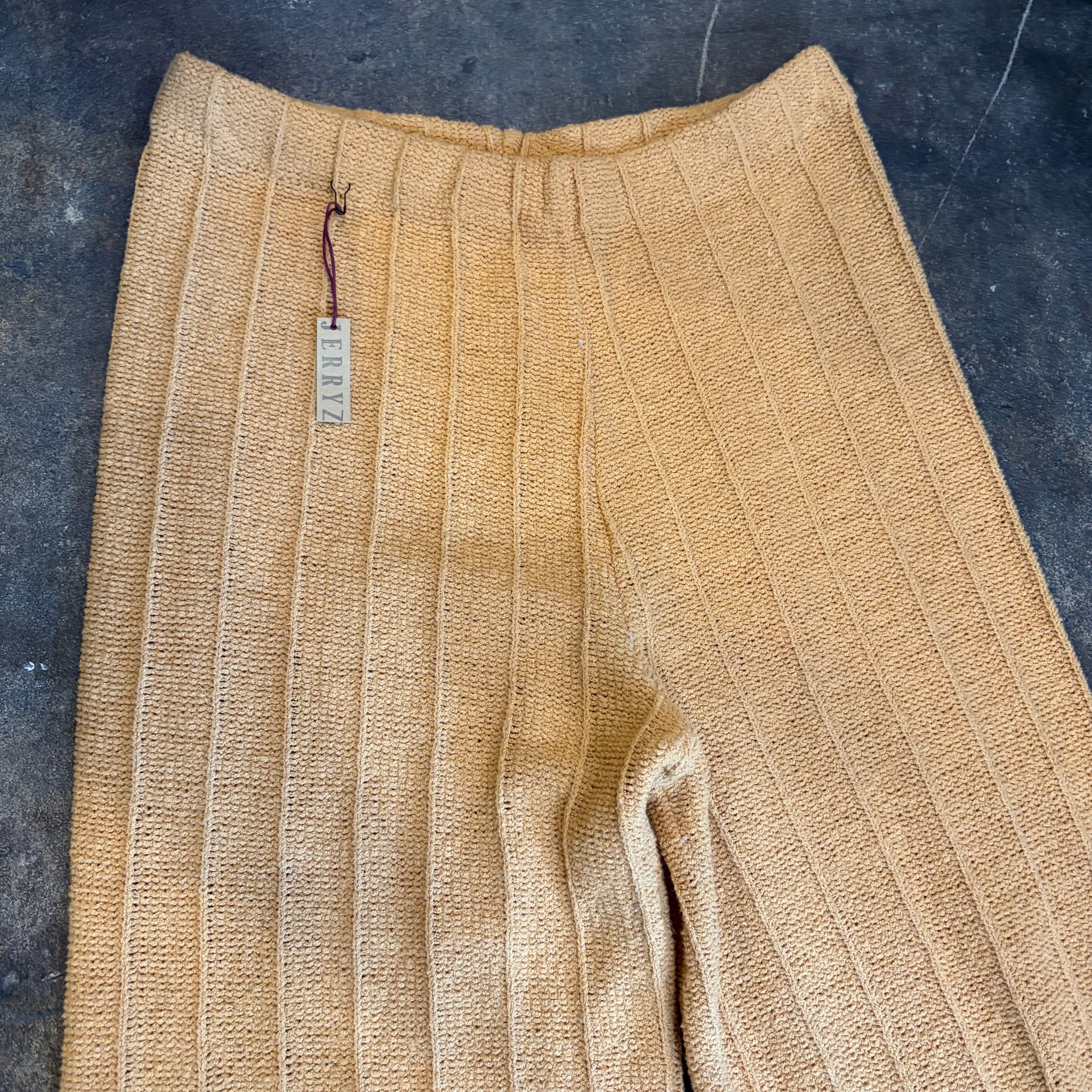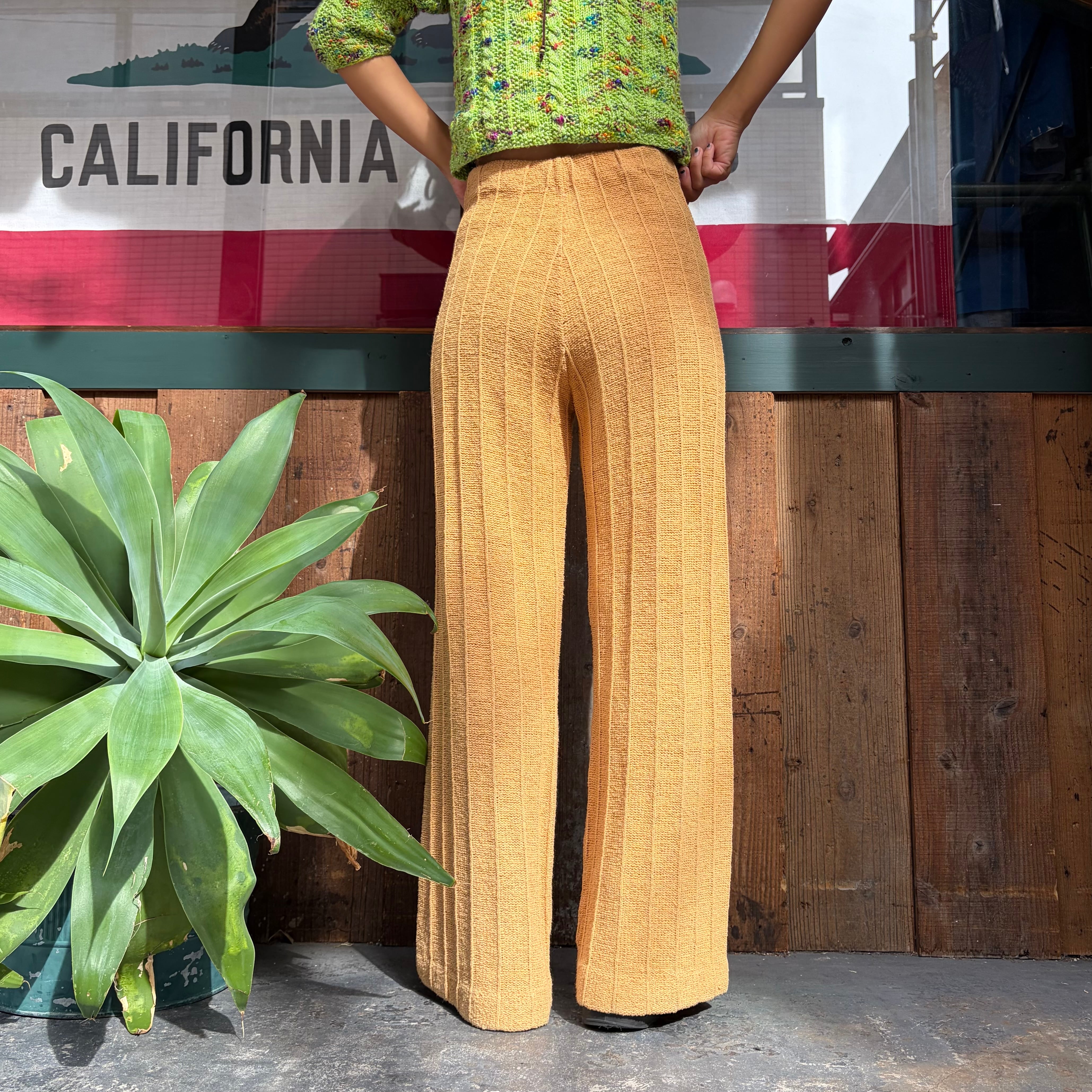 紅葉したイチョウの葉っぱのような色味が柔らかくてかわいいニットのイージーパンツです。