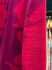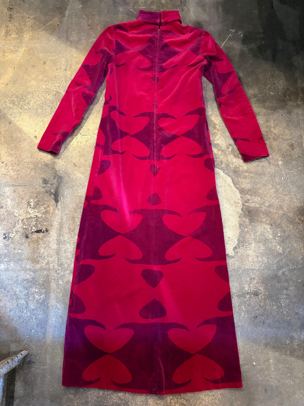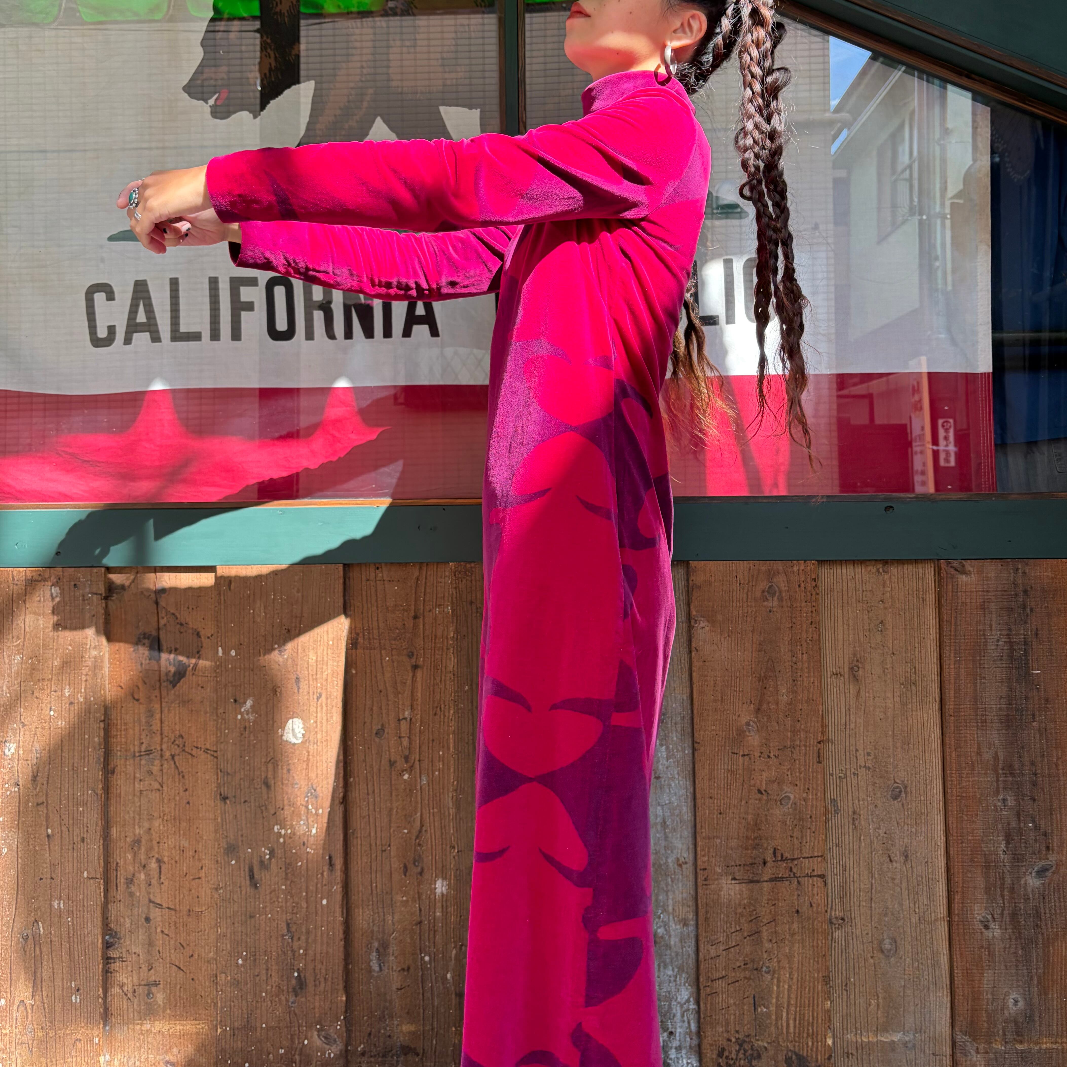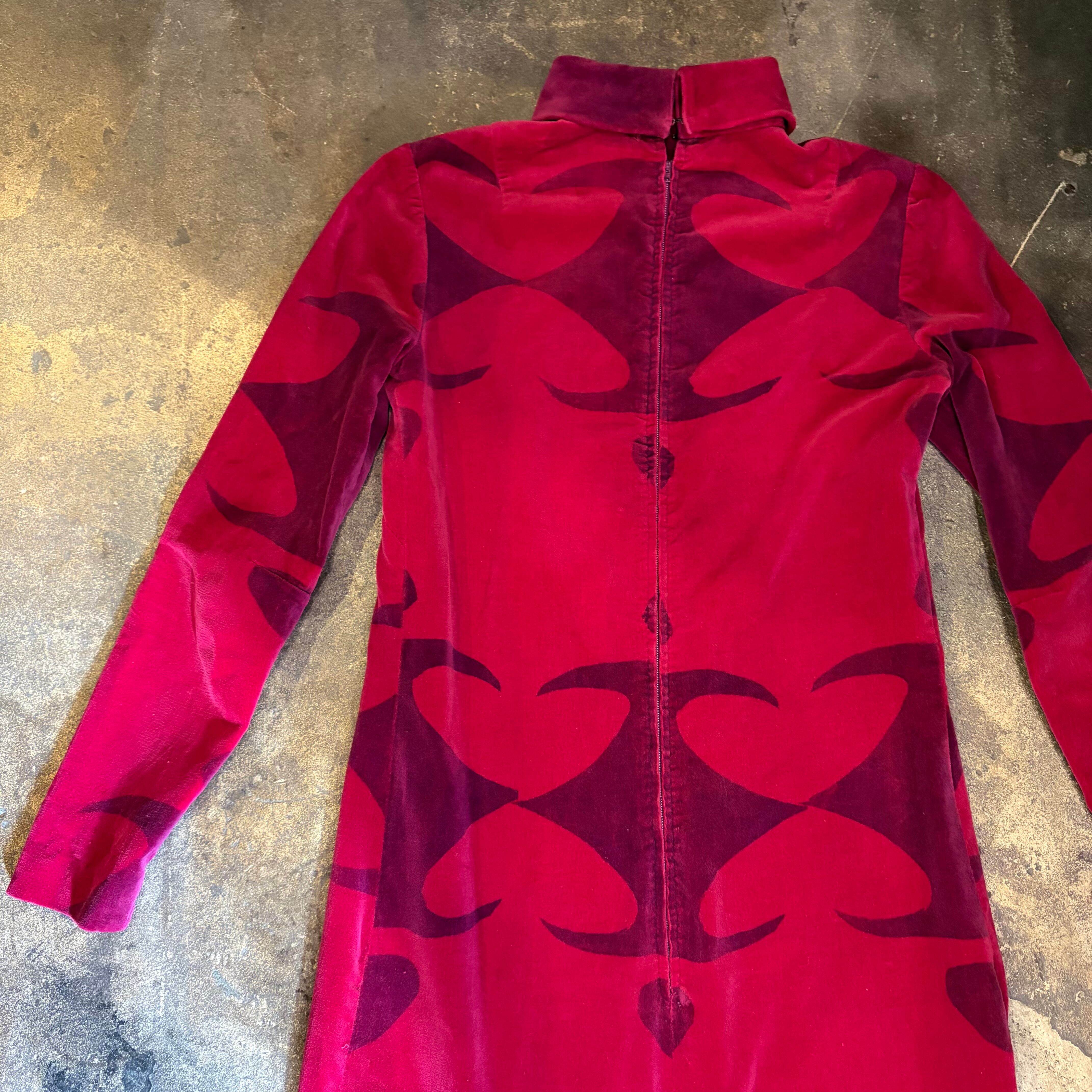 ミッドセンチュリーの家具にありそうなサイケデリックだけど上品でおしゃれな、とても雰囲気のある60〜70年代頃のワンピースです。