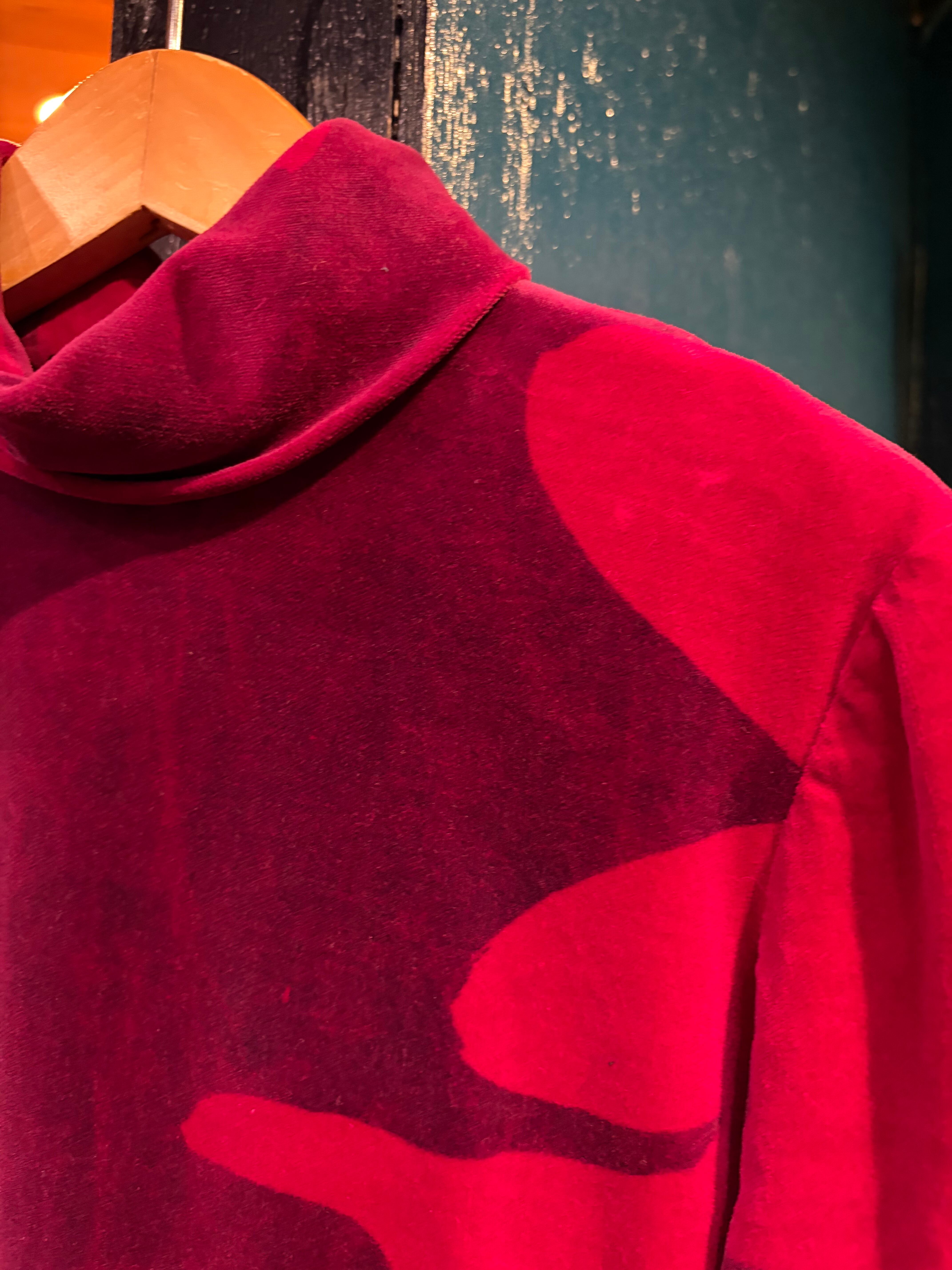 柄や色味が素敵なのはもちろんですが、タートルネックで細身の袖にすっきりしたシルエットでとてもカッコ良いフォトジェニックな一着だと思います。