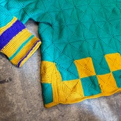 グラニースクエアをたくさん作って繋ぎ合わせたタイプでとても派手ではないのですが個性的なデザインだと思います。