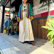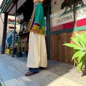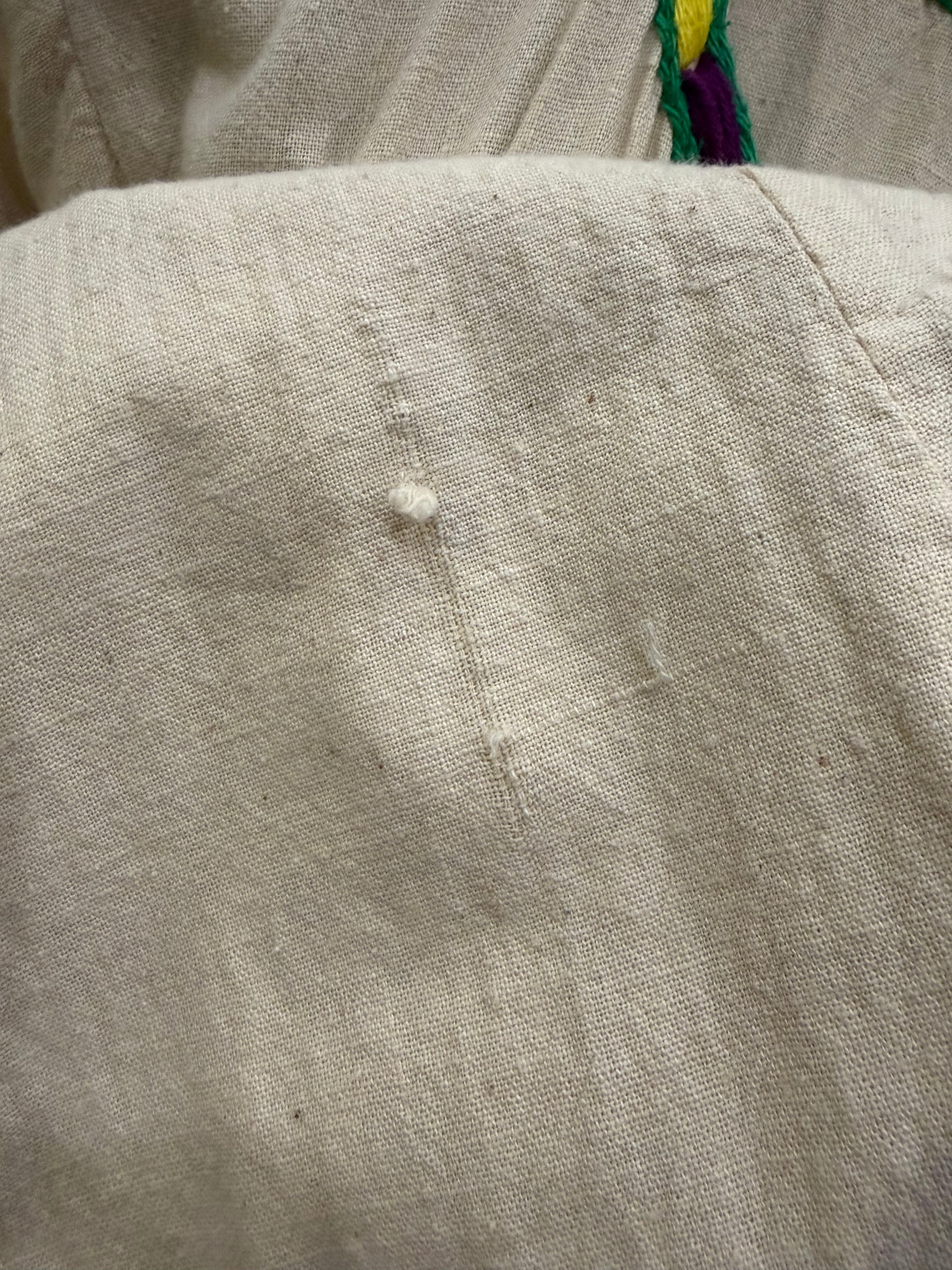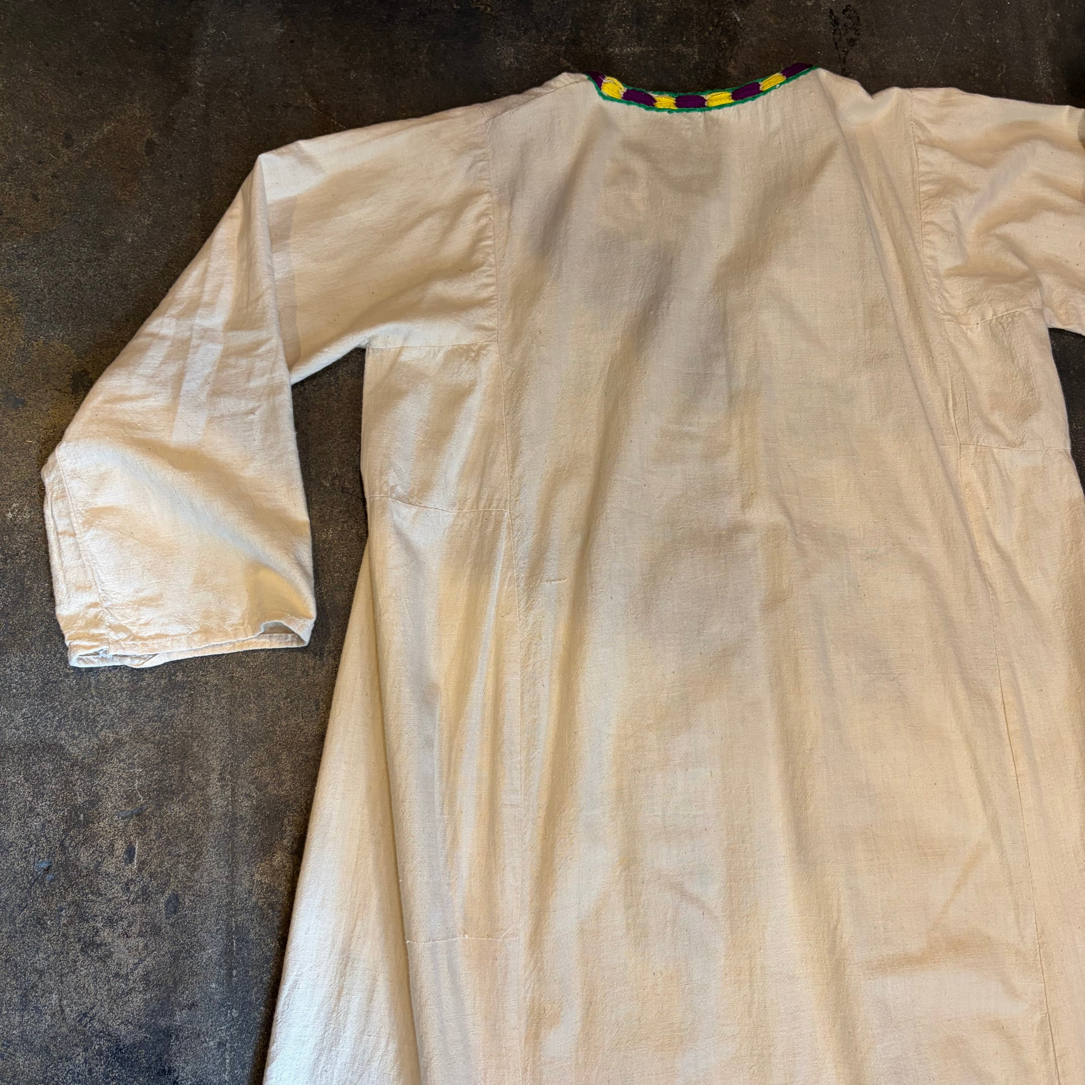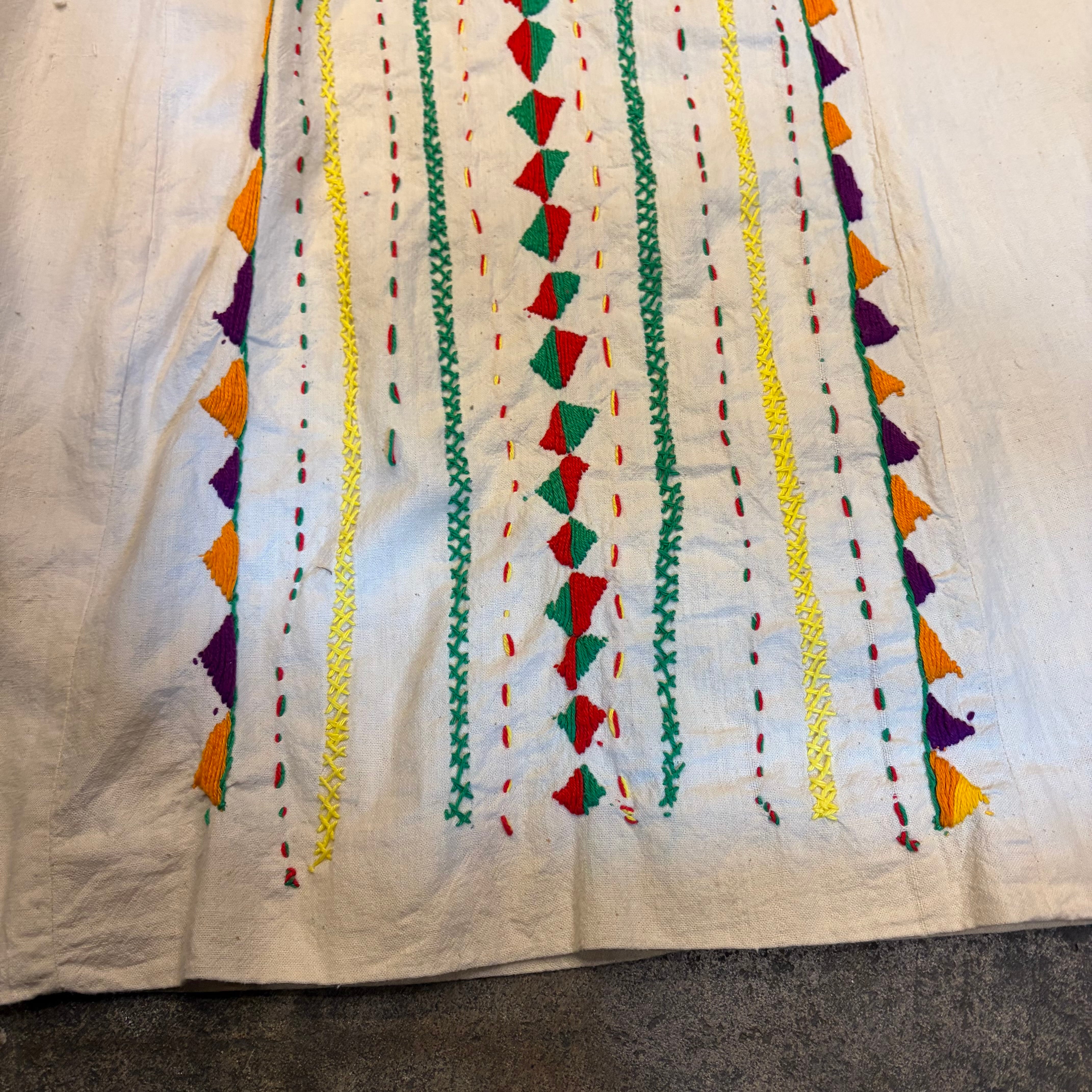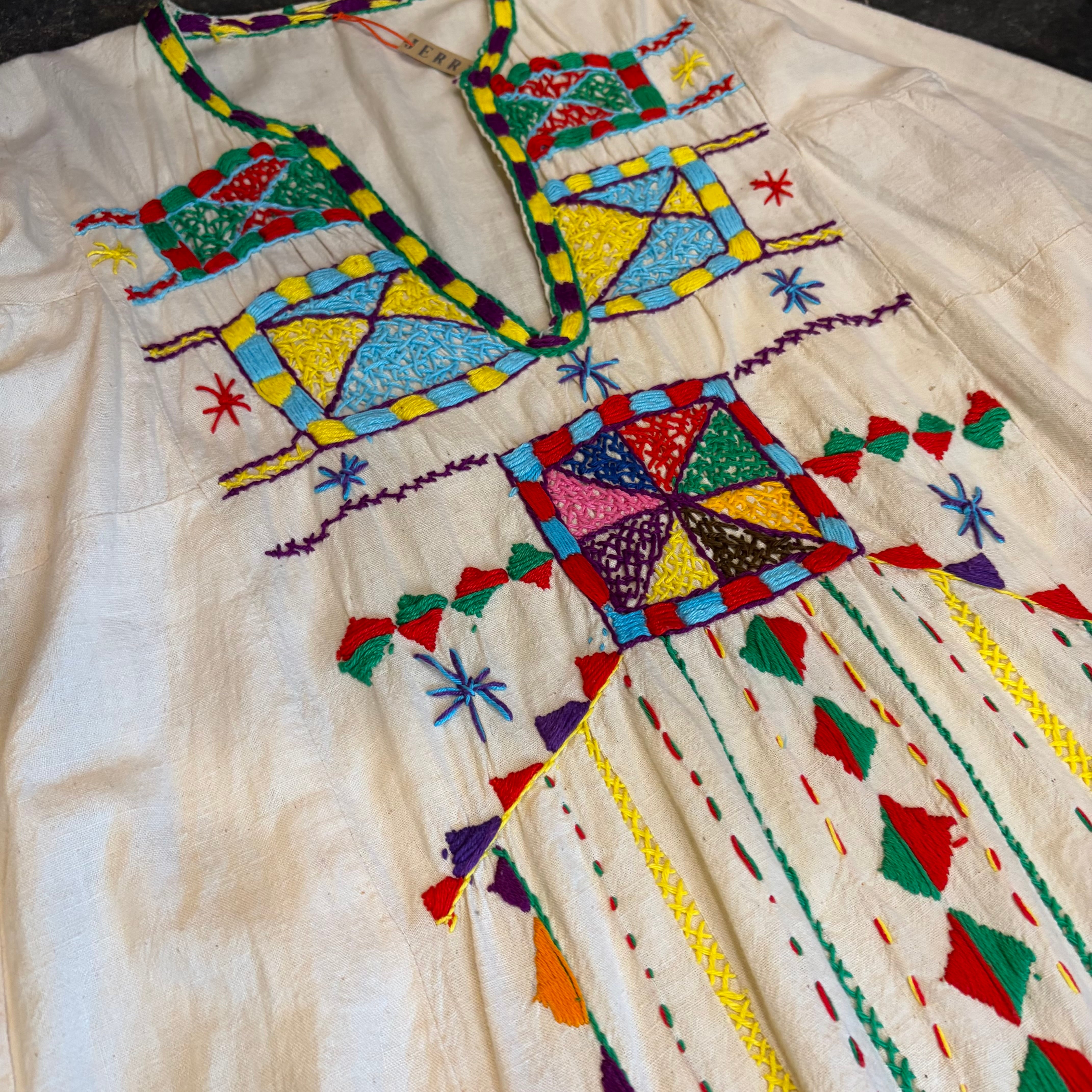 太めの袖と深めにスリットの入った襟ぐり、ゆったりAラインシルエットが良い感じですね。独特な雰囲気の模様が面白いですし、結構ポップな印象です。おそらくメキシコのものと思われます。
