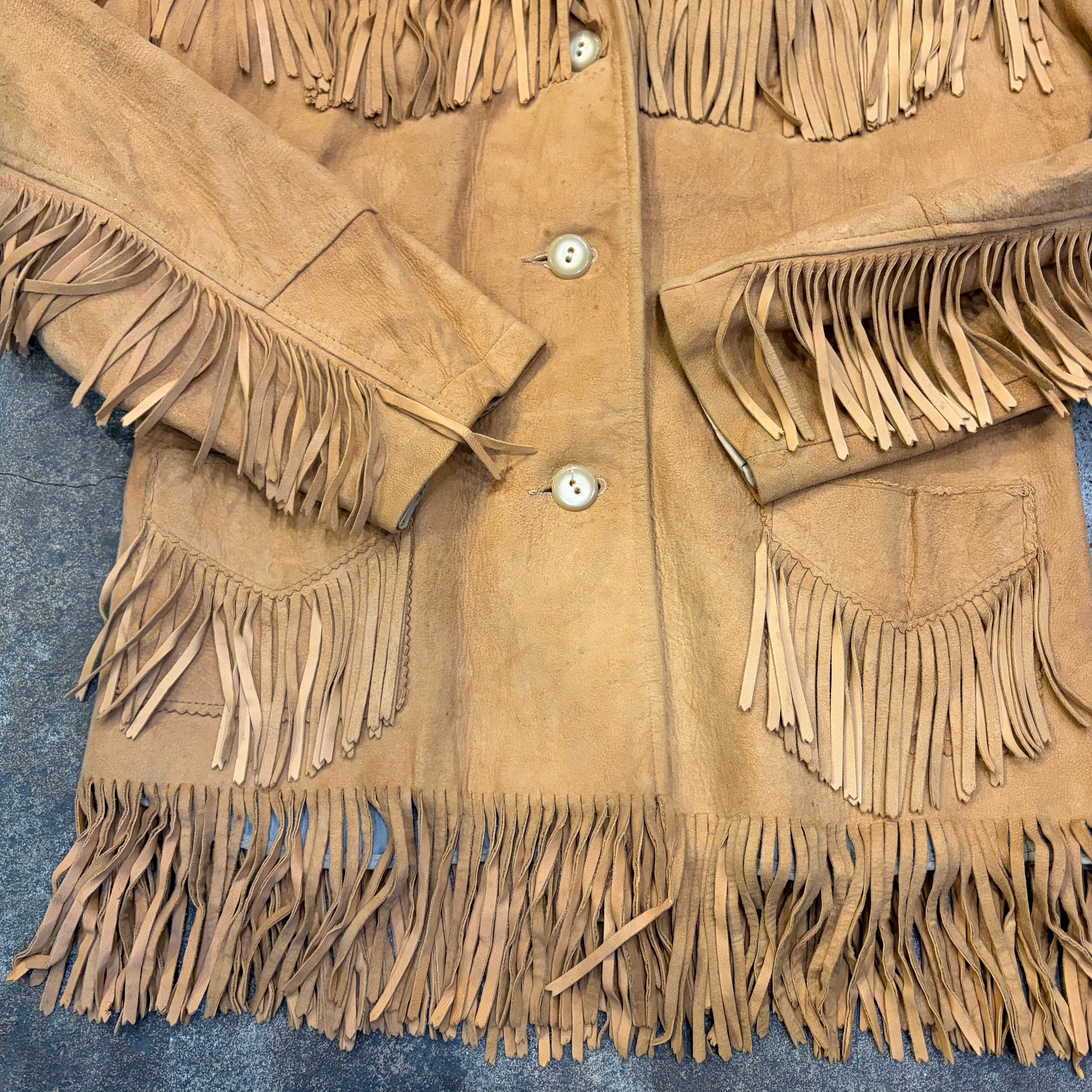 袖にもヨークにも裾にもフリンジだらけのウエスタンなかっこいいジャケットです。
