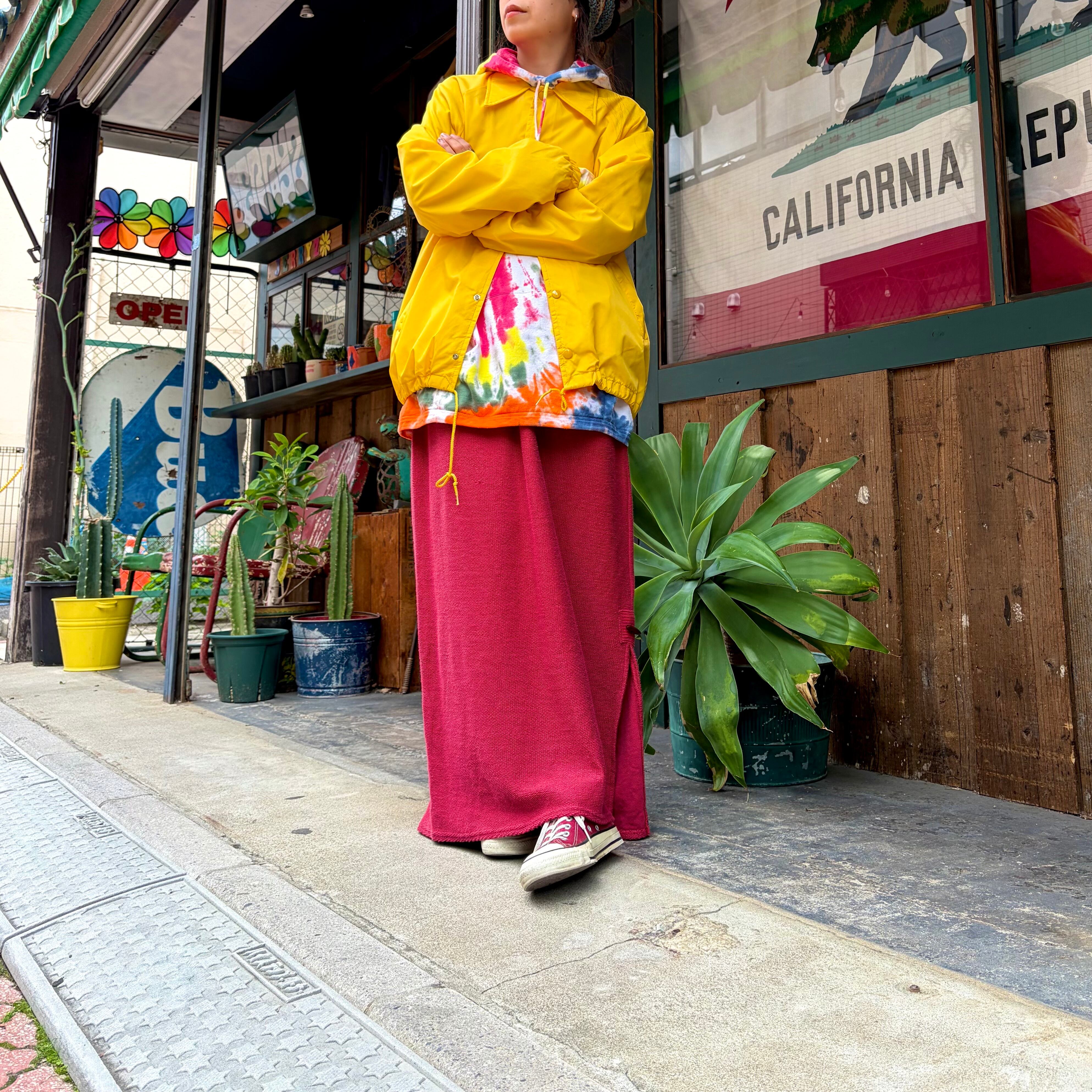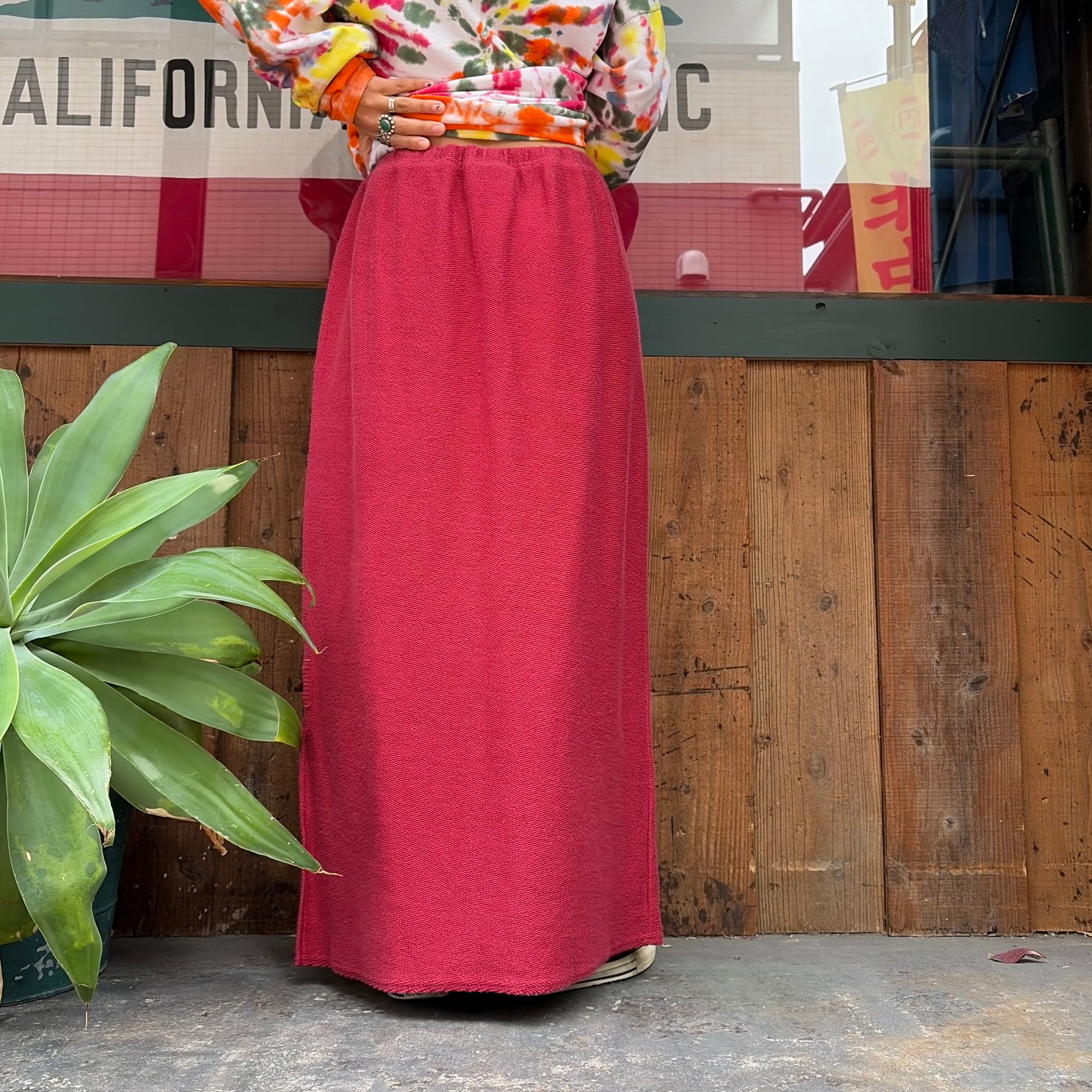 優しいエンジ色がかわいいパイルのようなニット素材のスカートです。