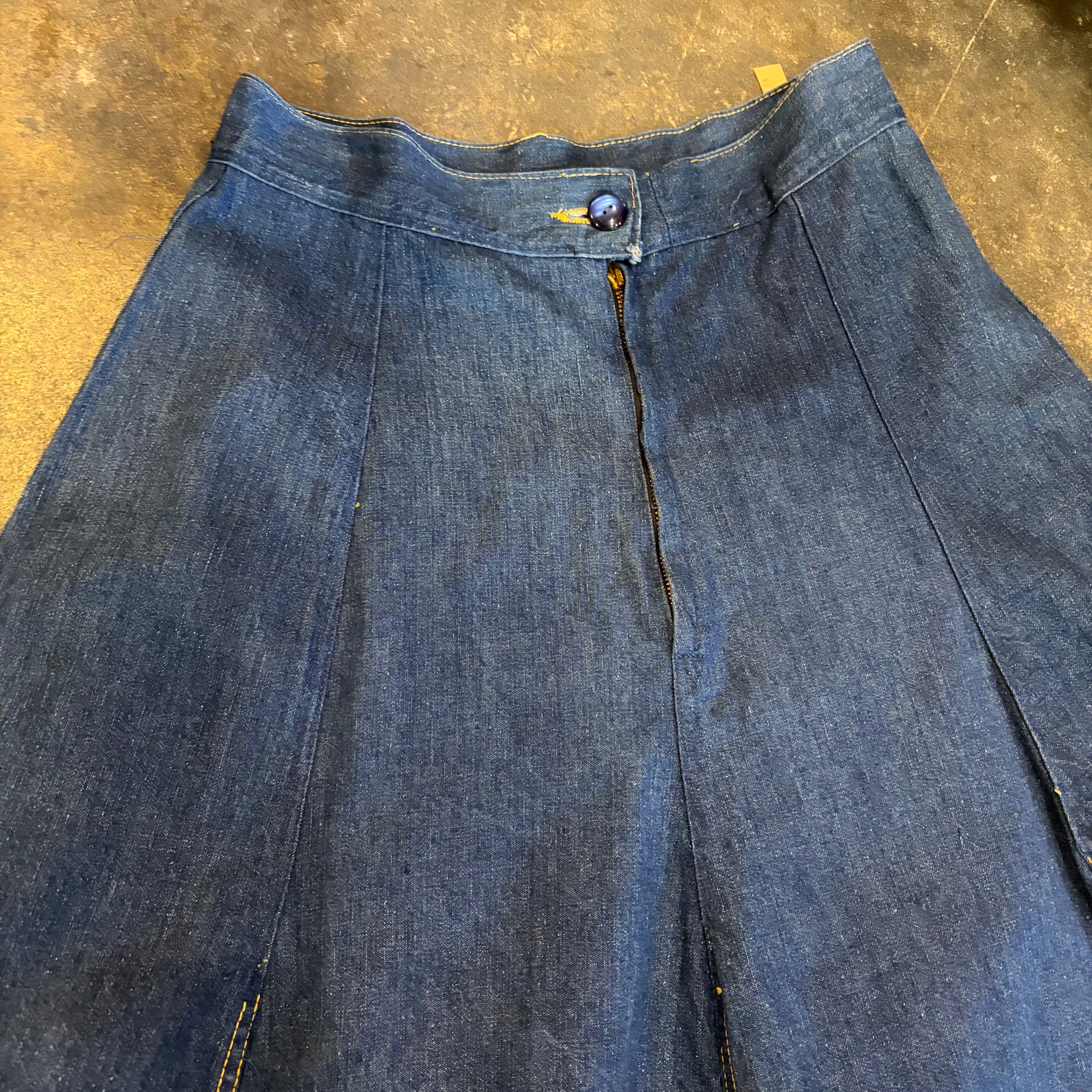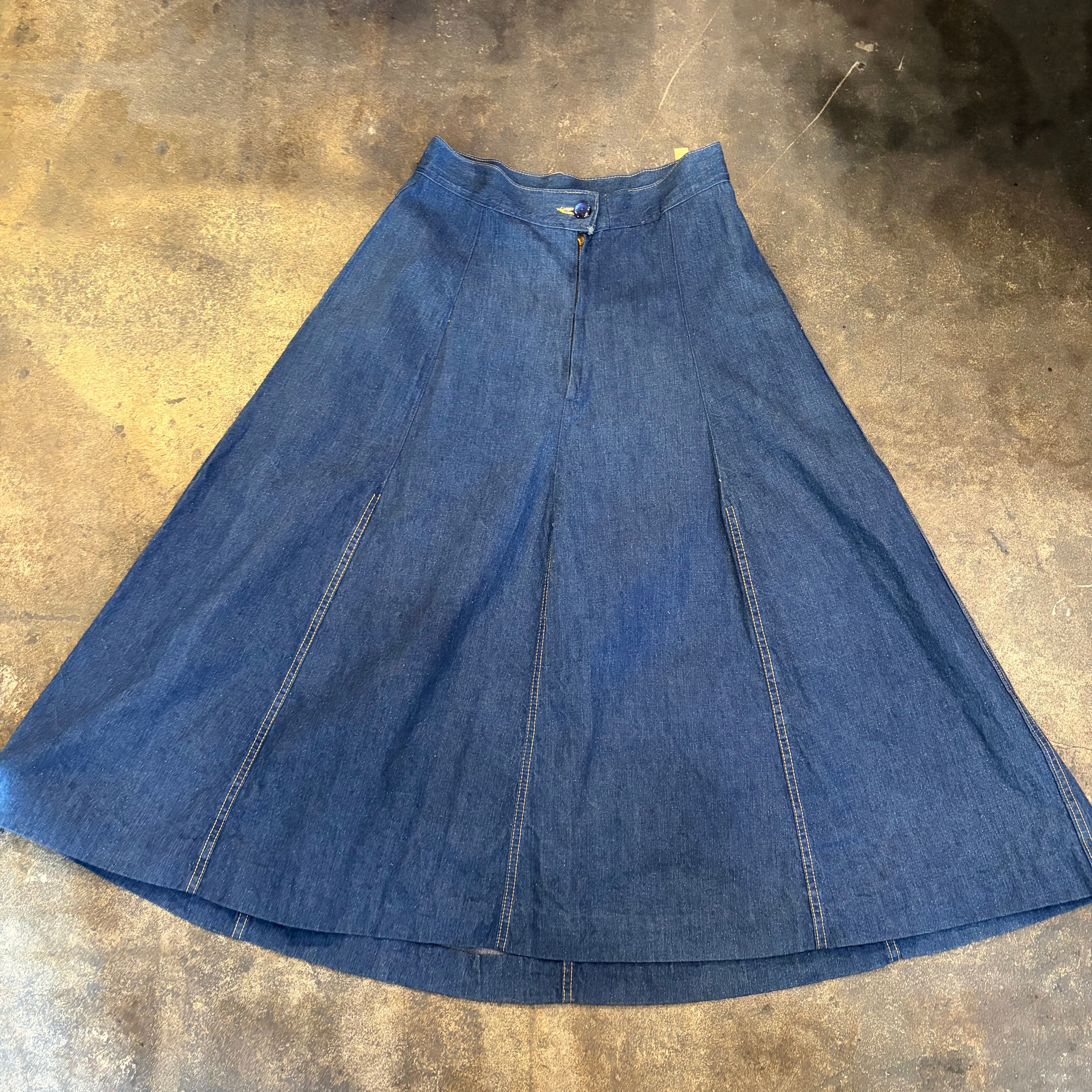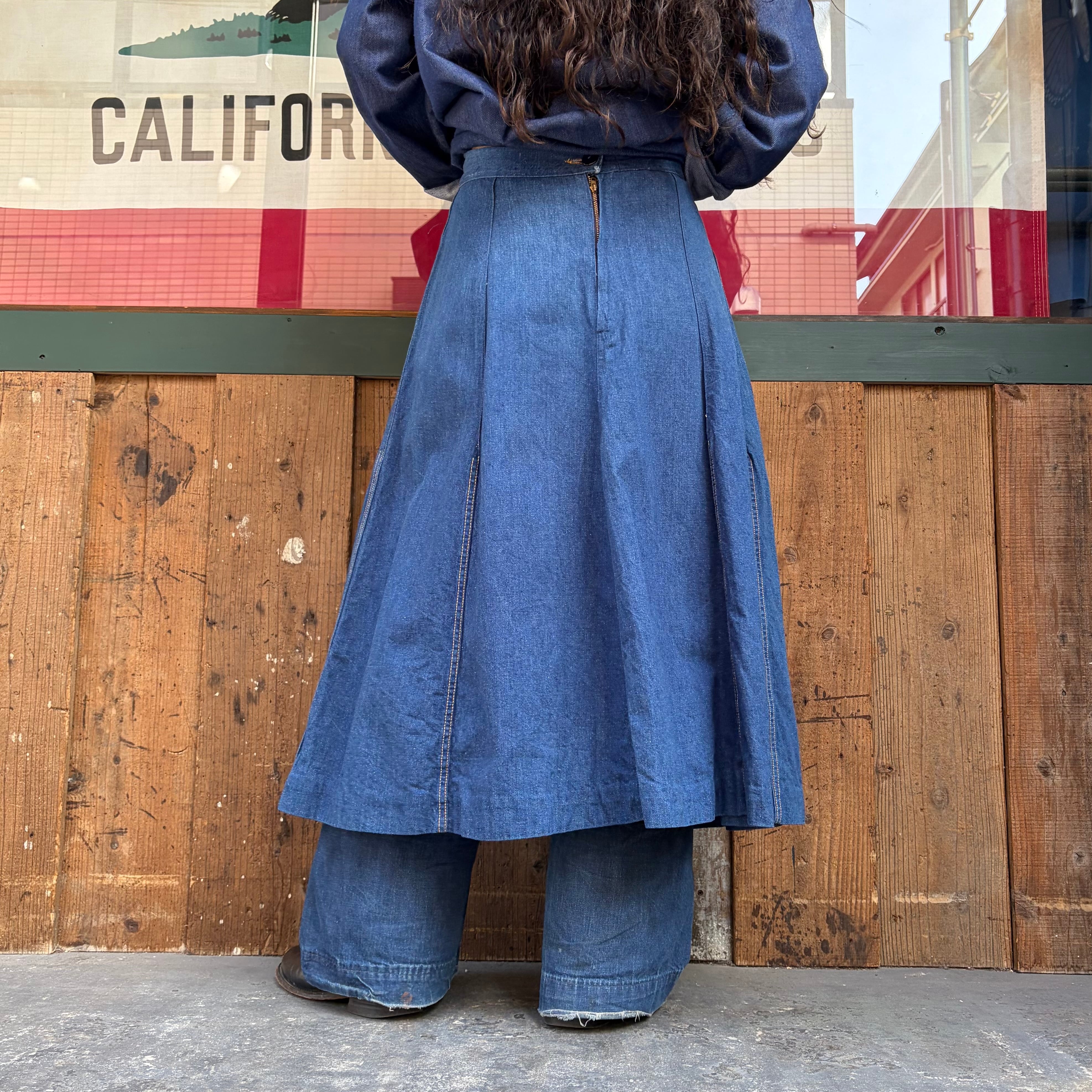 パンツか何かをリメイクしたのか?と思われる少し古そうなデニム素材のスカートです。