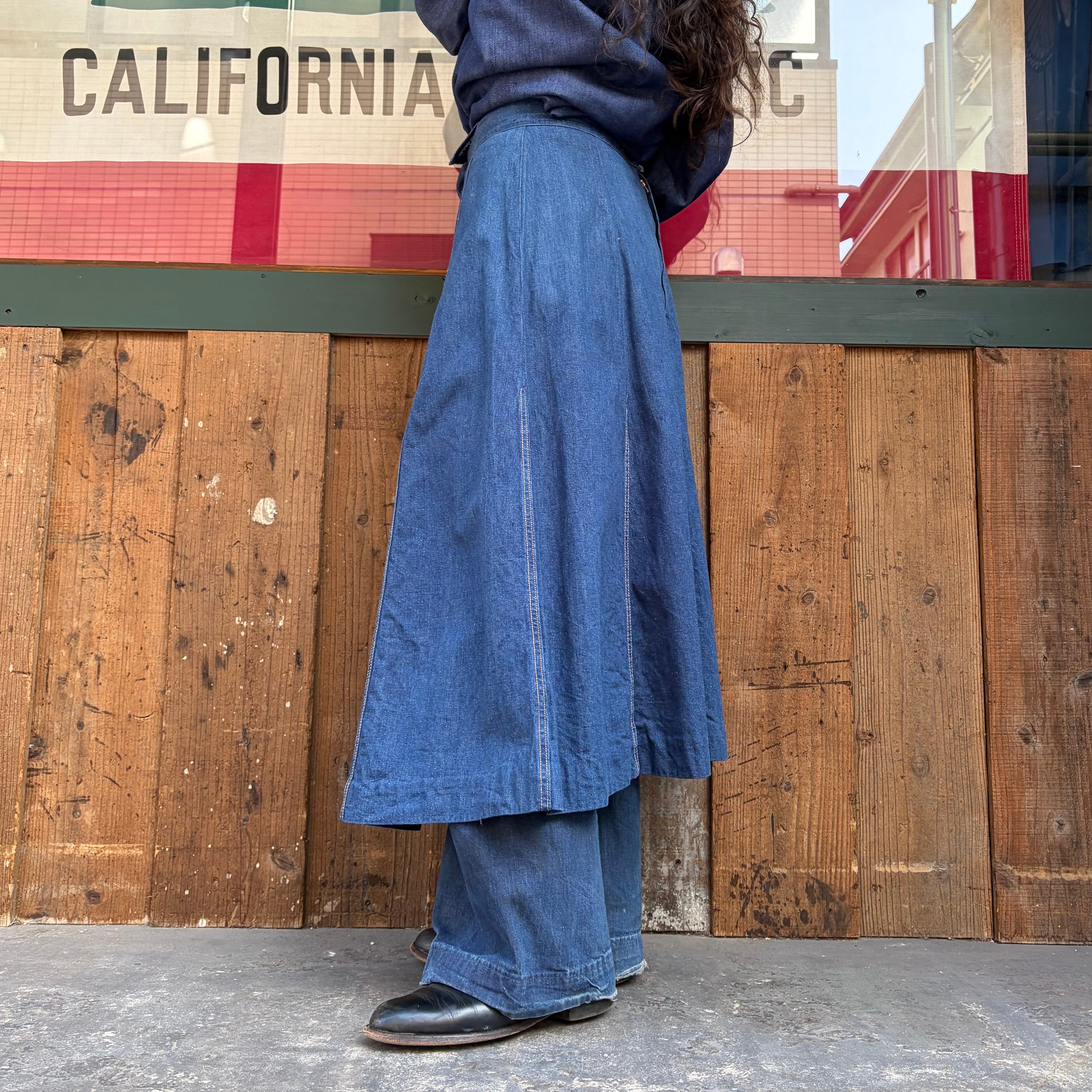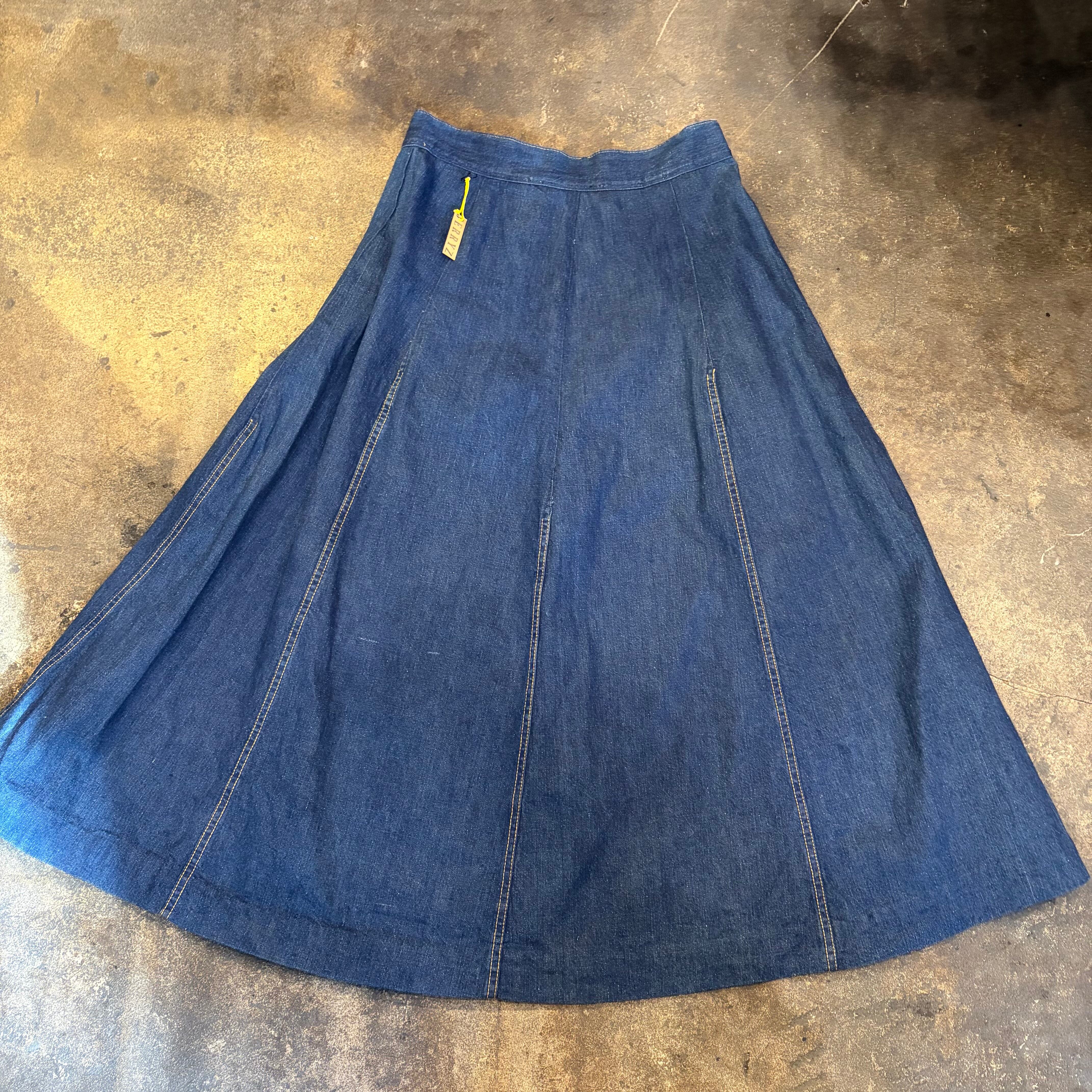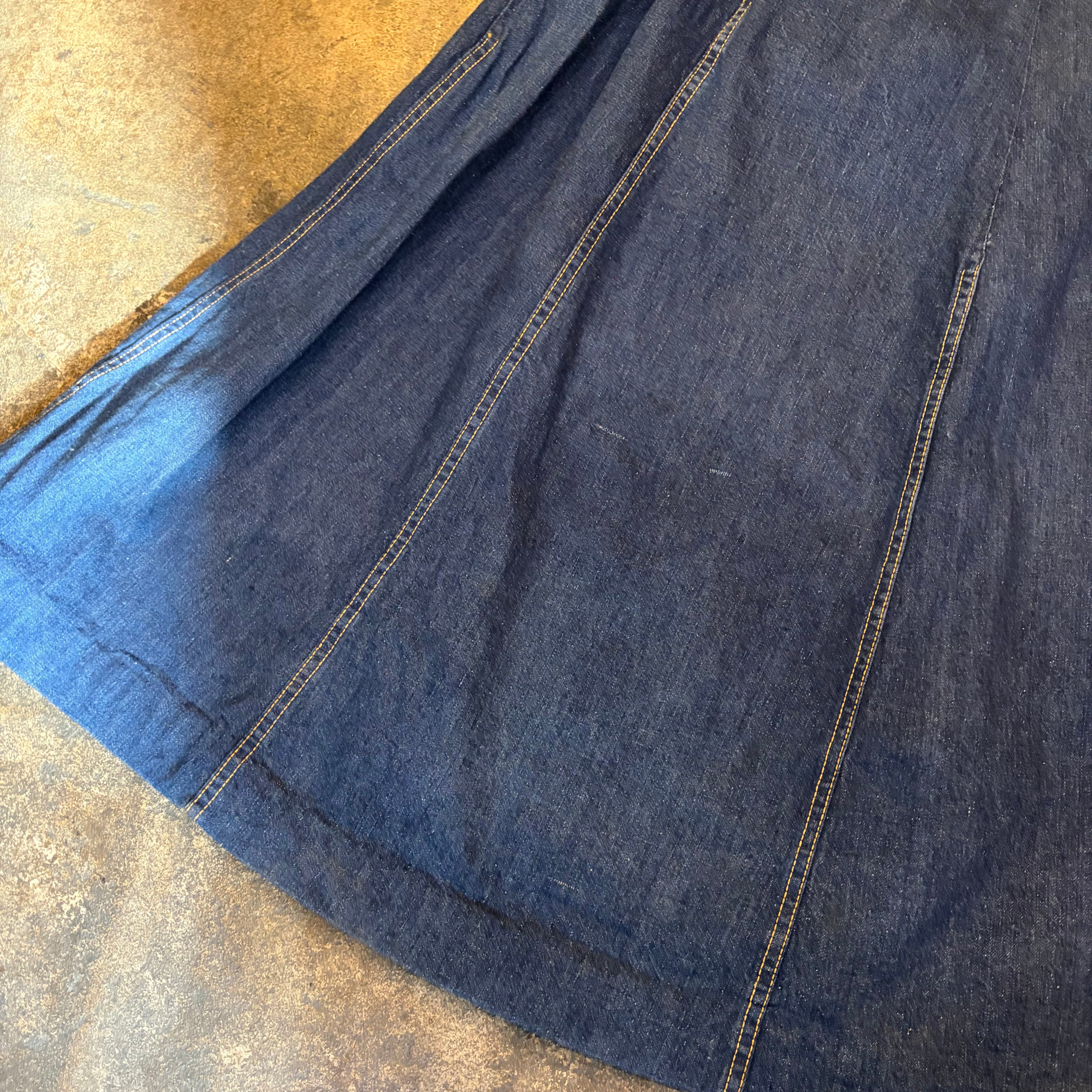 パンツか何かをリメイクしたのか?と思われる少し古そうなデニム素材のスカートです。
