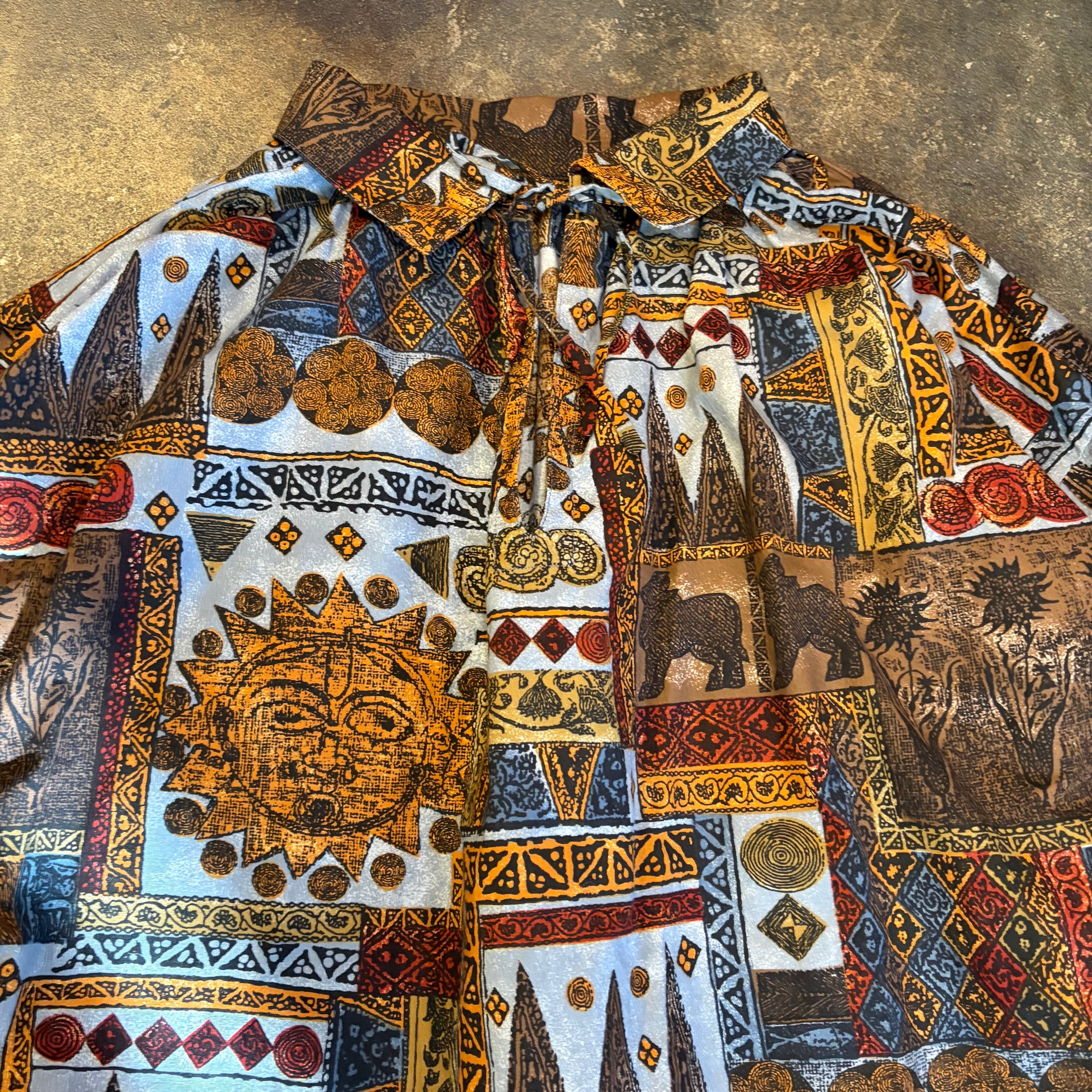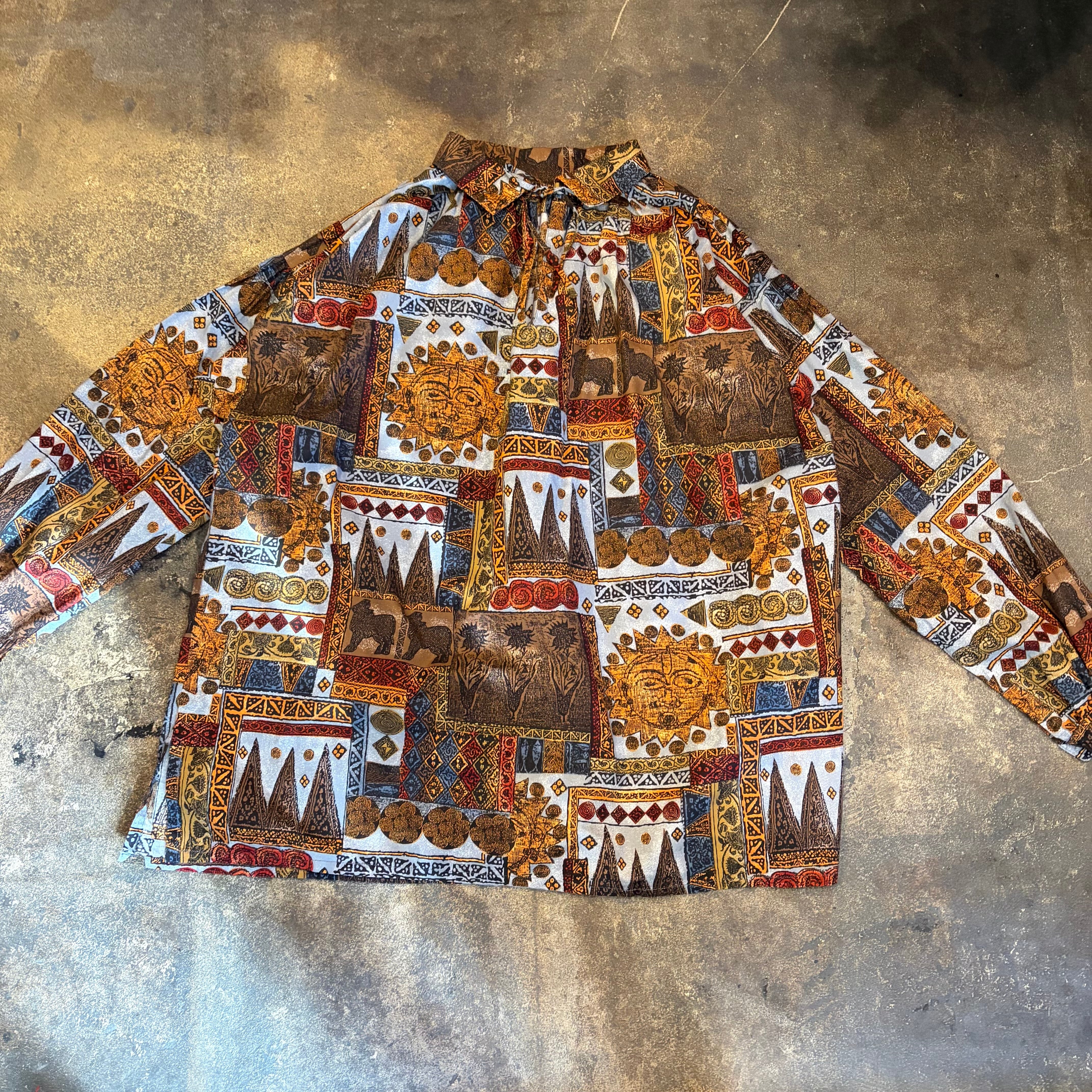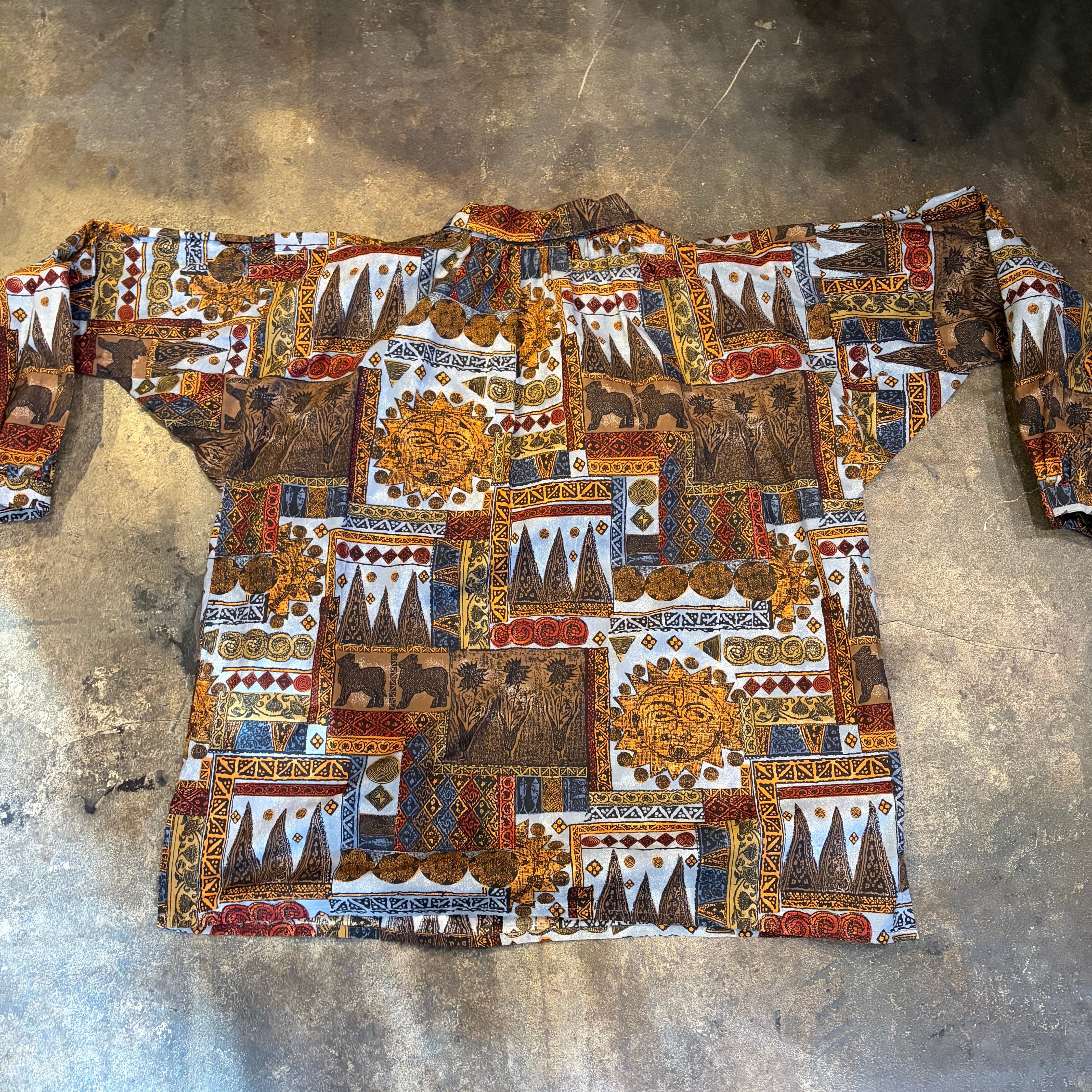 エスニックなような壁画のようなエキゾチックな柄ががかわいいスモックタイプのチュニックです。