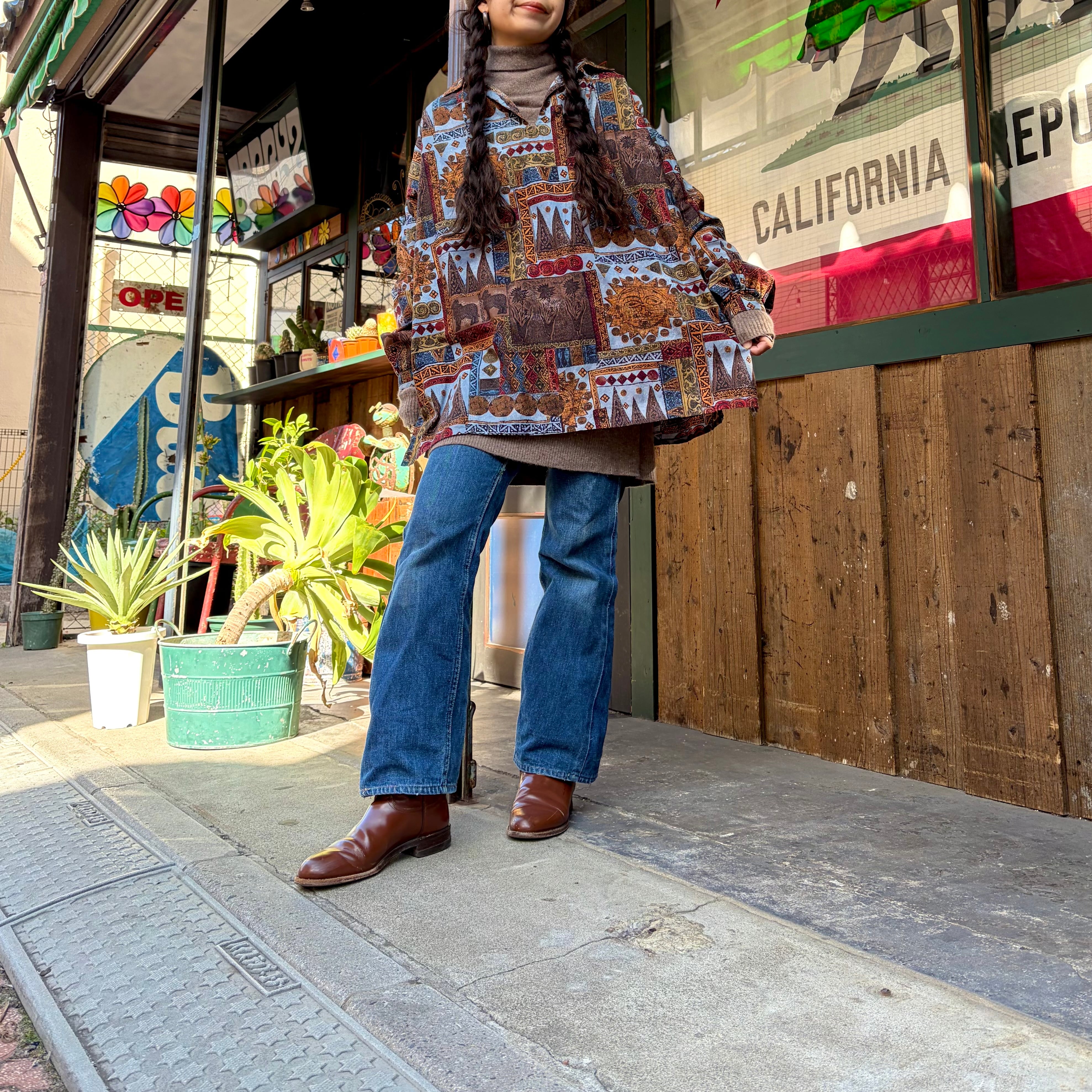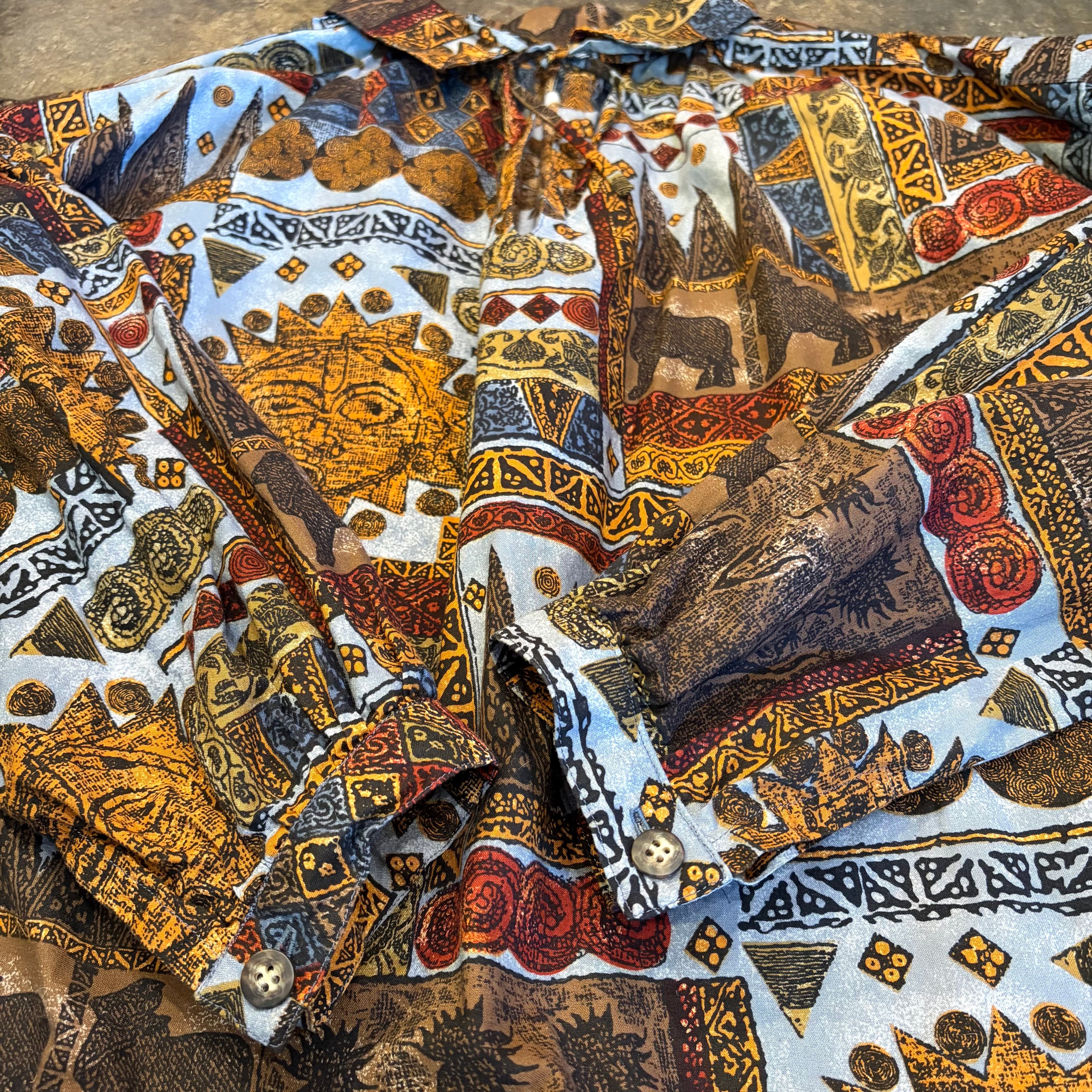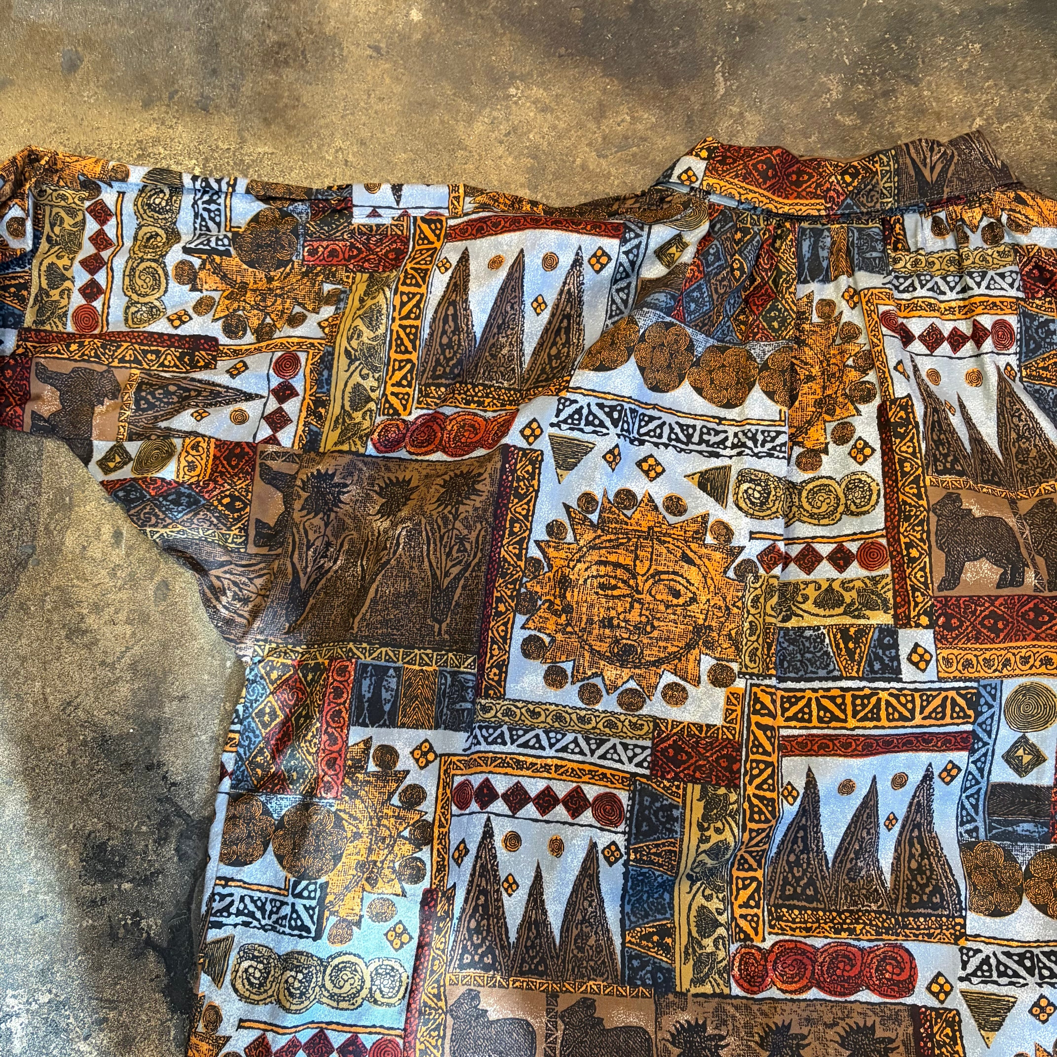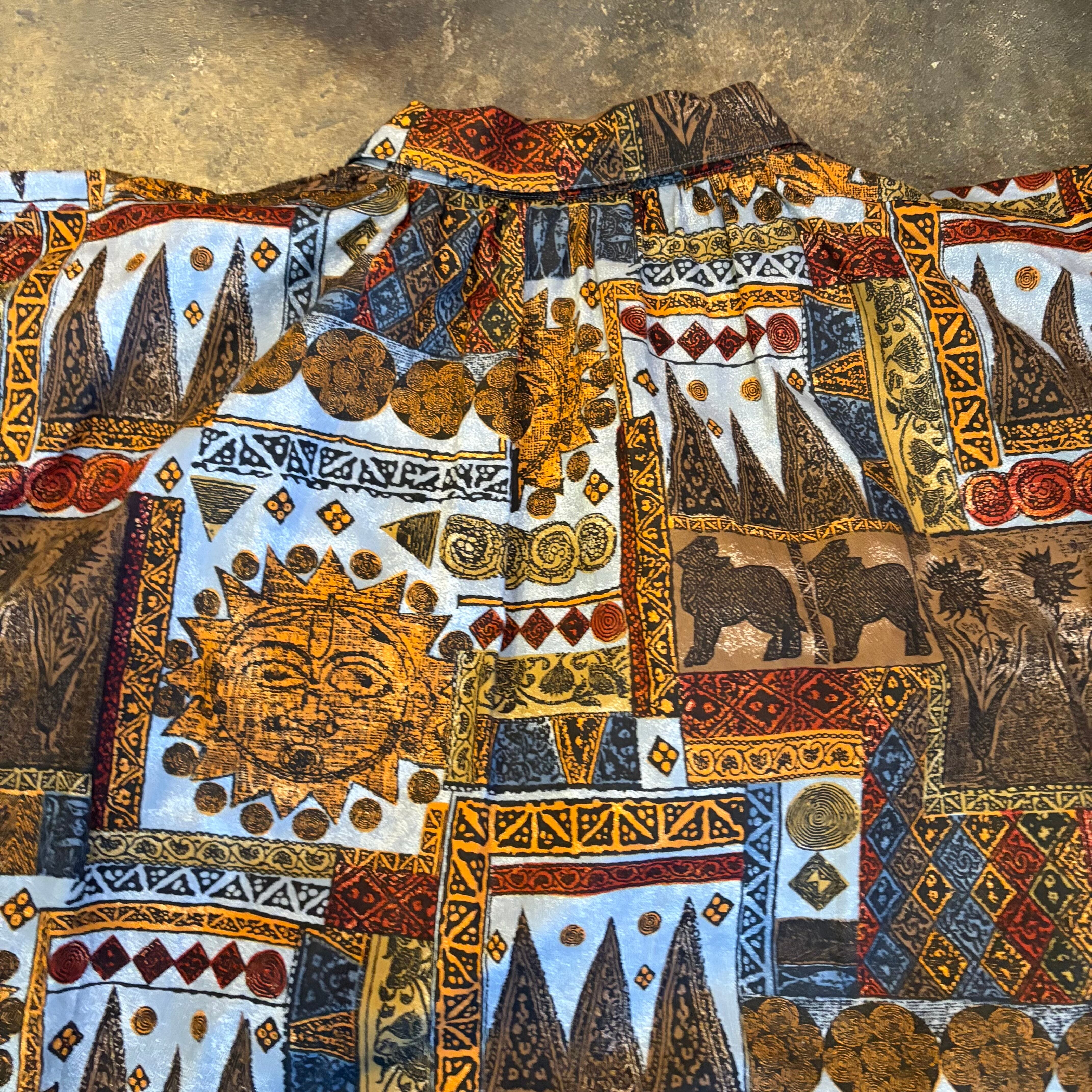エスニックなような壁画のようなエキゾチックな柄ががかわいいスモックタイプのチュニックです。