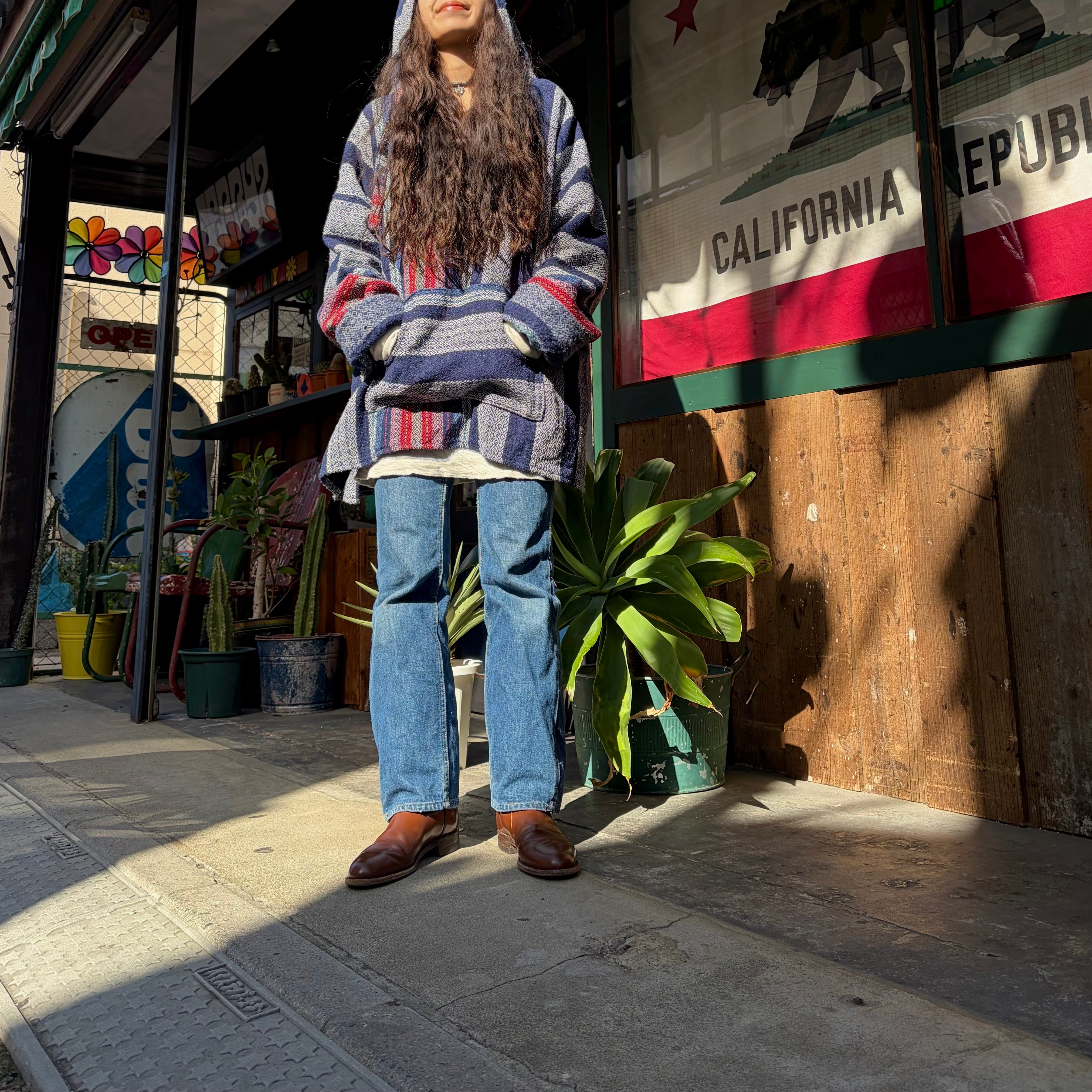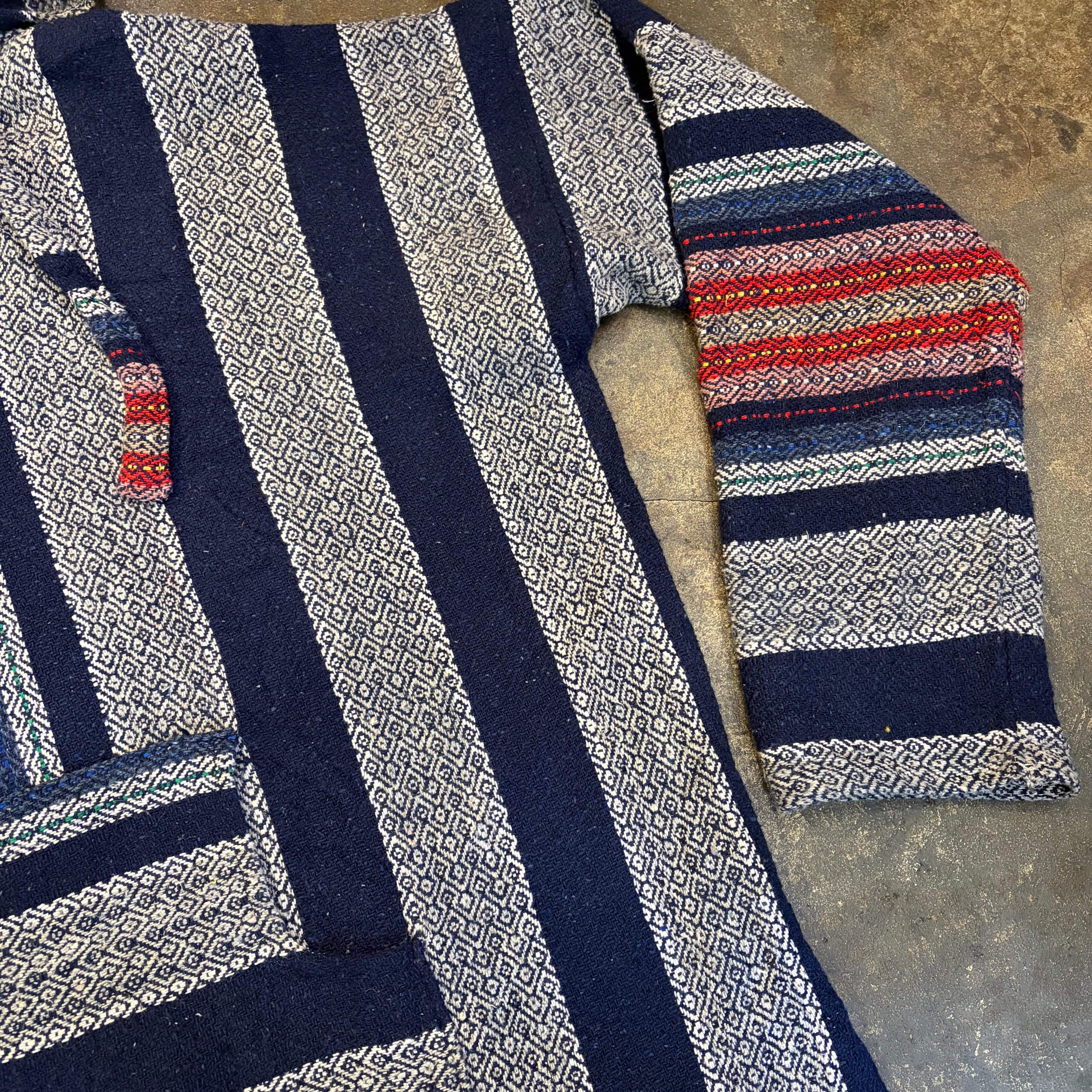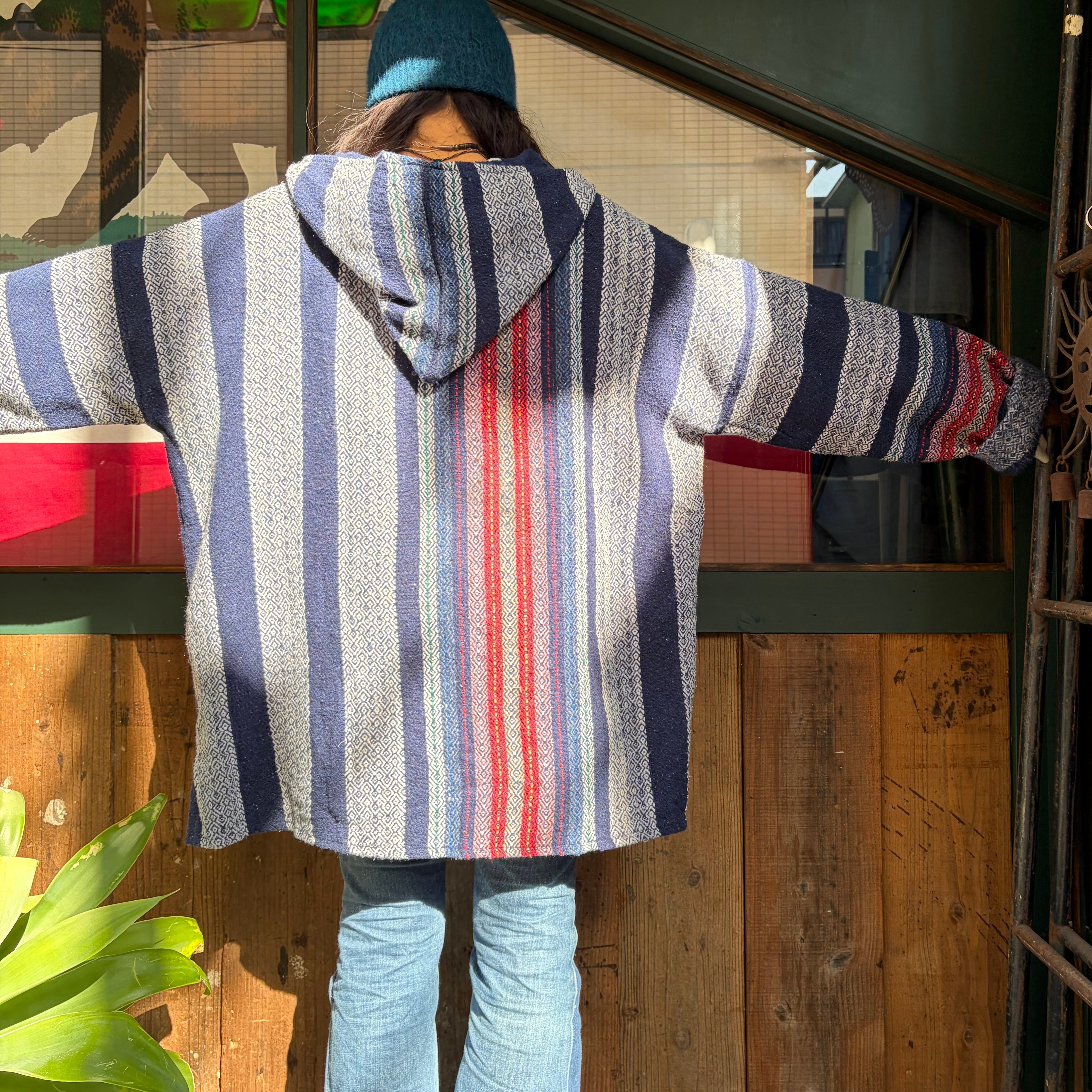 ネイビーベースに赤やピンクのストライプがかわいいメキシカンパーカーです。