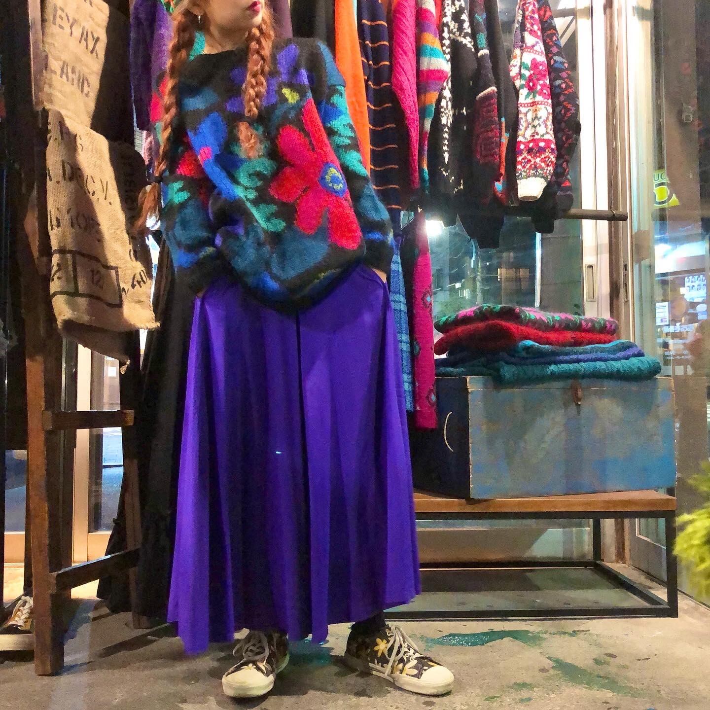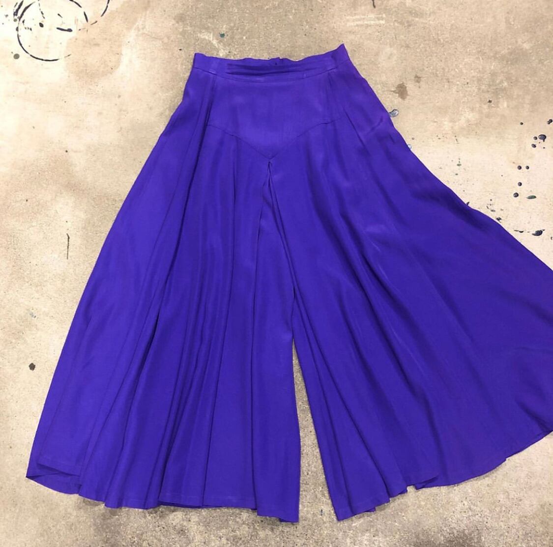 きれいなパープルが目を惹くパンツです。フレアのボリュームや落ち感が大人っぽい印象です。両サイドにポケットがあるのも嬉しいポイントです。