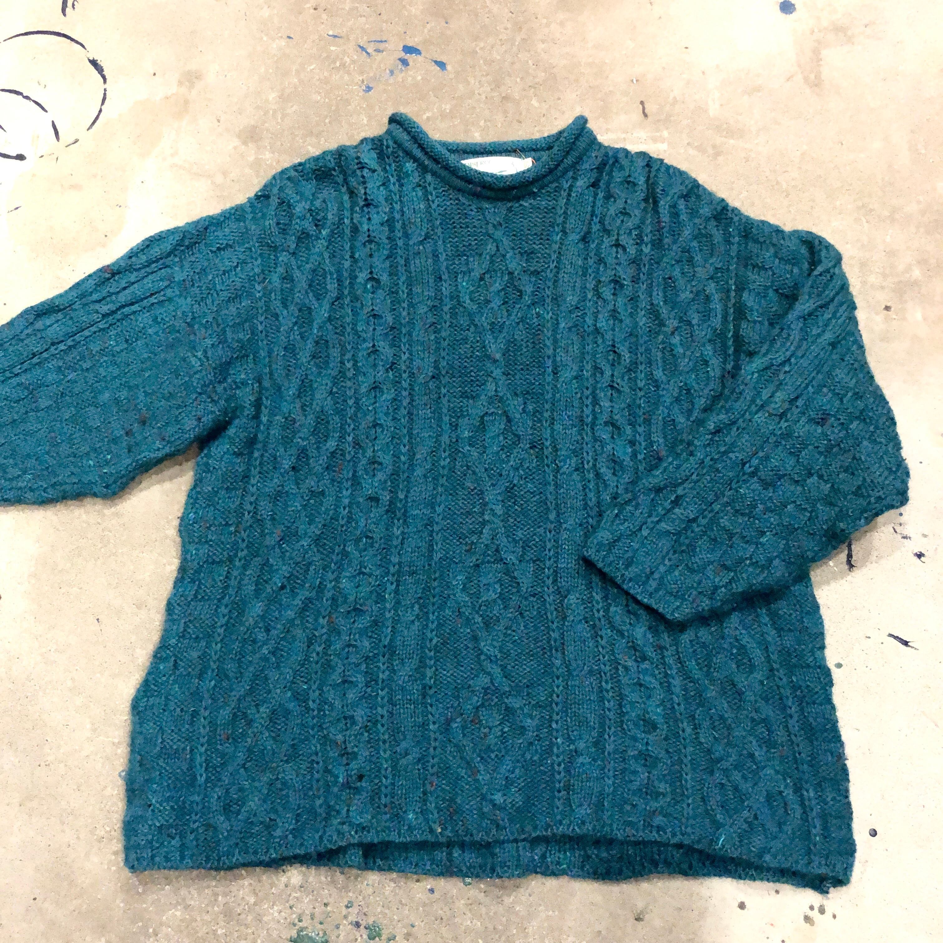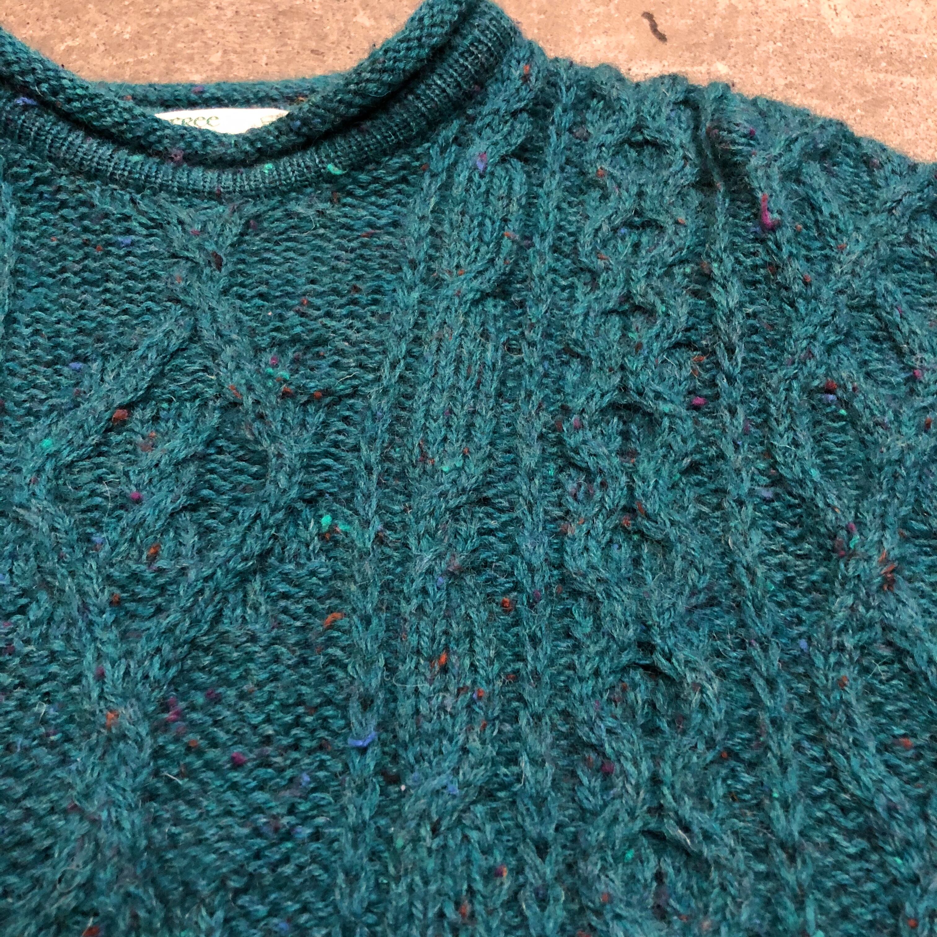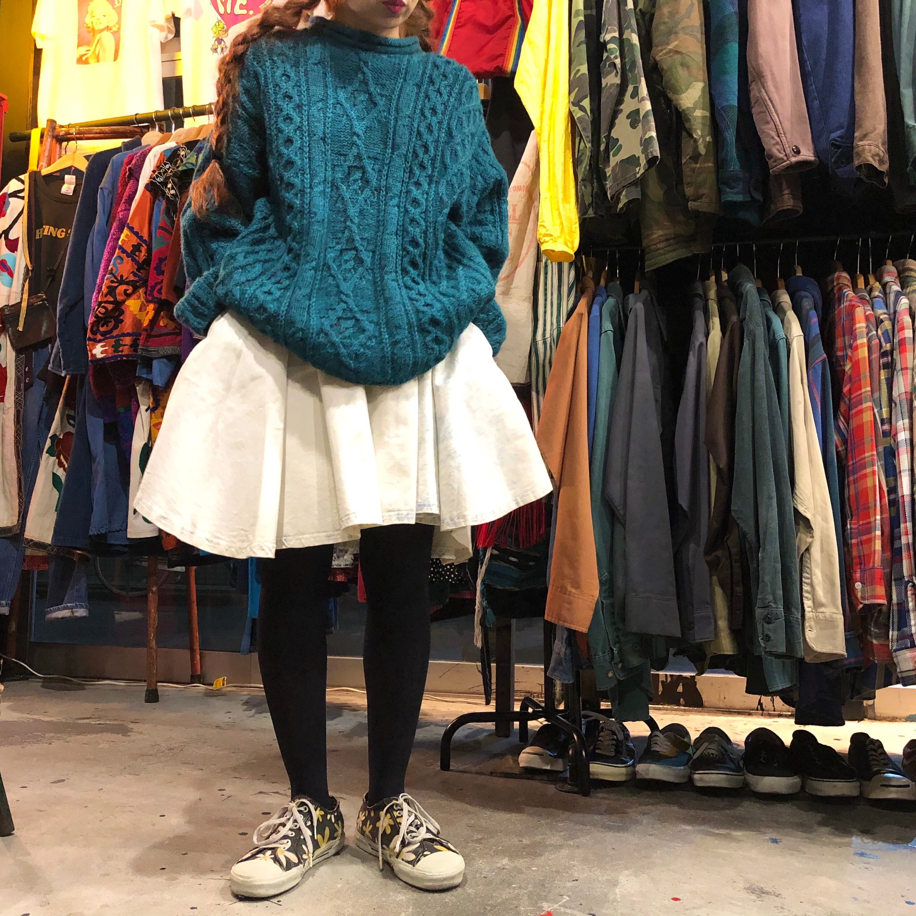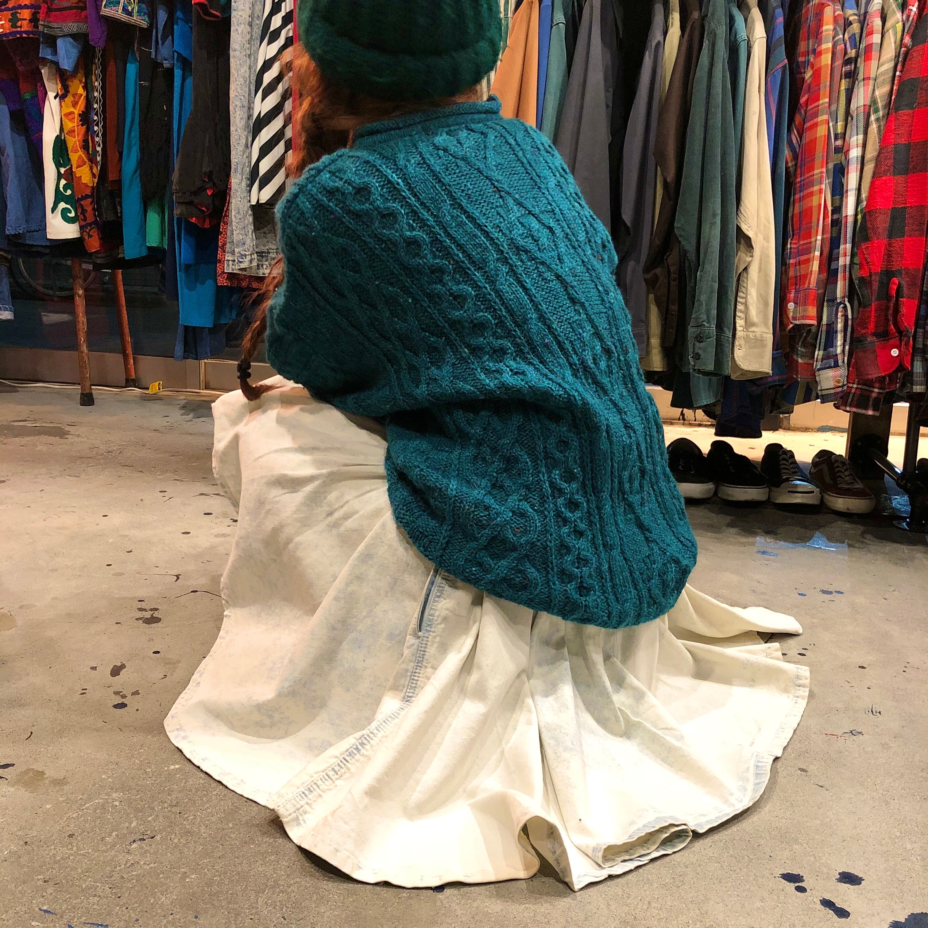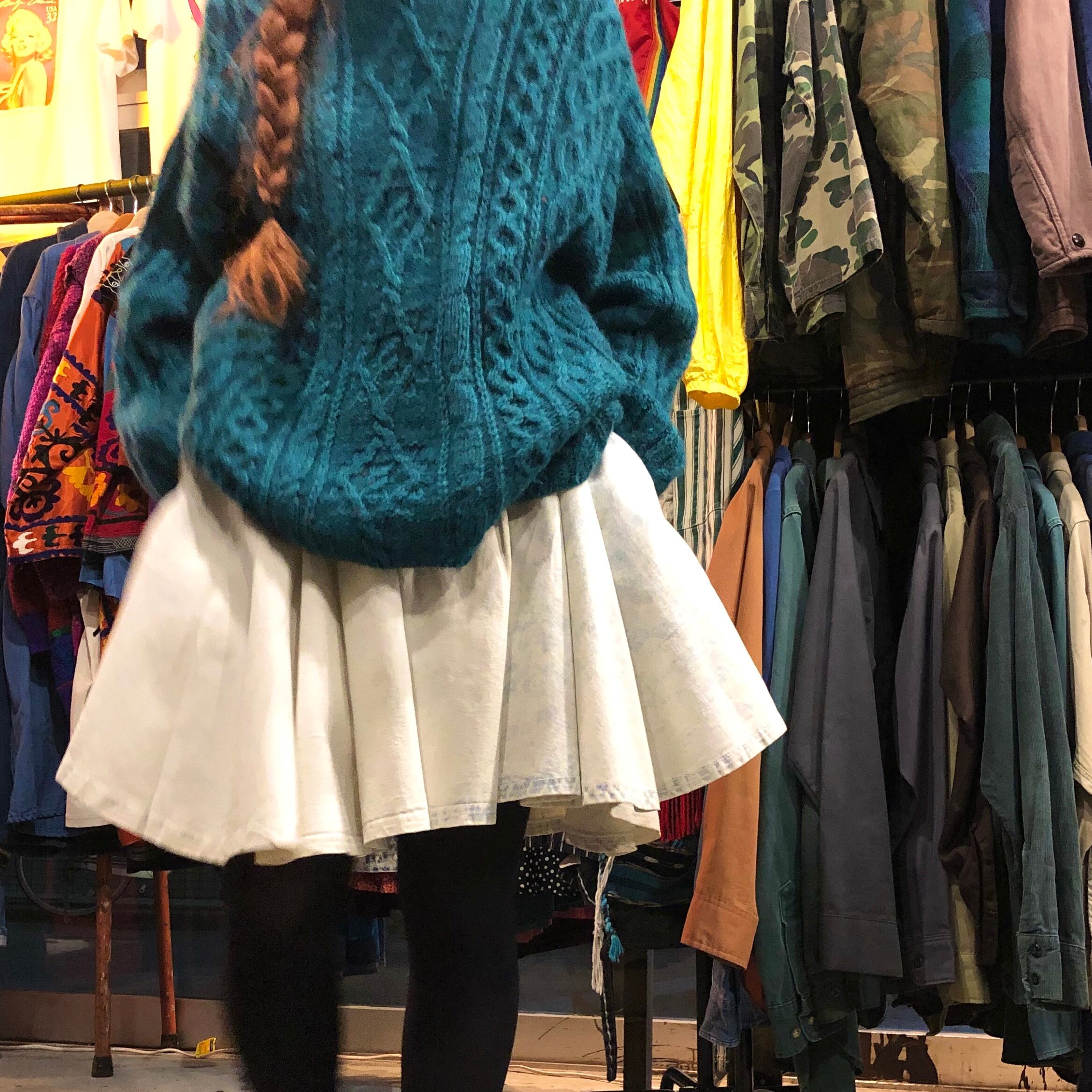 いろんな網模様と、ちょっと青みがかった良い色の緑が素敵です。若干裾が広がっているデザインになっており、ゆったり着ていただけると思います。