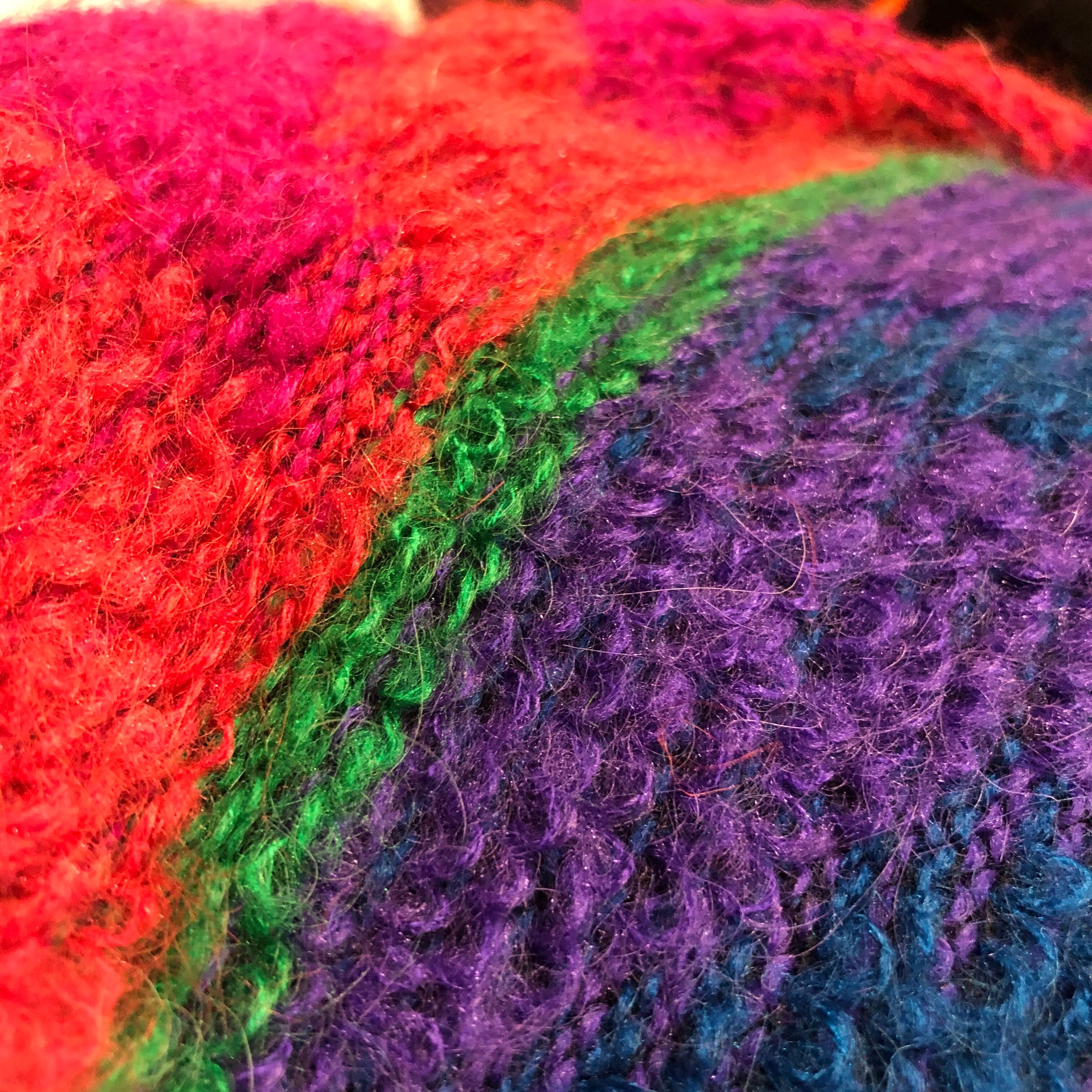 とにかく配色がかわいいです。毛糸の編み地もくるくるとなっていて少し立体的です。