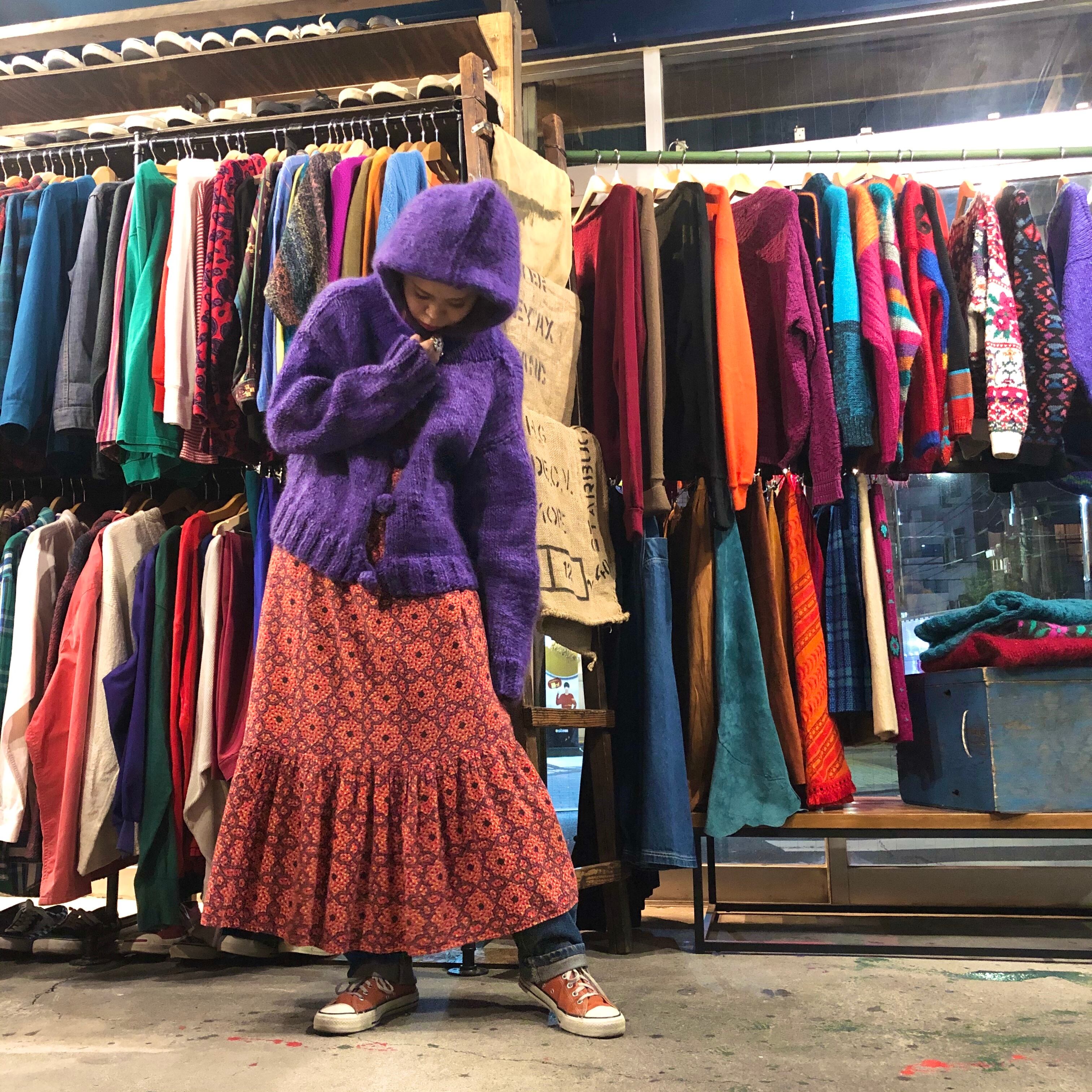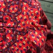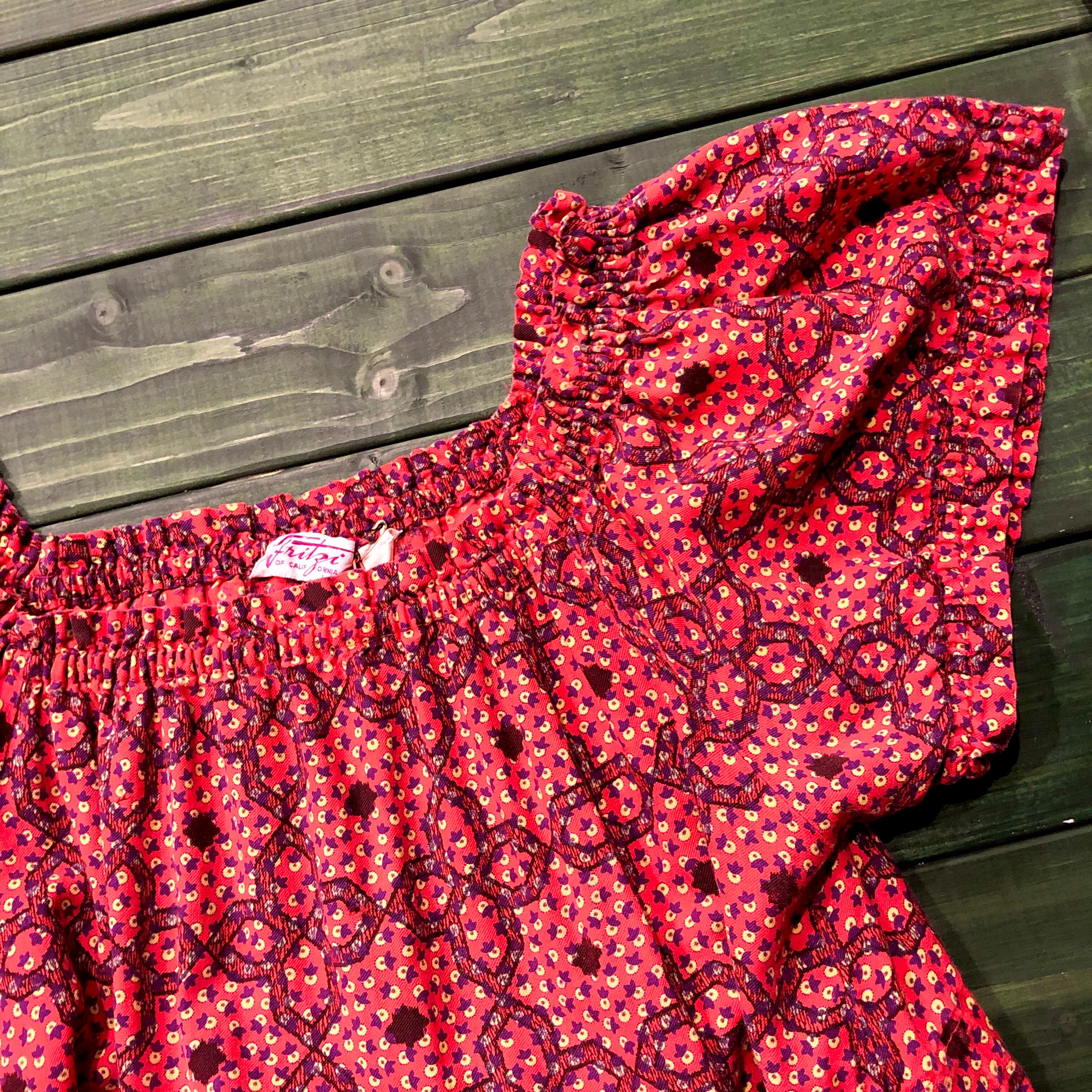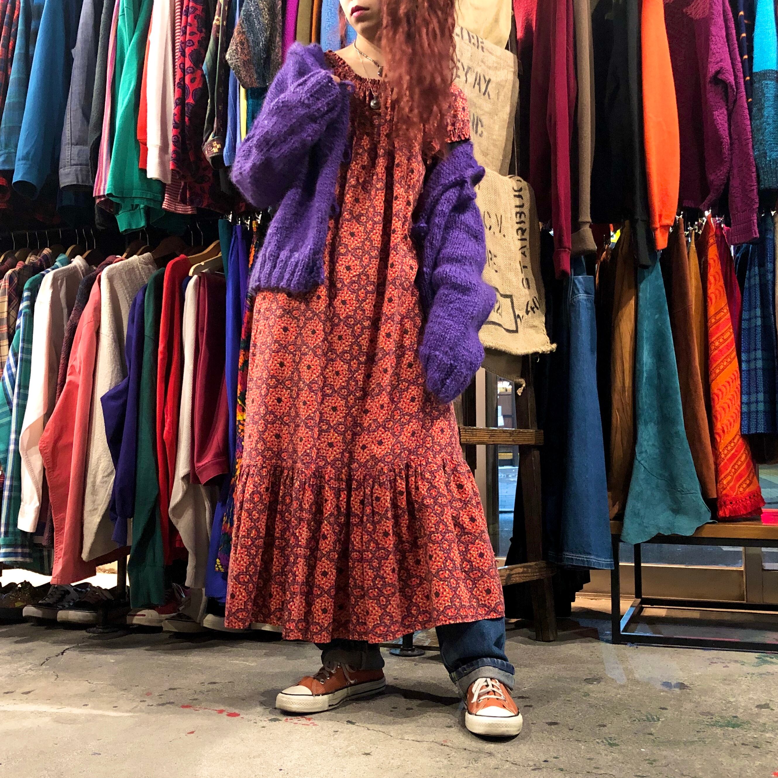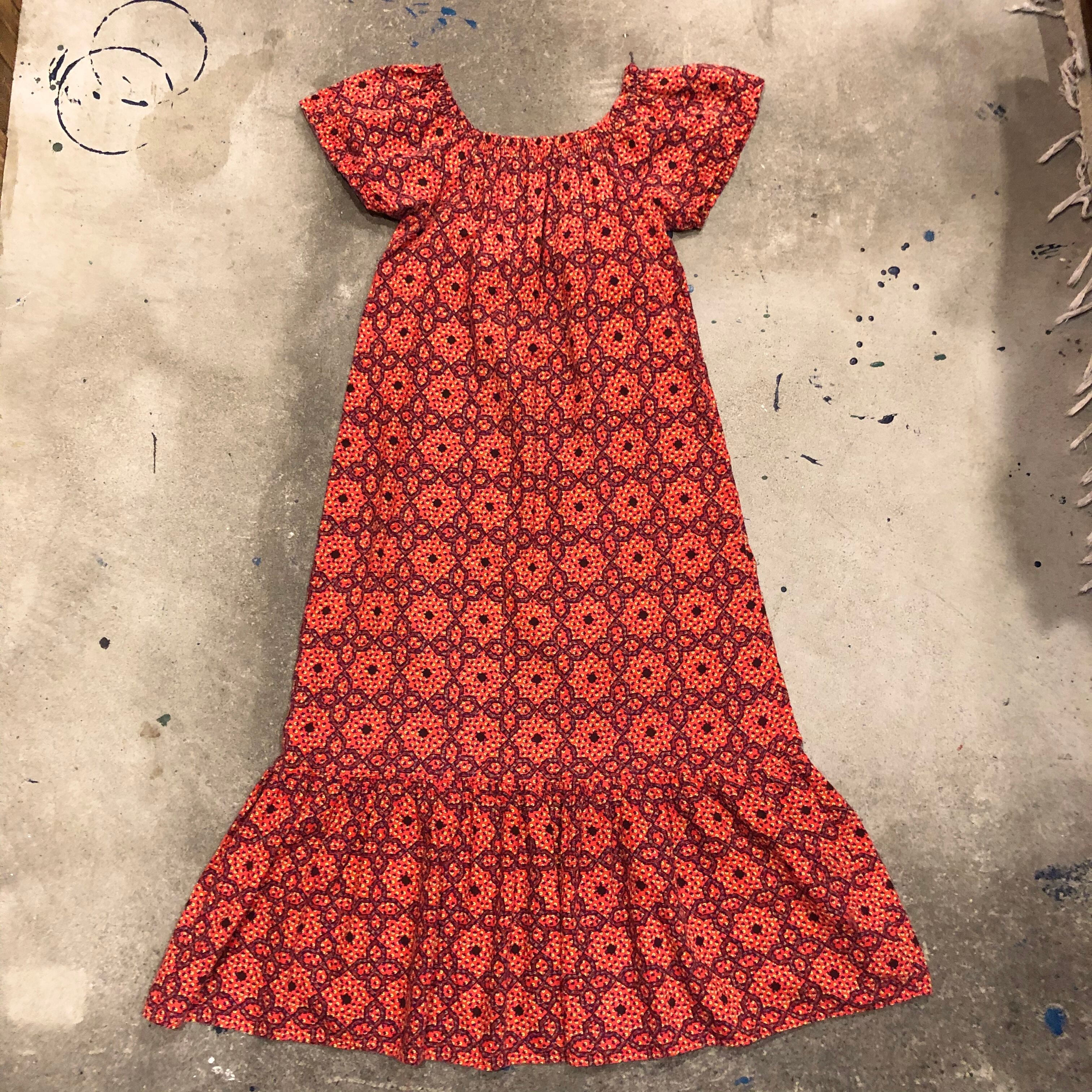 小花柄とタイルのような柄といい、余計なギャザーのないストンと女性らしい形といい、とてもかわいいワンピースです。夏に一枚で着るのも楽しみな1着です。