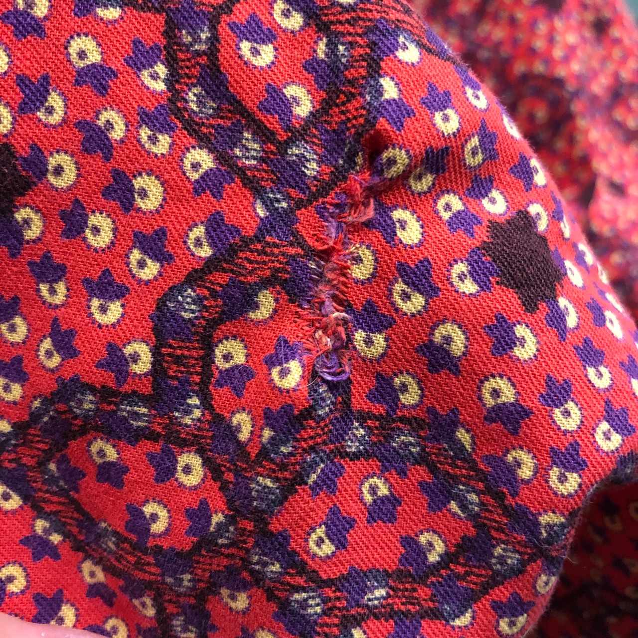 写真ではわかりにくいかもしれませんが、生地が全体的に薄くなっており、リペア、ダメージなど数カ所あります。