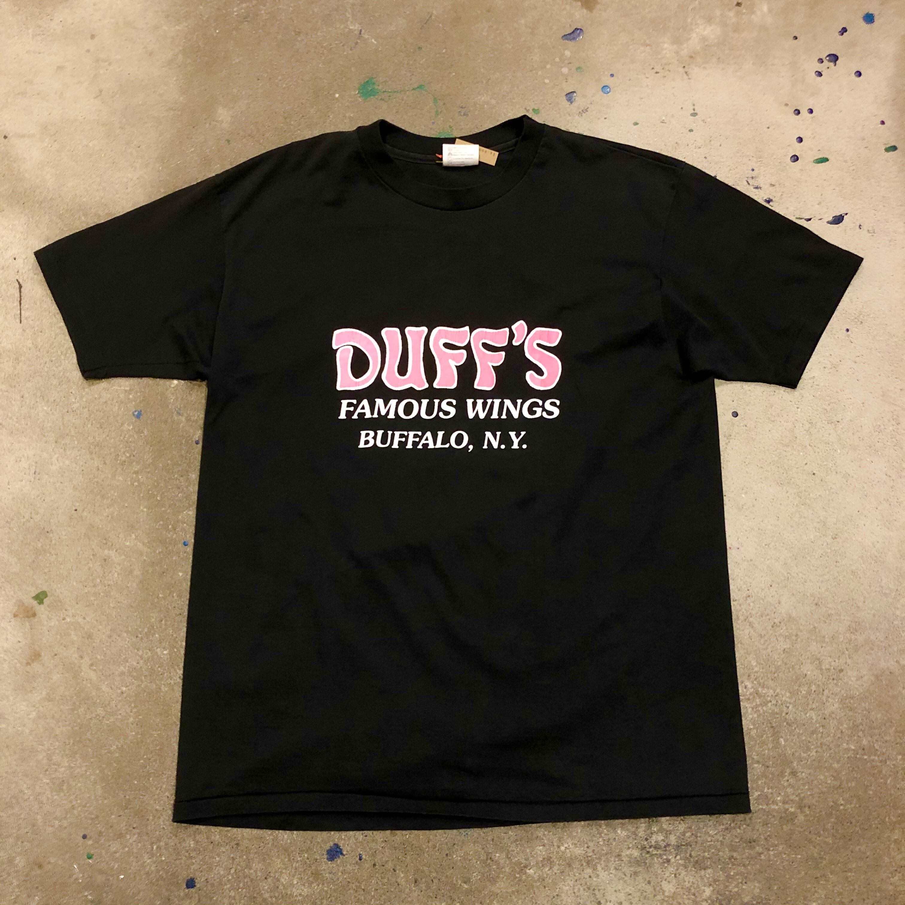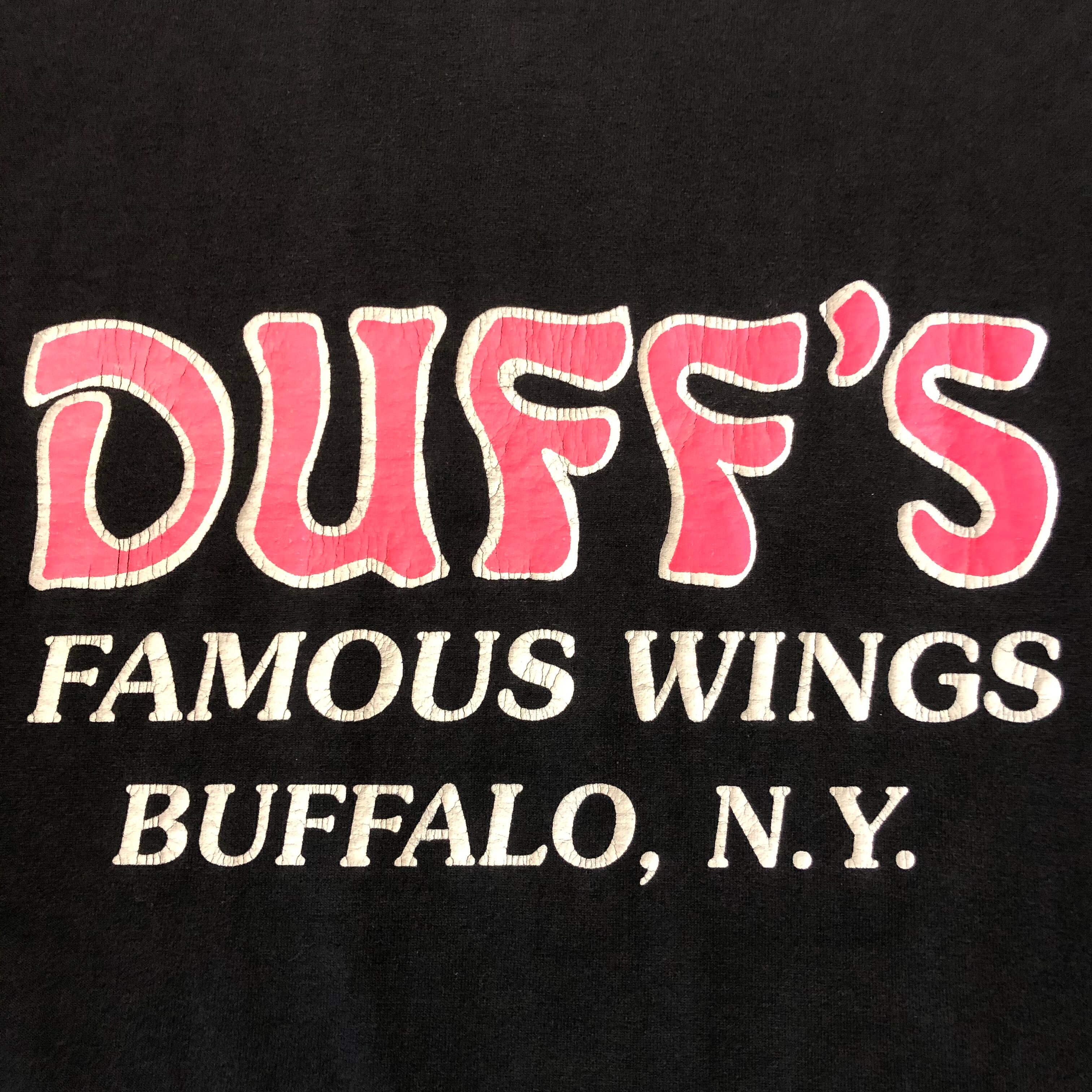アメリカで人気のバッファローウィングが有名なお店"DUFF'S famous wings" のオリジナルTシャツです。プリントのカラーが良い感じです。