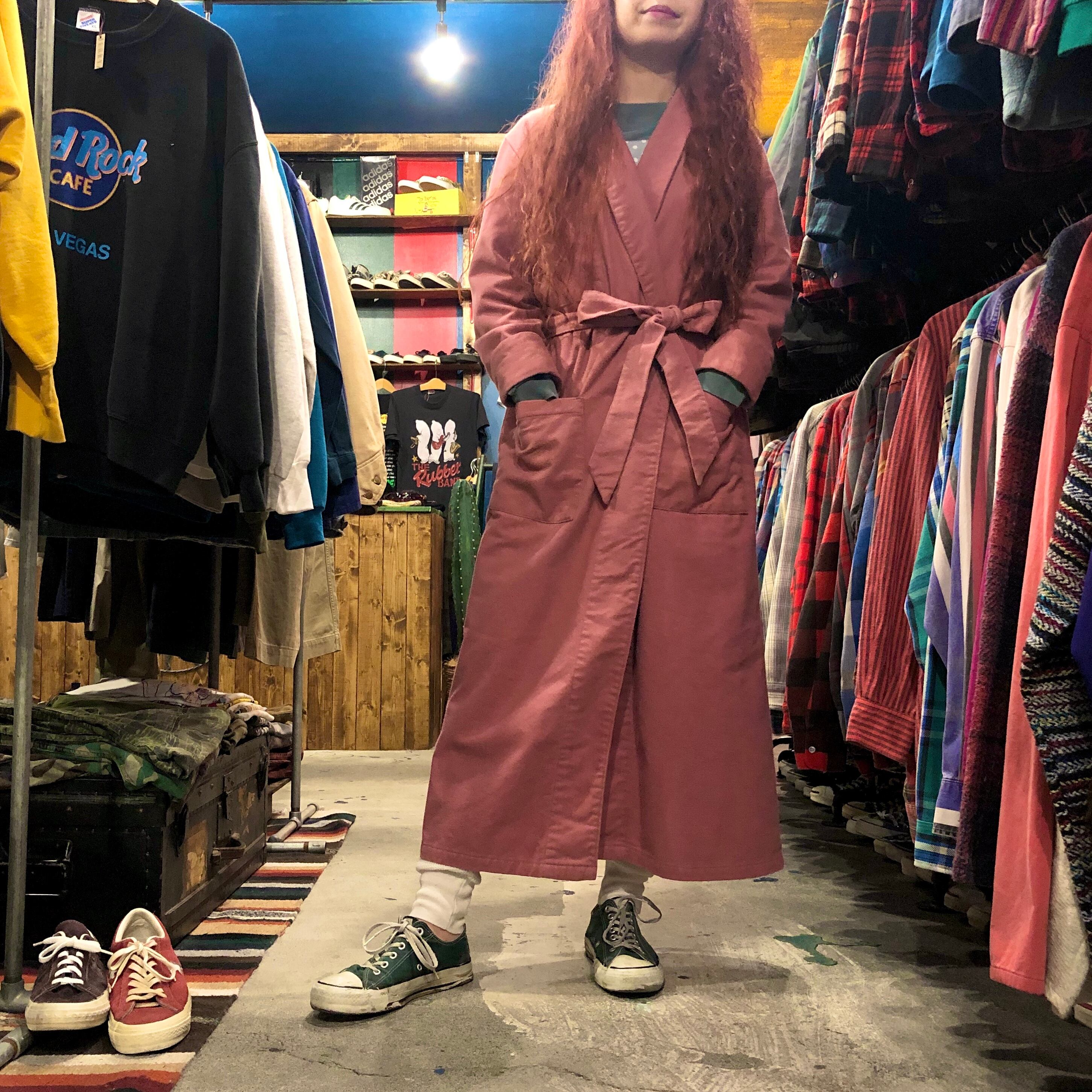 80年代USA製の優しいピンク色がかわいいコットンガウンです。サイズも小さめできれいに着られておすすめです。春はTシャツにデニムでガウンを羽織れば良い感じです!