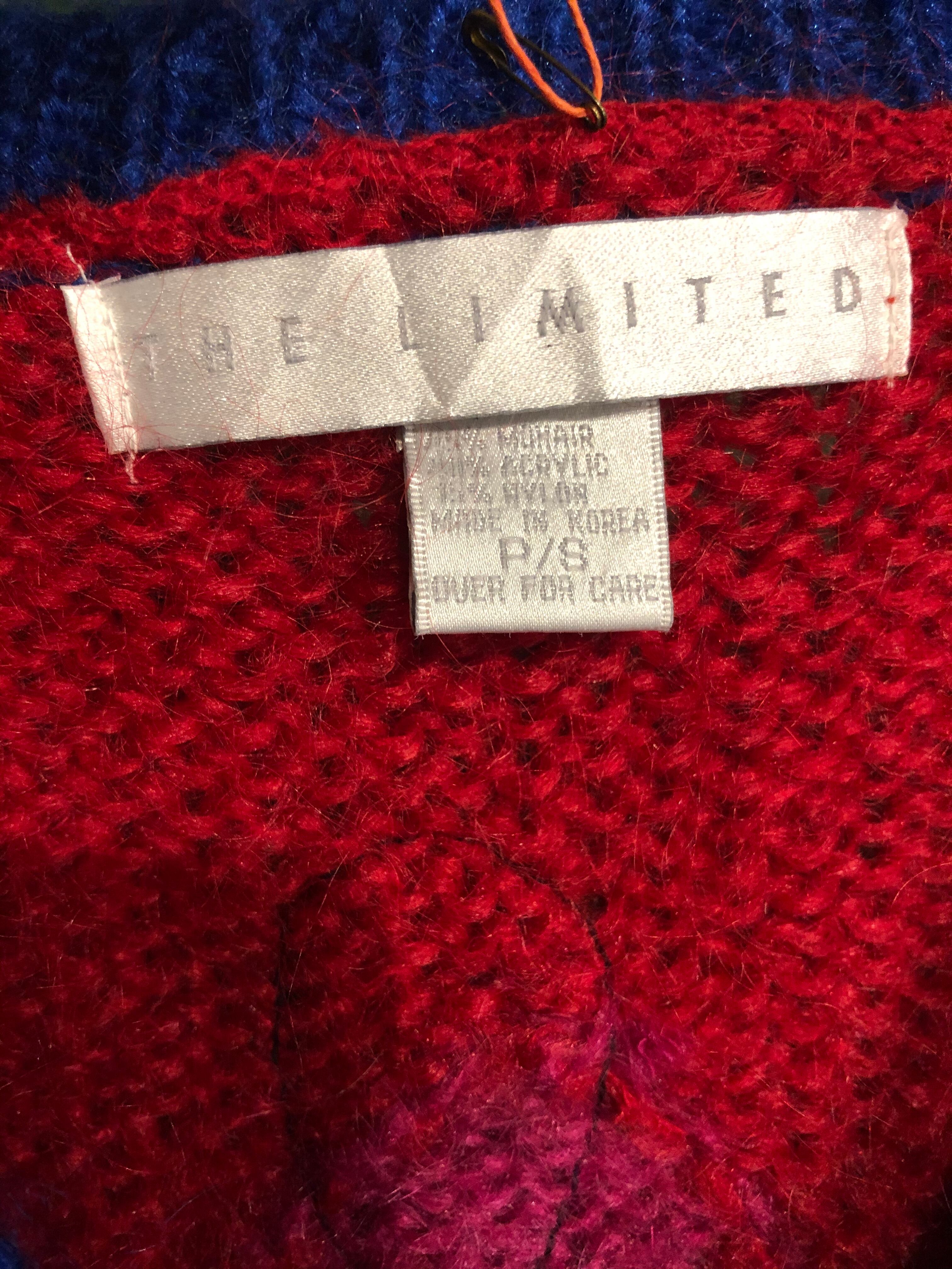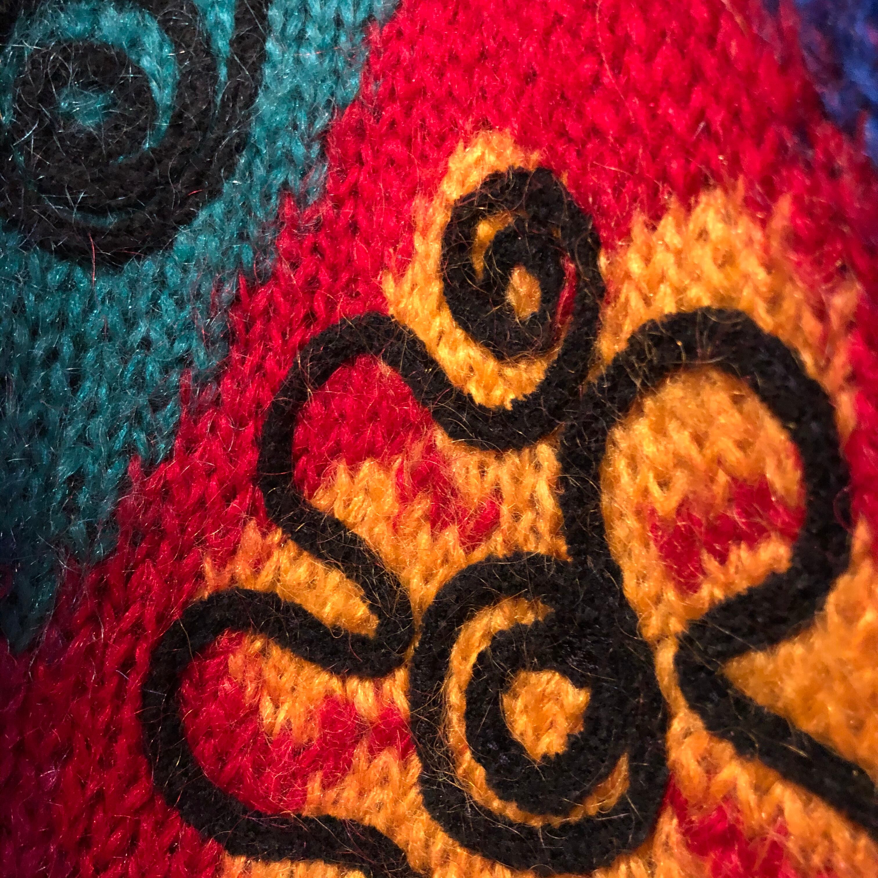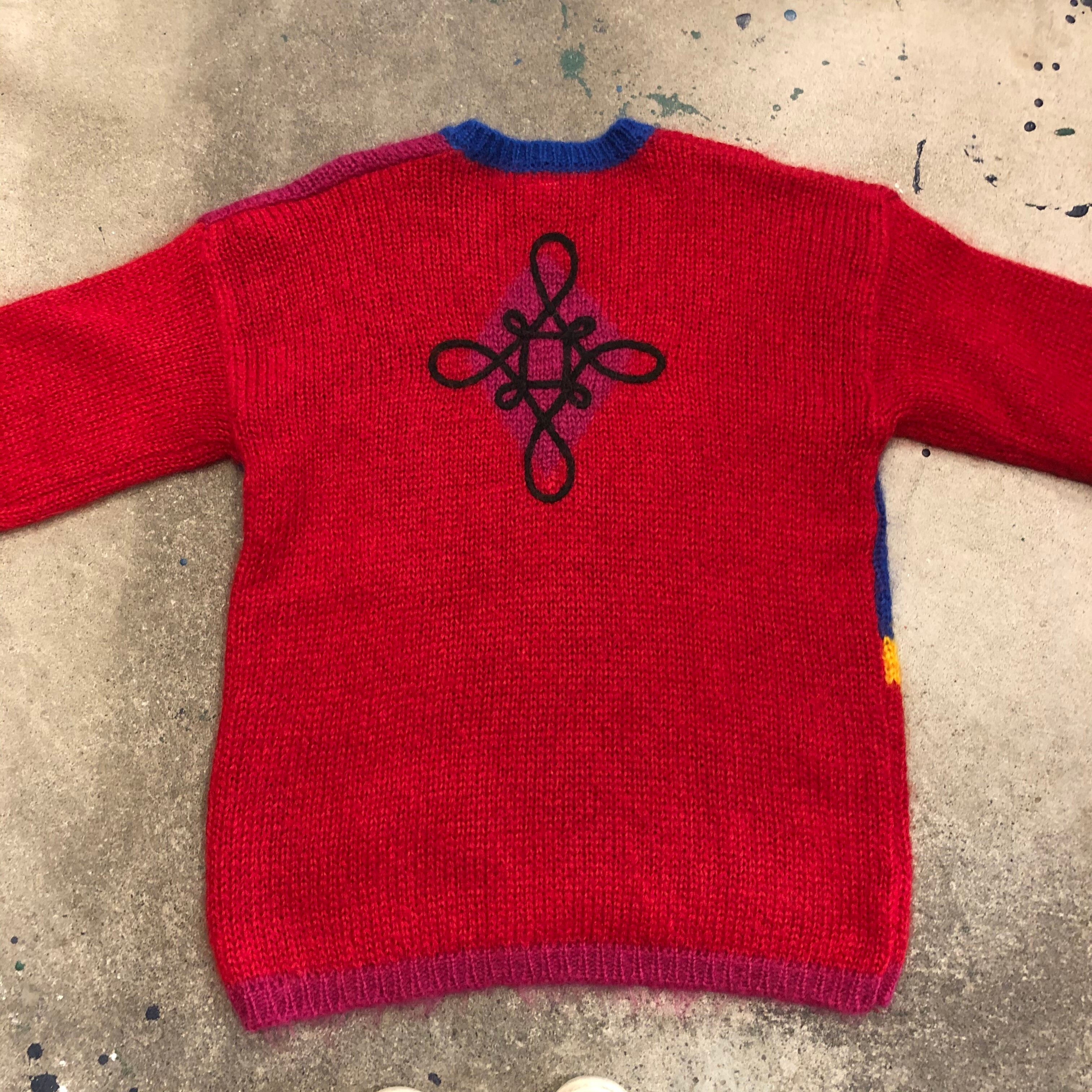 かなり大胆なデザインが個性的なニットです。黒のコード刺繍が不思議でかわいいです。
