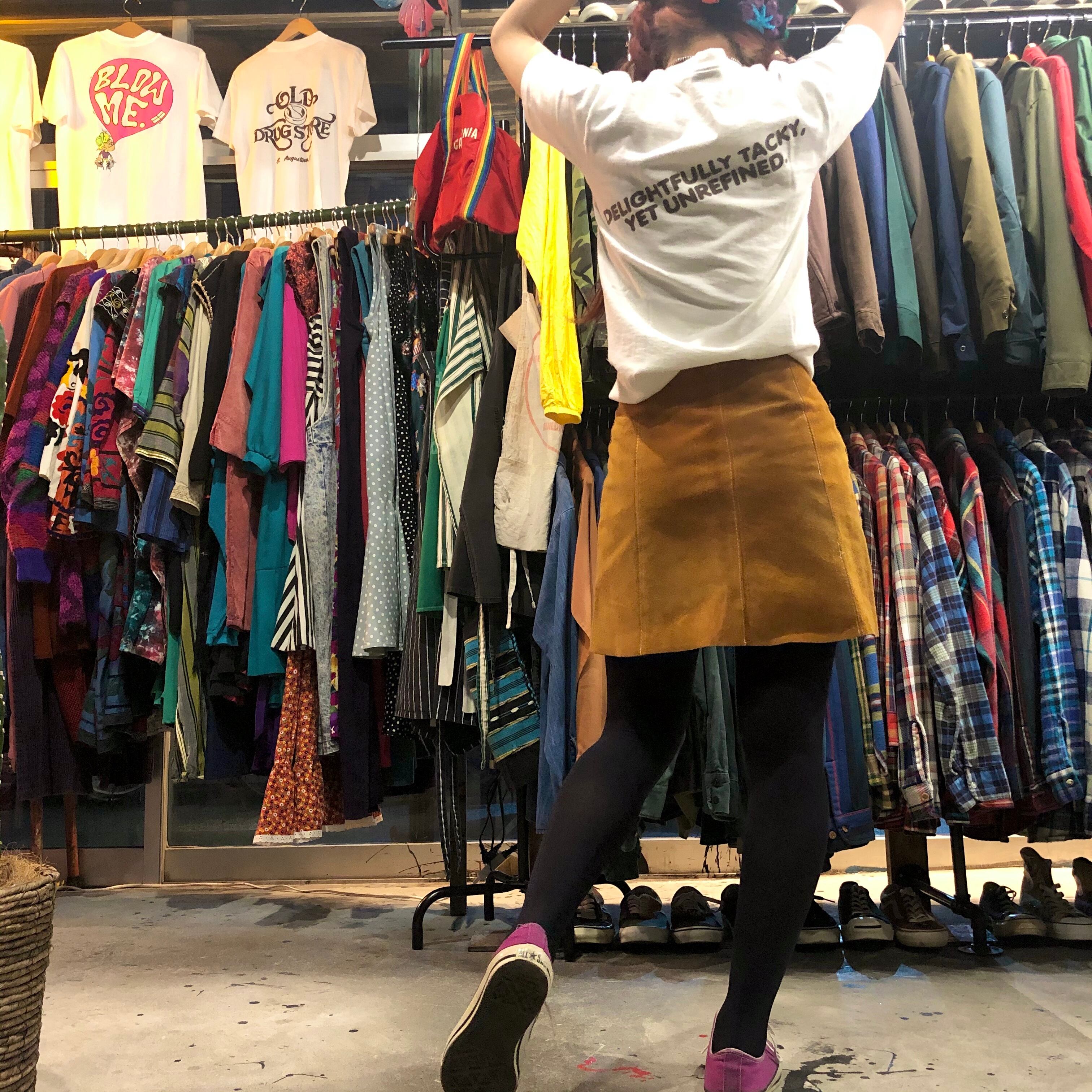 タグや裏地も付いておらず、やや簡易的な作りなのでハンドメイドのものかもしれません。短すぎず良い丈で形もきれいです。