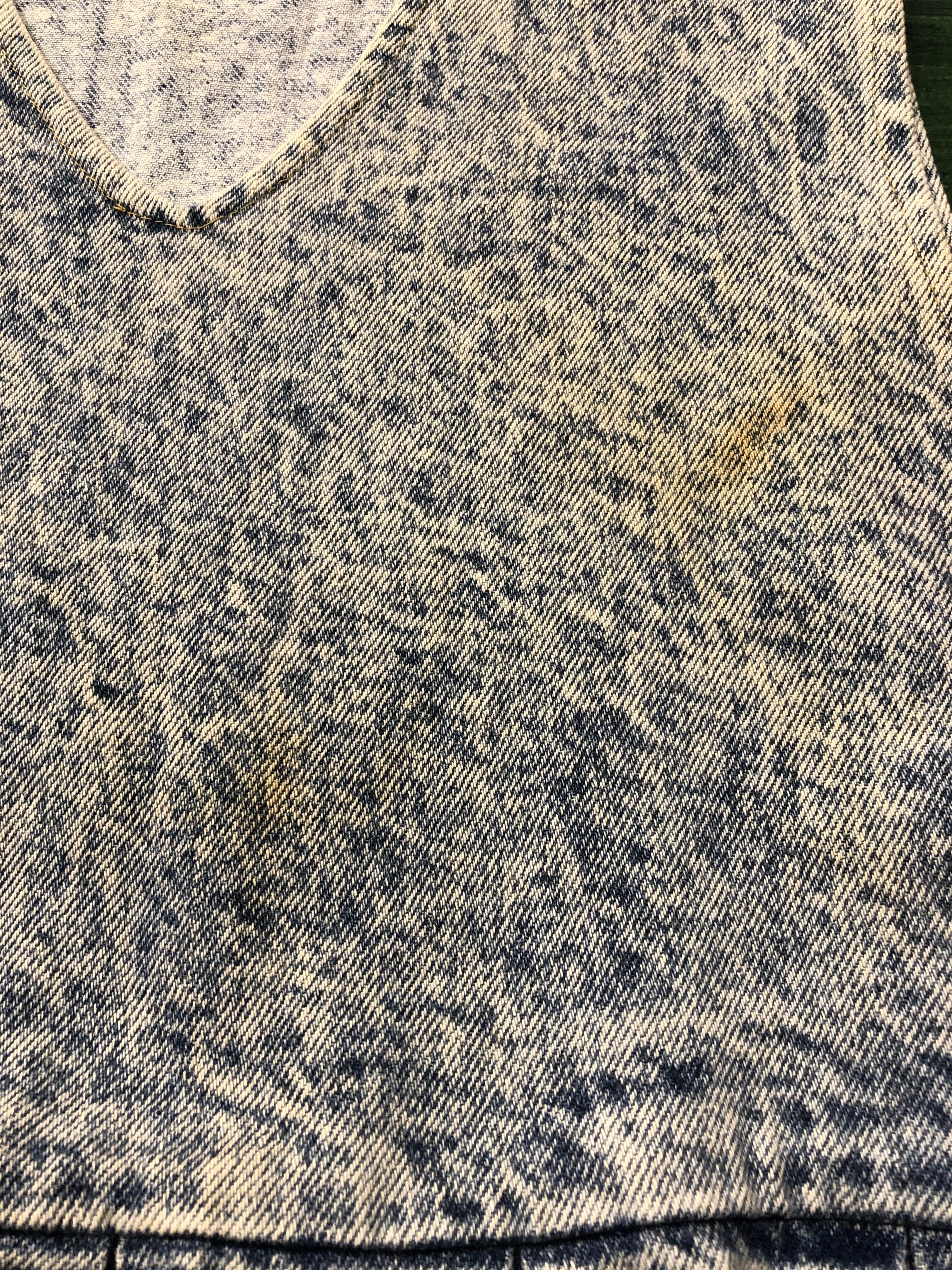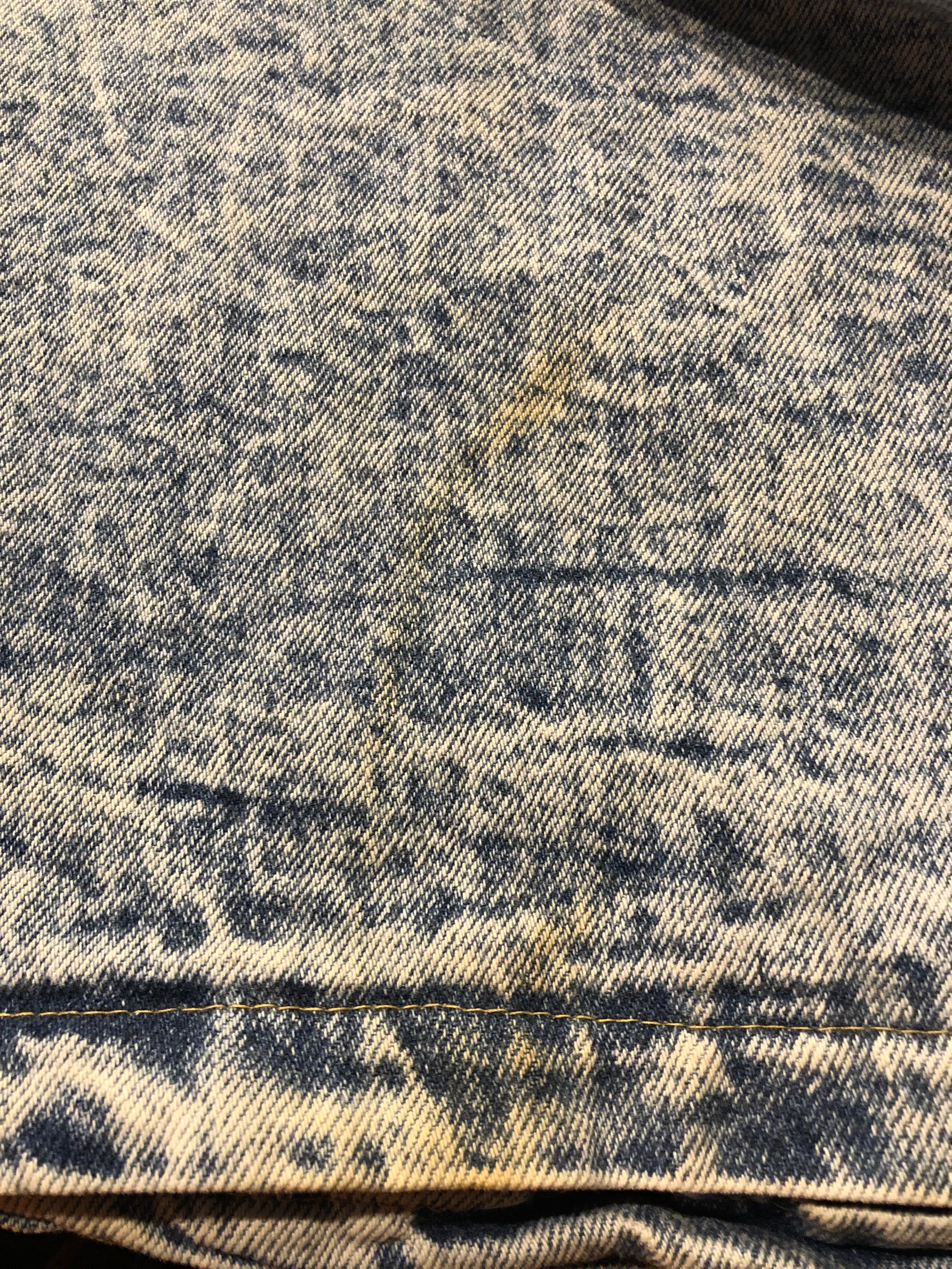 前見頃部分に大きめの黄色い染みがあり、同じように黄ばんでいるところが数カ所あります。その他にダメージはありません。 古着にご理解のある方のご購入をお願いいたします。