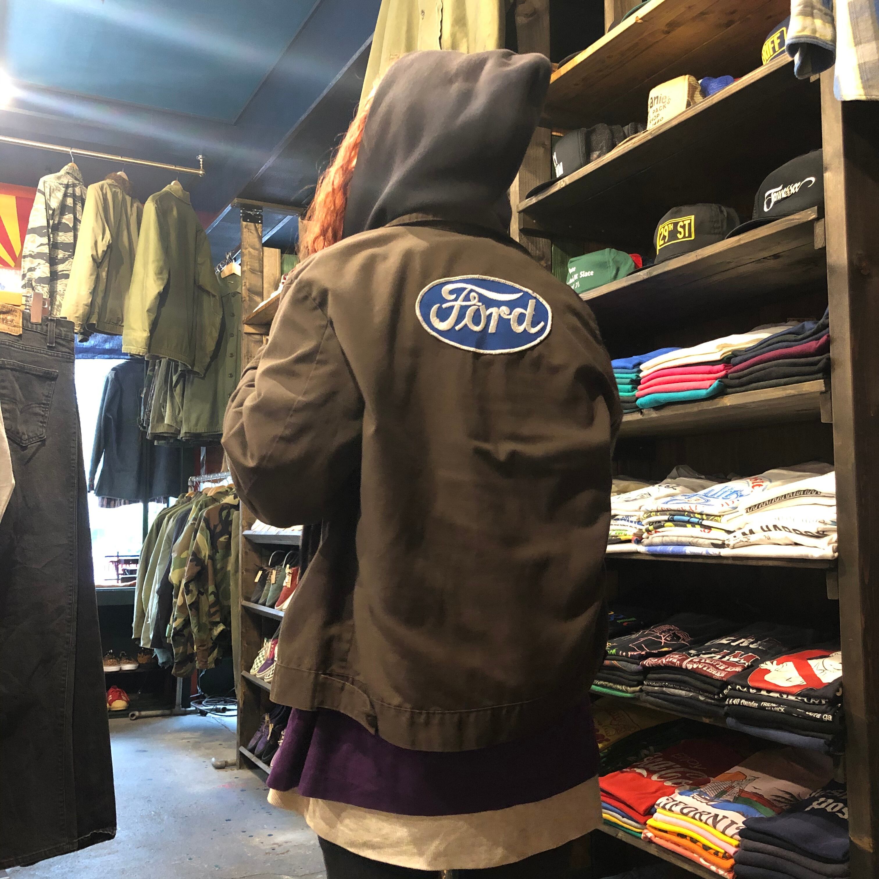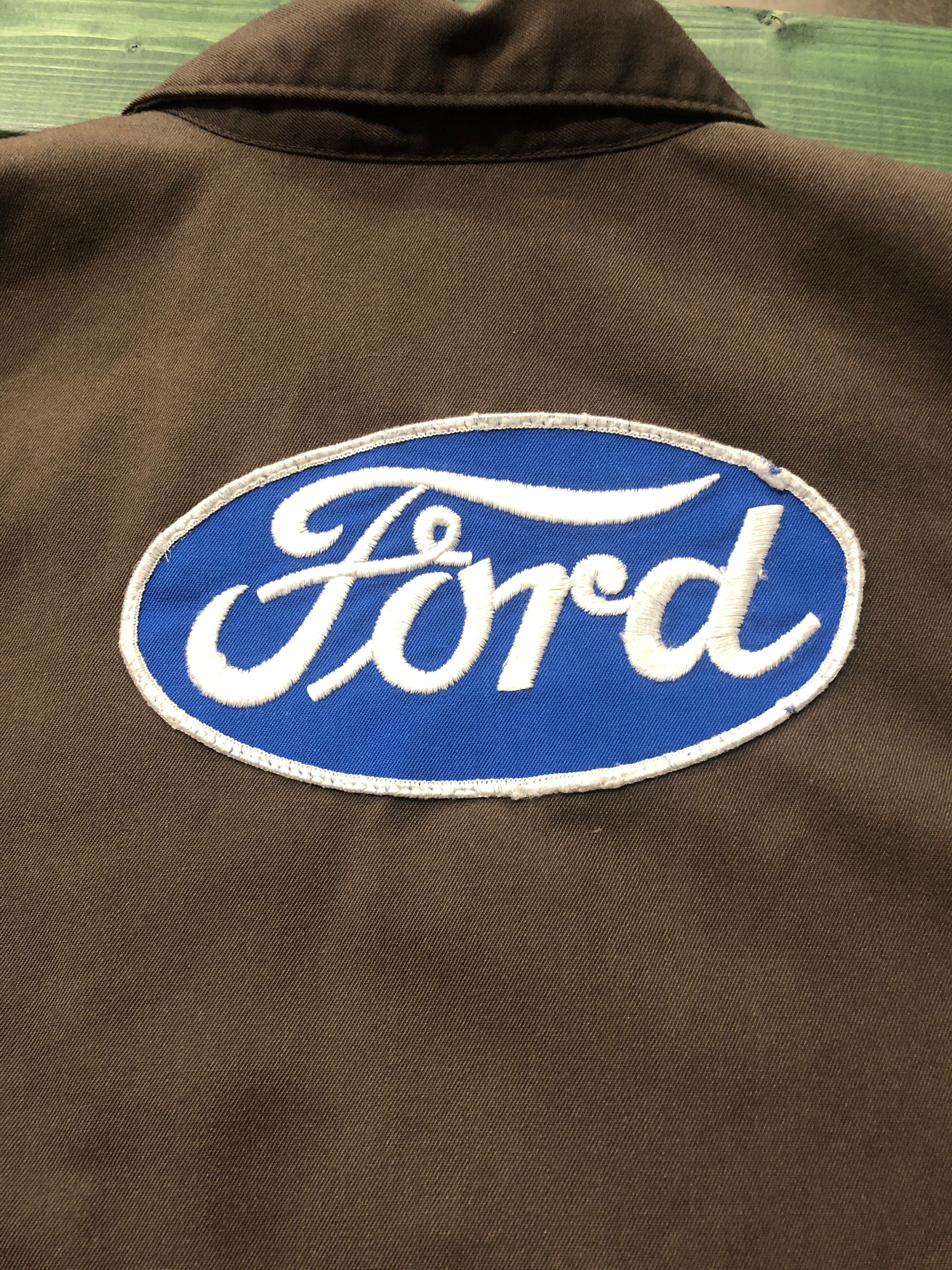 アメリカ製レッドキャップのワークジャケットです。背中にフォードのワッペンが縫い付けてありますが若干ズレています。優しい茶色とシンプルな作りが合わせやすいと思います。女性にもおすすめ!