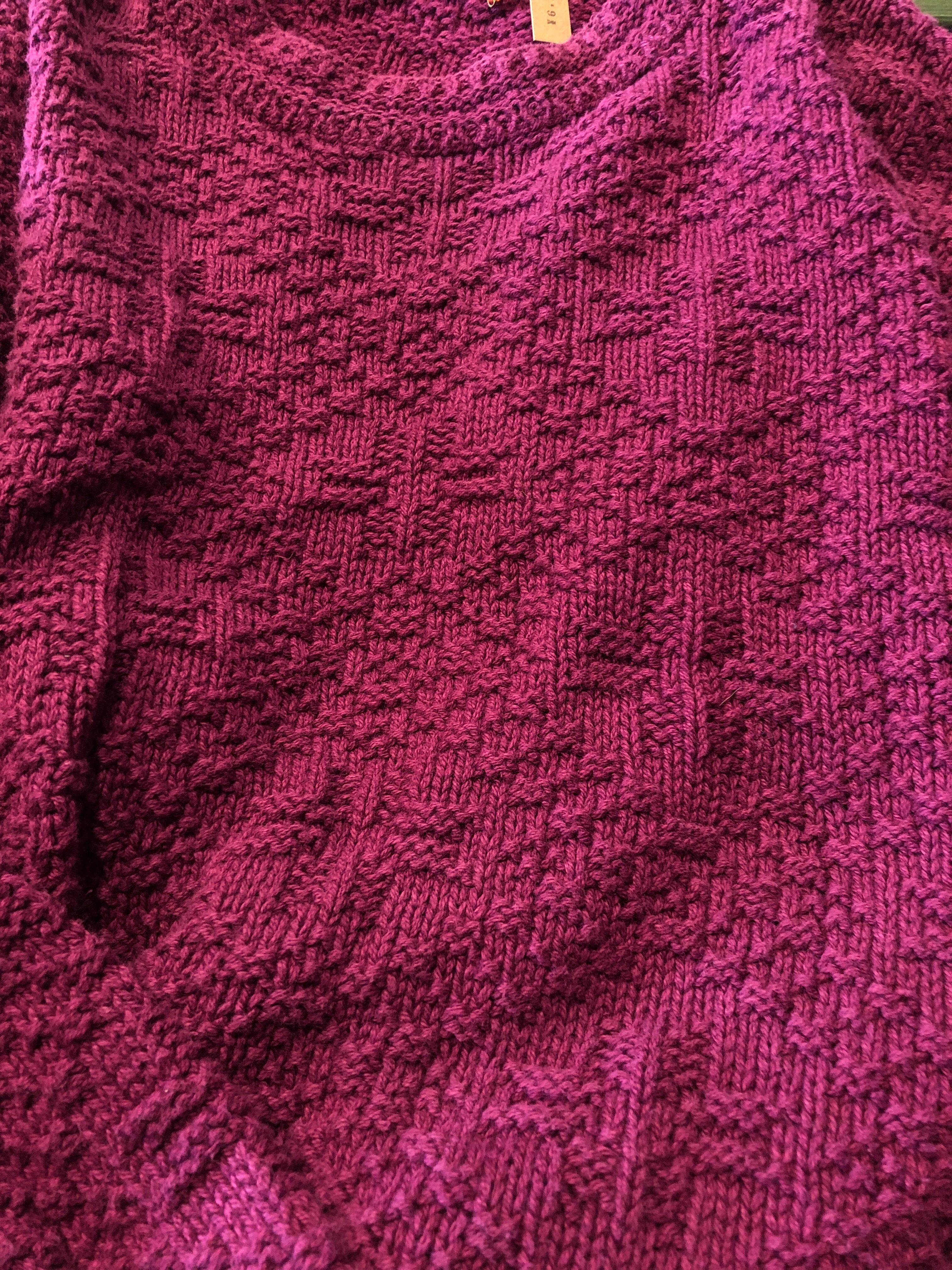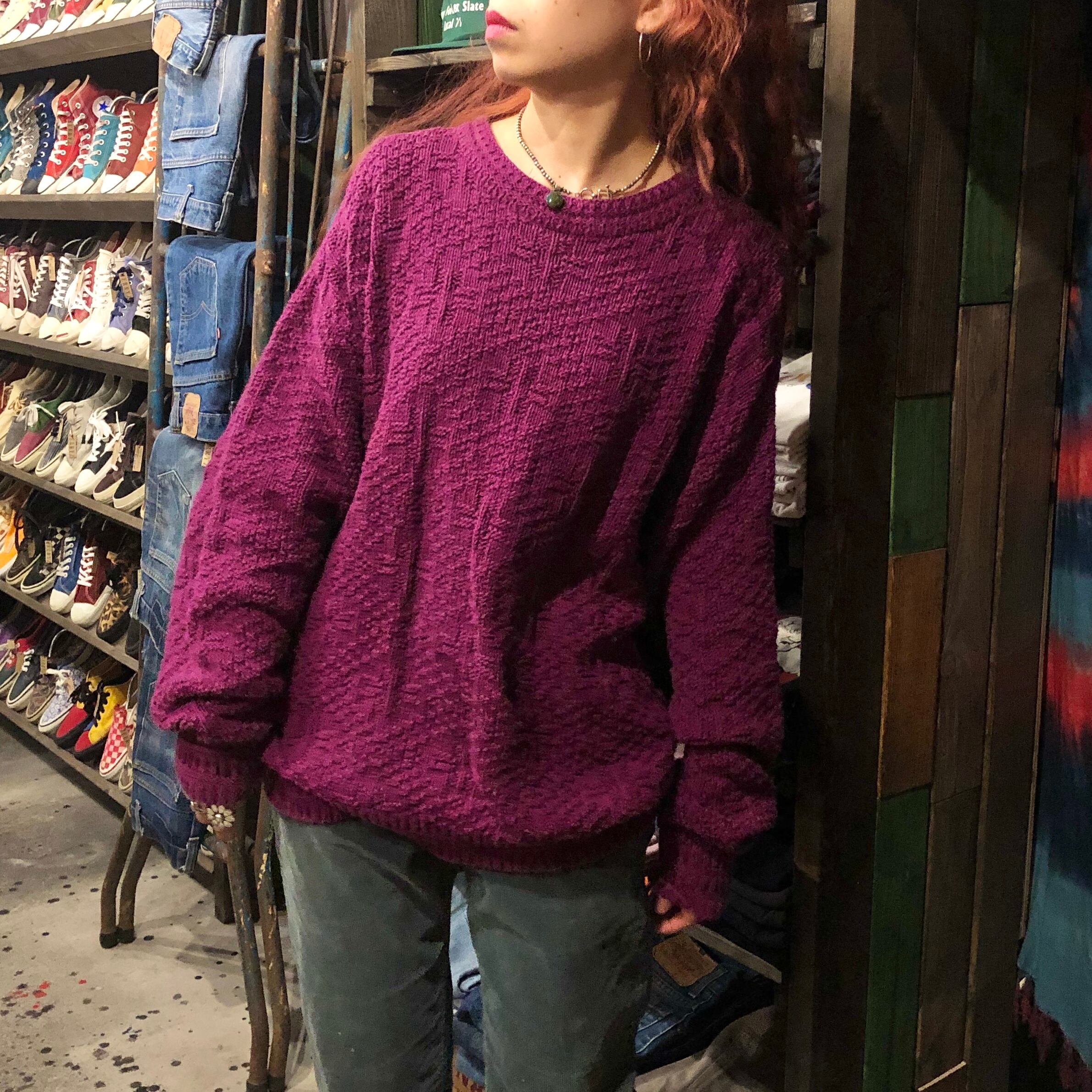 アメリカ製のコットンニットです。鮮やかな紫一色が素敵です。網模様は独特な雰囲気でシンプルすぎずに良い感じです。