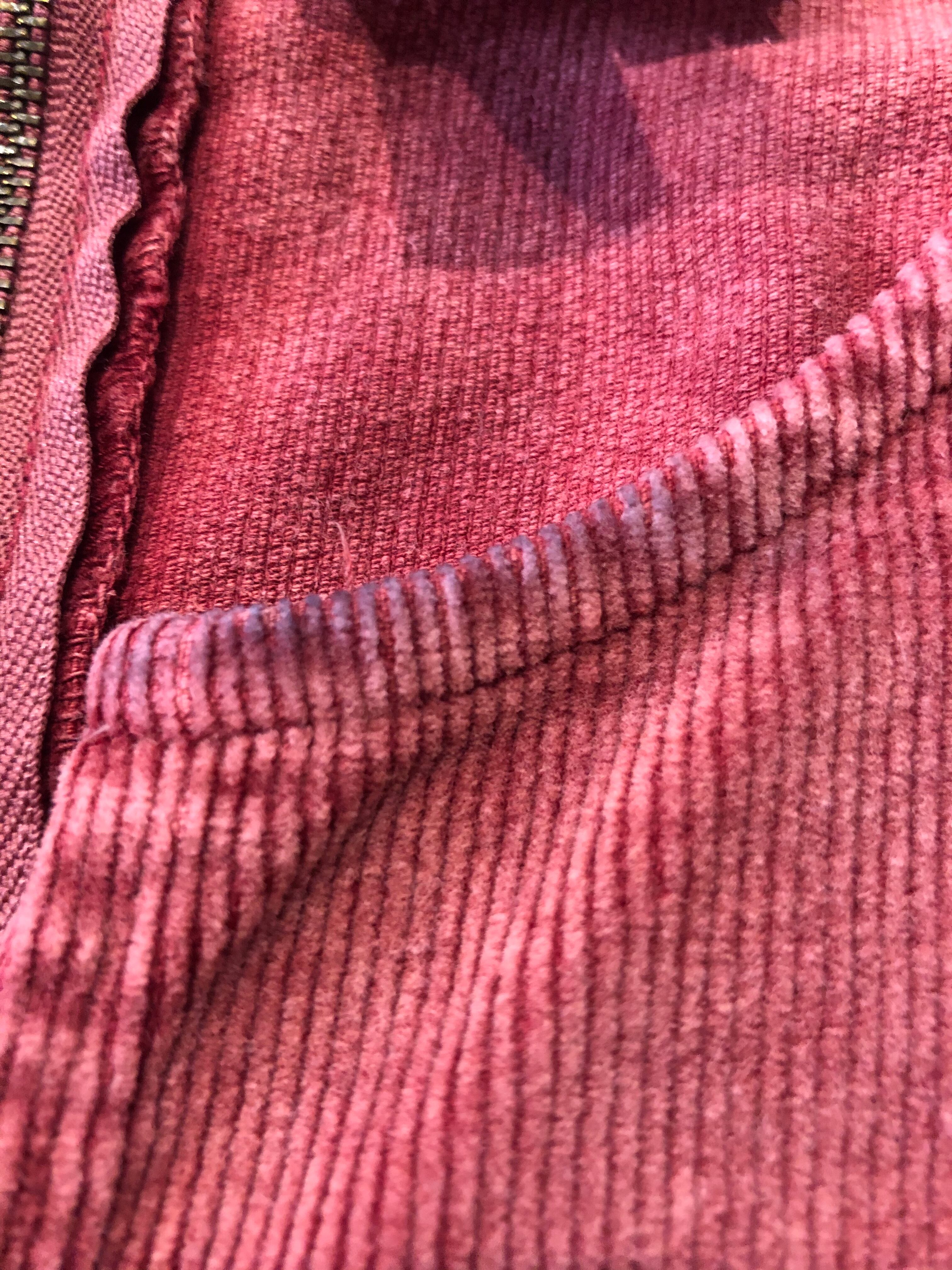 黒っぽいシミが数カ所あります。コーデュロイなので光の加減によっては日焼けが目立つ部分もあります。