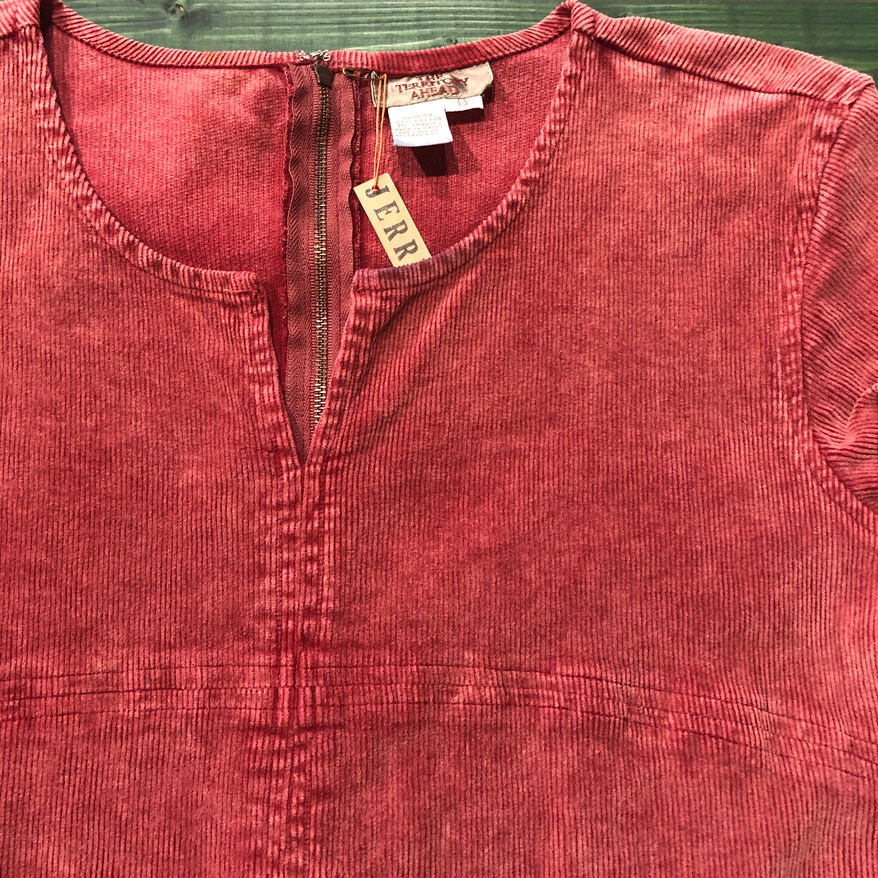 甘すぎない、やれた感じのピンク色が良いです。袖が少し短めなのでインナーをチラ見せさせたり、手首をスッキリ出してもかわいいですね!胸元のあき具合もちょうど良く大人っぽい感じです。