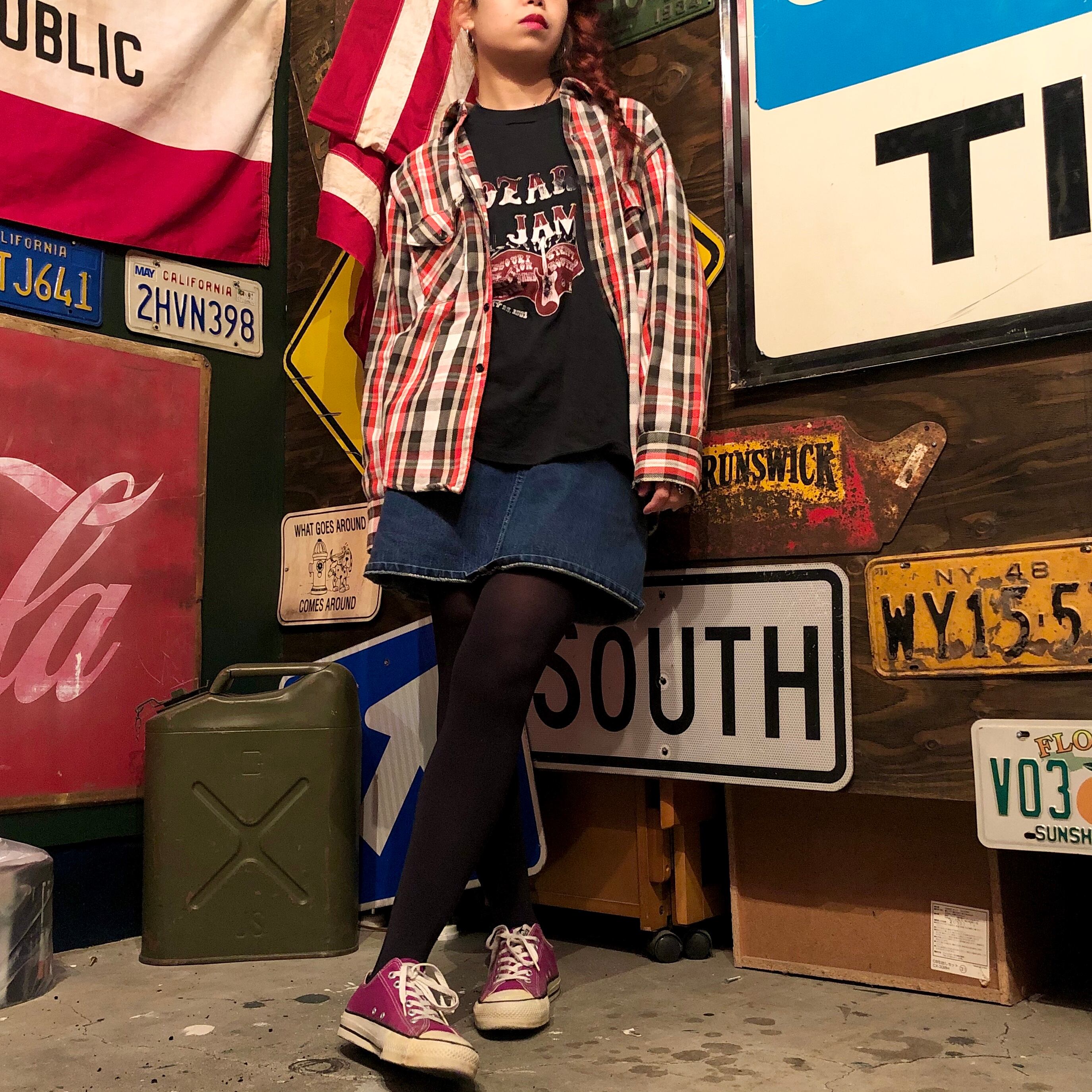 Leeのスタンダードなデニムスカートです。程よい広がりと短すぎず長すぎずな丈感、濃い目のカラーが合わせやすくてひとつ持っておくと便利なアイテムです。