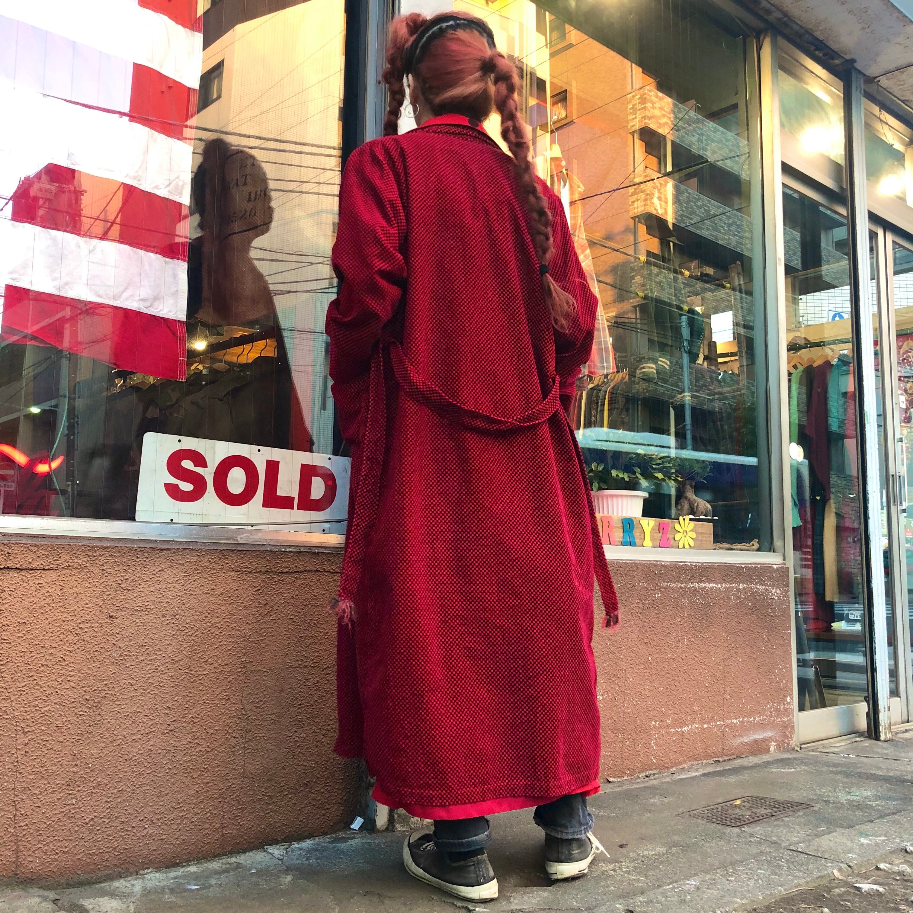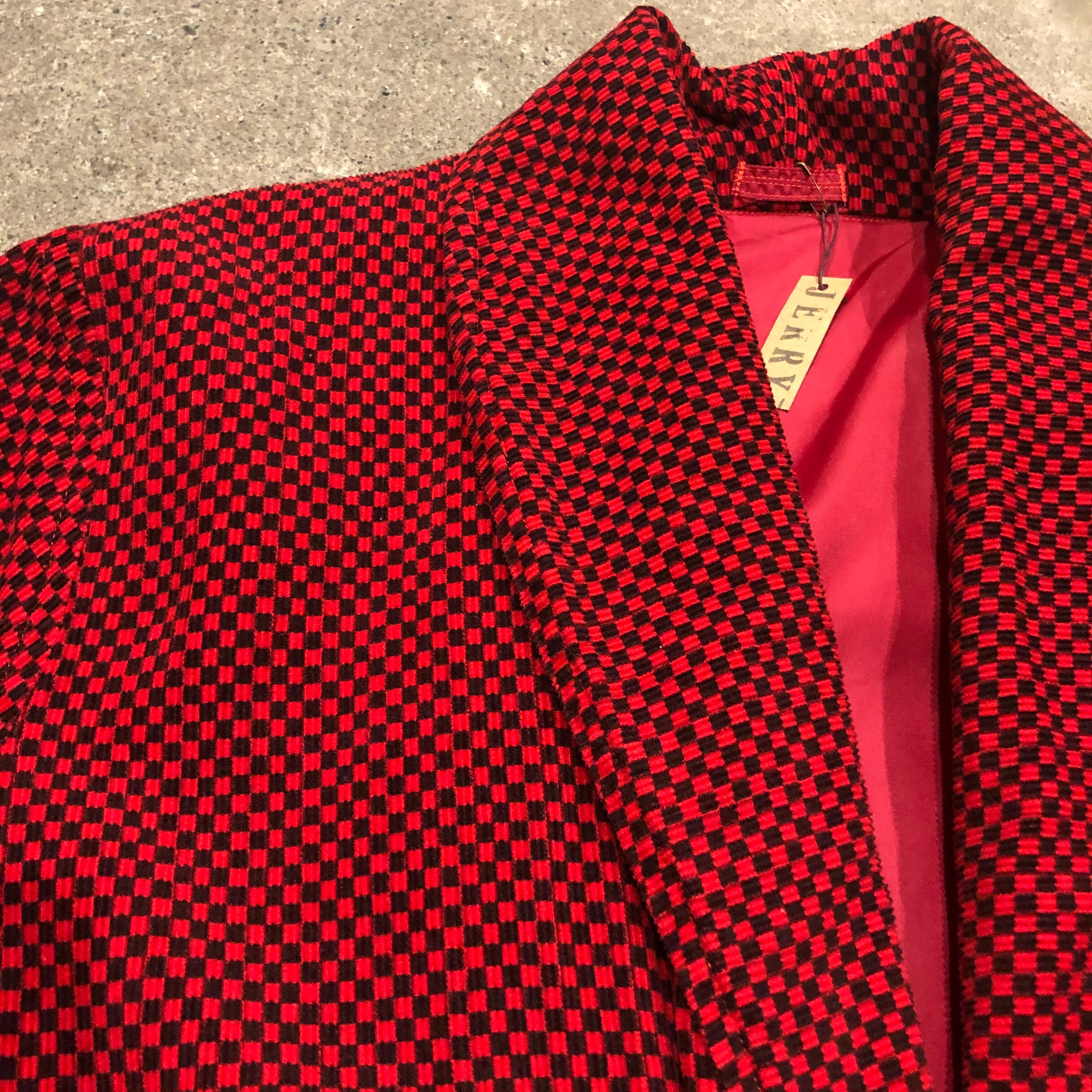 赤×黒の細かいブロックチェックがちょっとハードな雰囲気です。黒でまとめてブーツを履いて胸元に缶バッチをつけたりしてもかっこいいと思います。