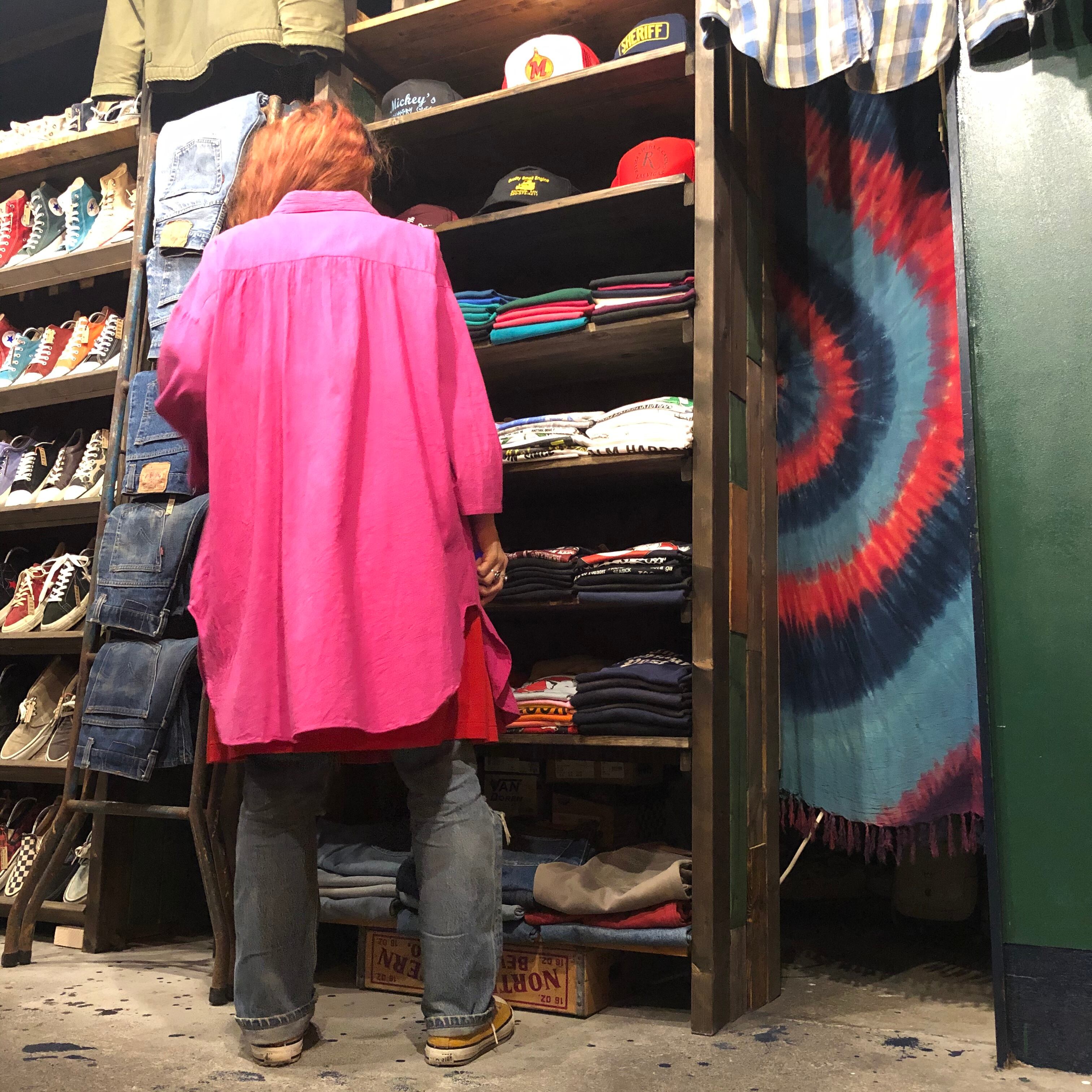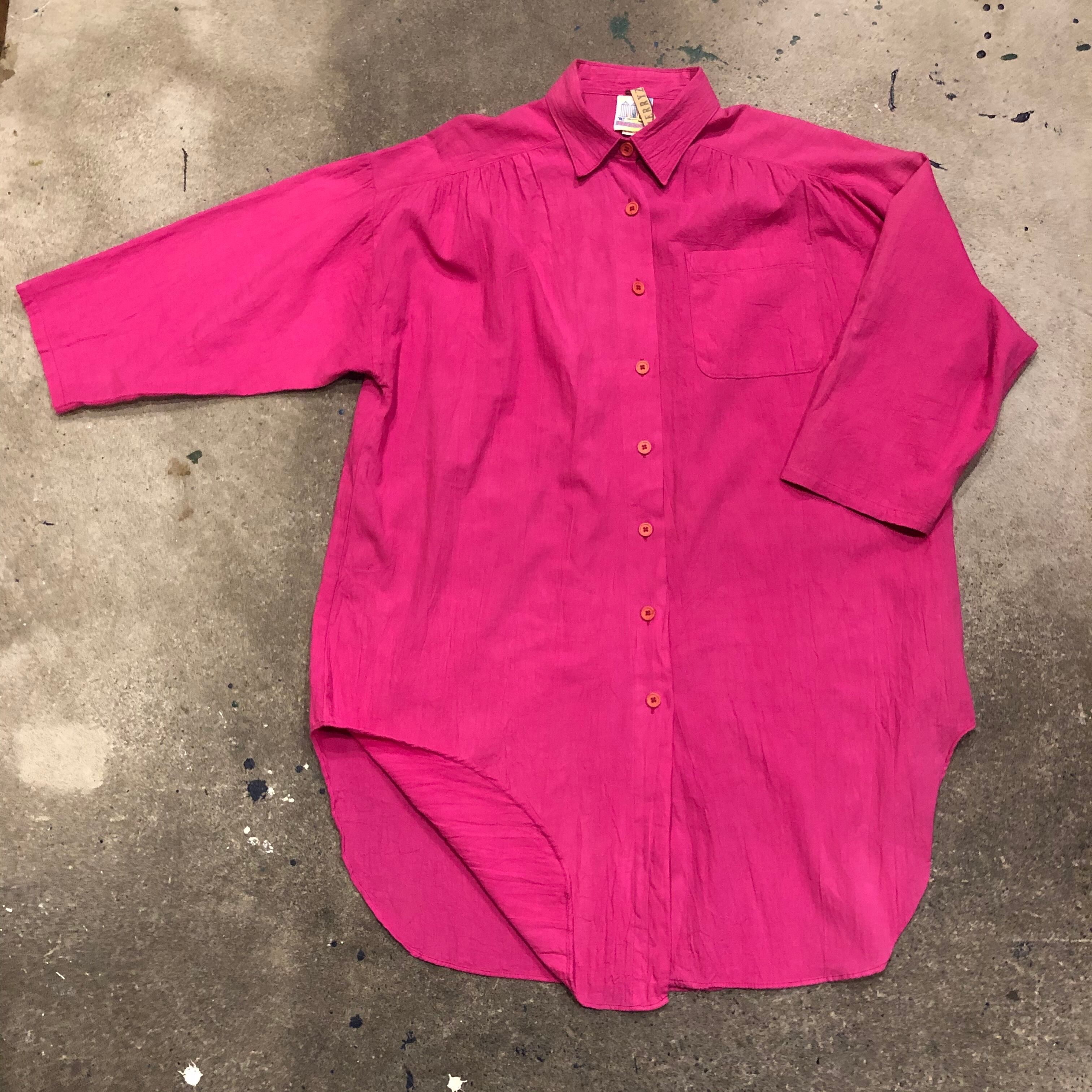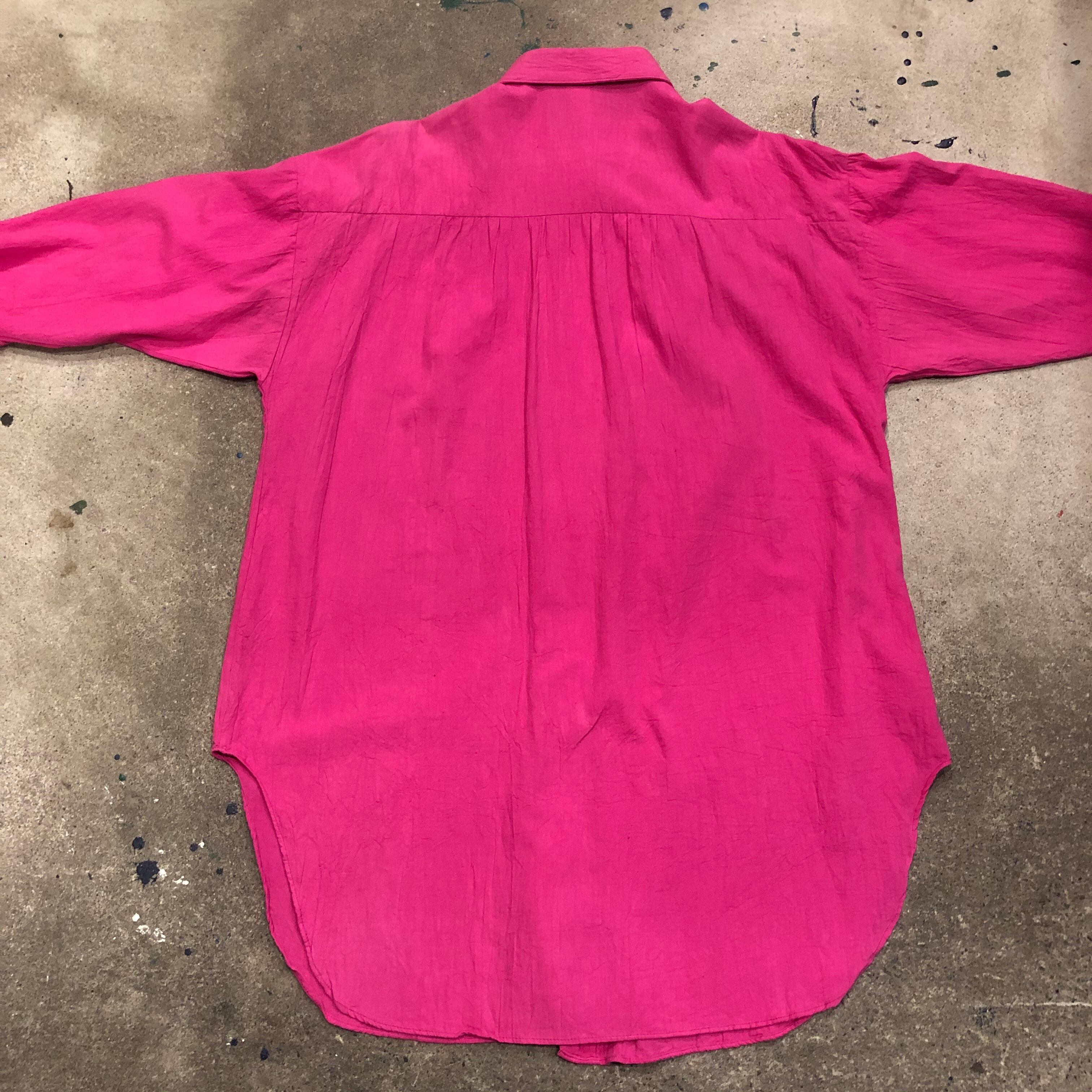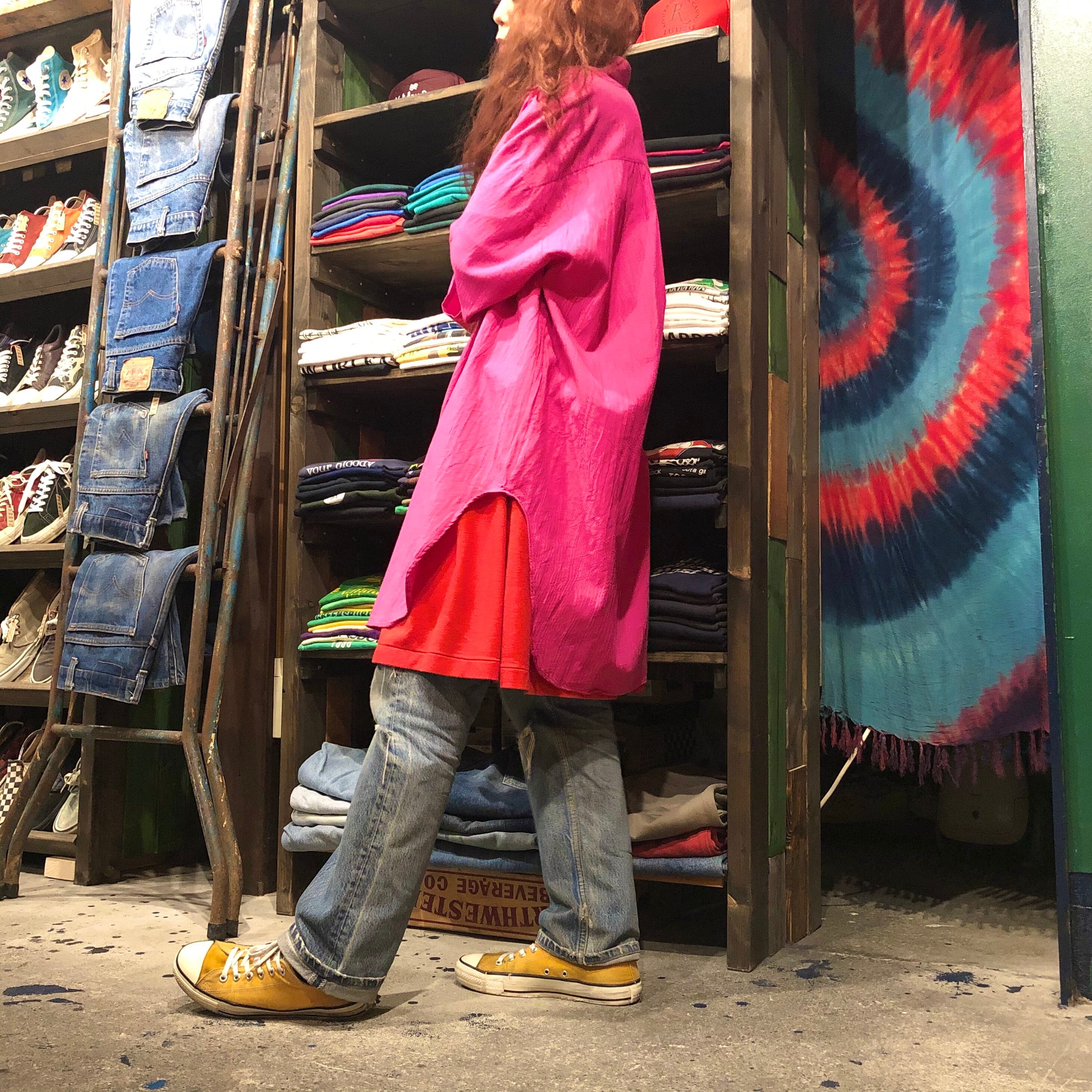 かなり軽い感じなので夏も着ていただけそうです。この濃い目のピンクはいつ見てもやっぱりかわいいと思ってしまう色ですね。まだ寒い時期はニットを上に重ねて襟と裾だけ出しても良いですね!