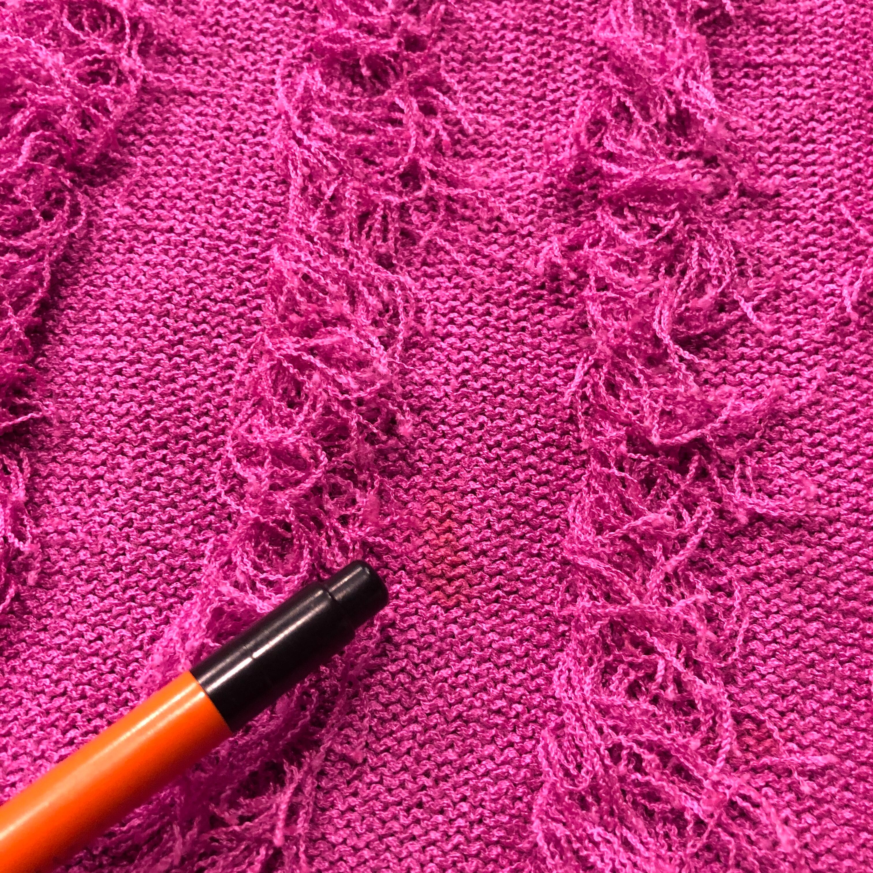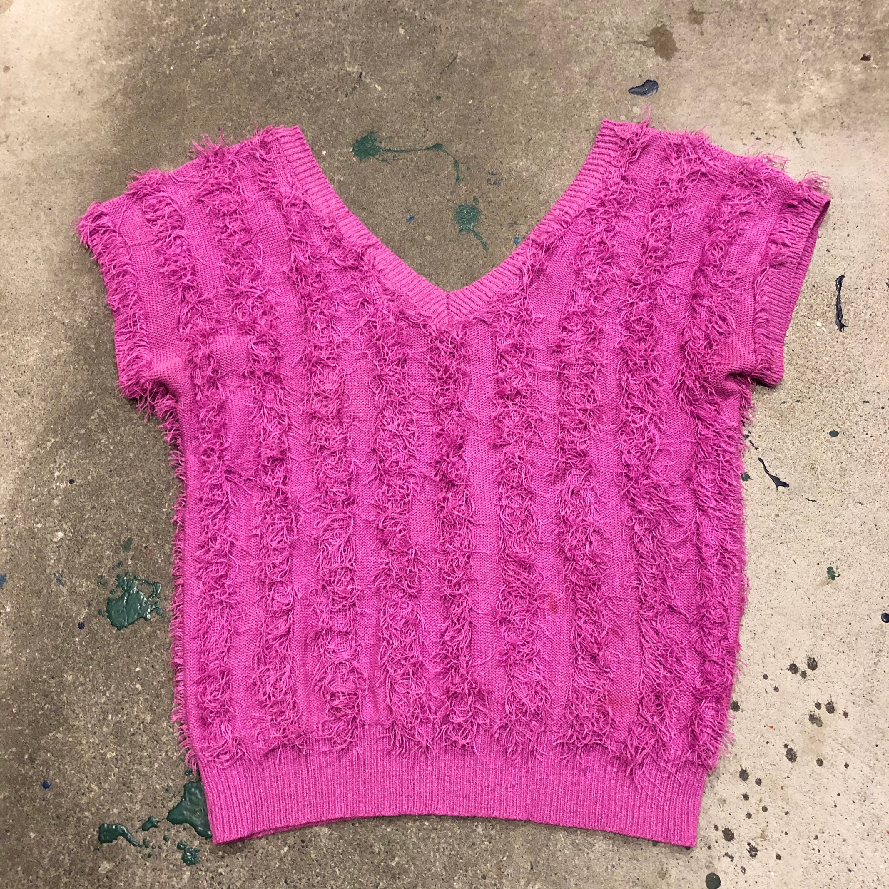 もじゃもじゃのストライプが個性的なベストです。青みがかったピンク色もかわいいです。夏は一枚で着たら、Tシャツの上に重ねたり、オーバーオールの下に合わせても可愛いと思います!