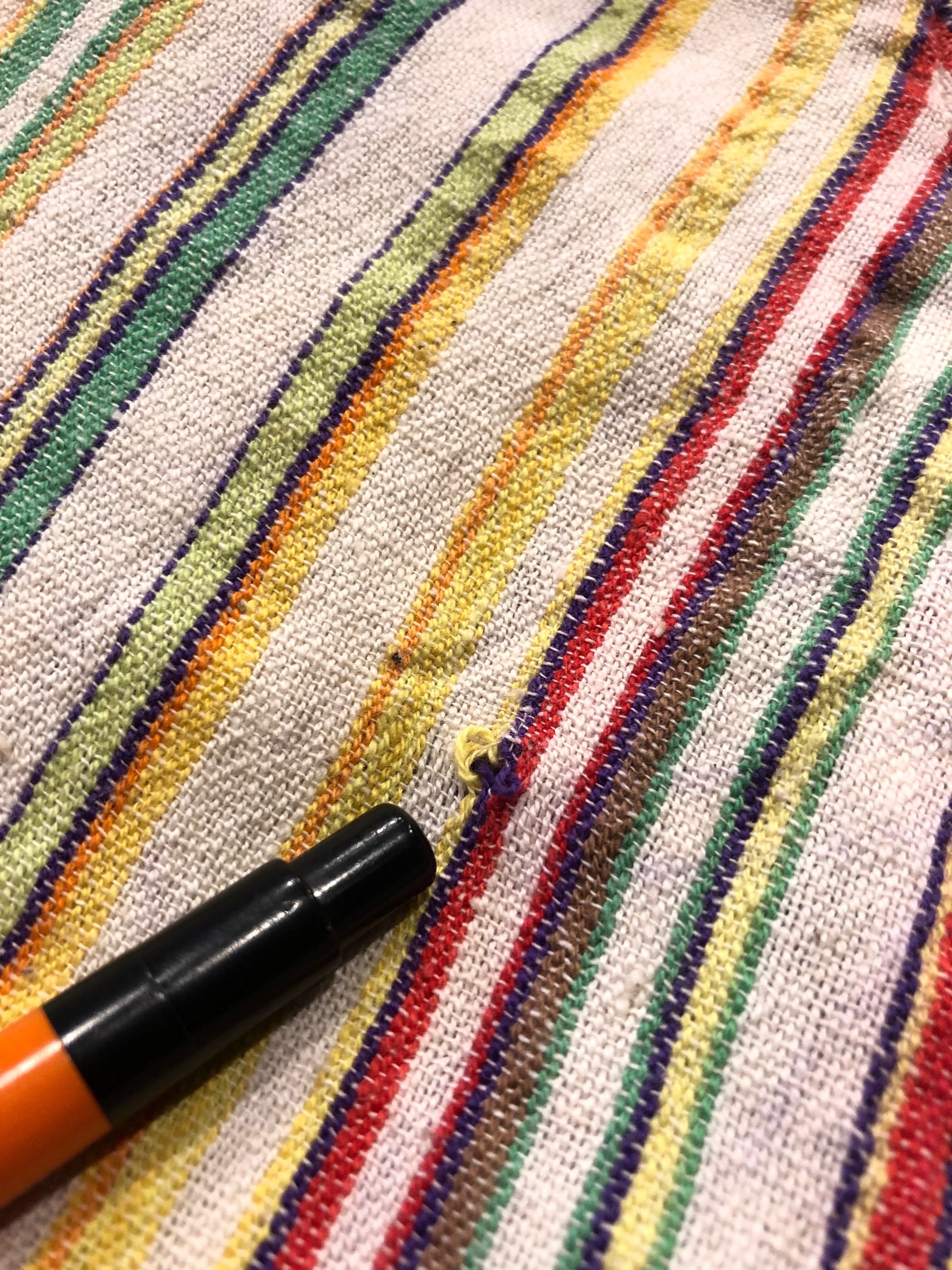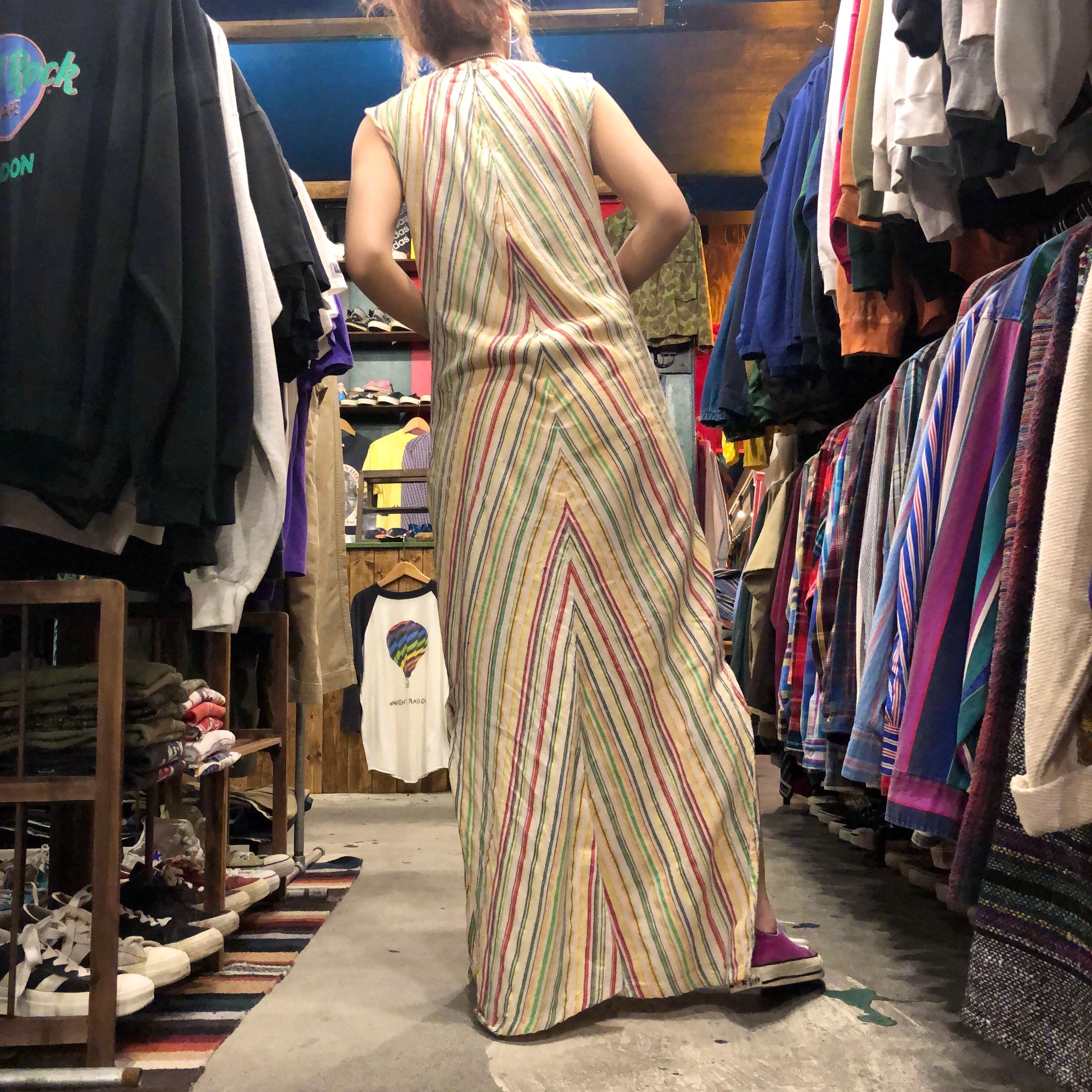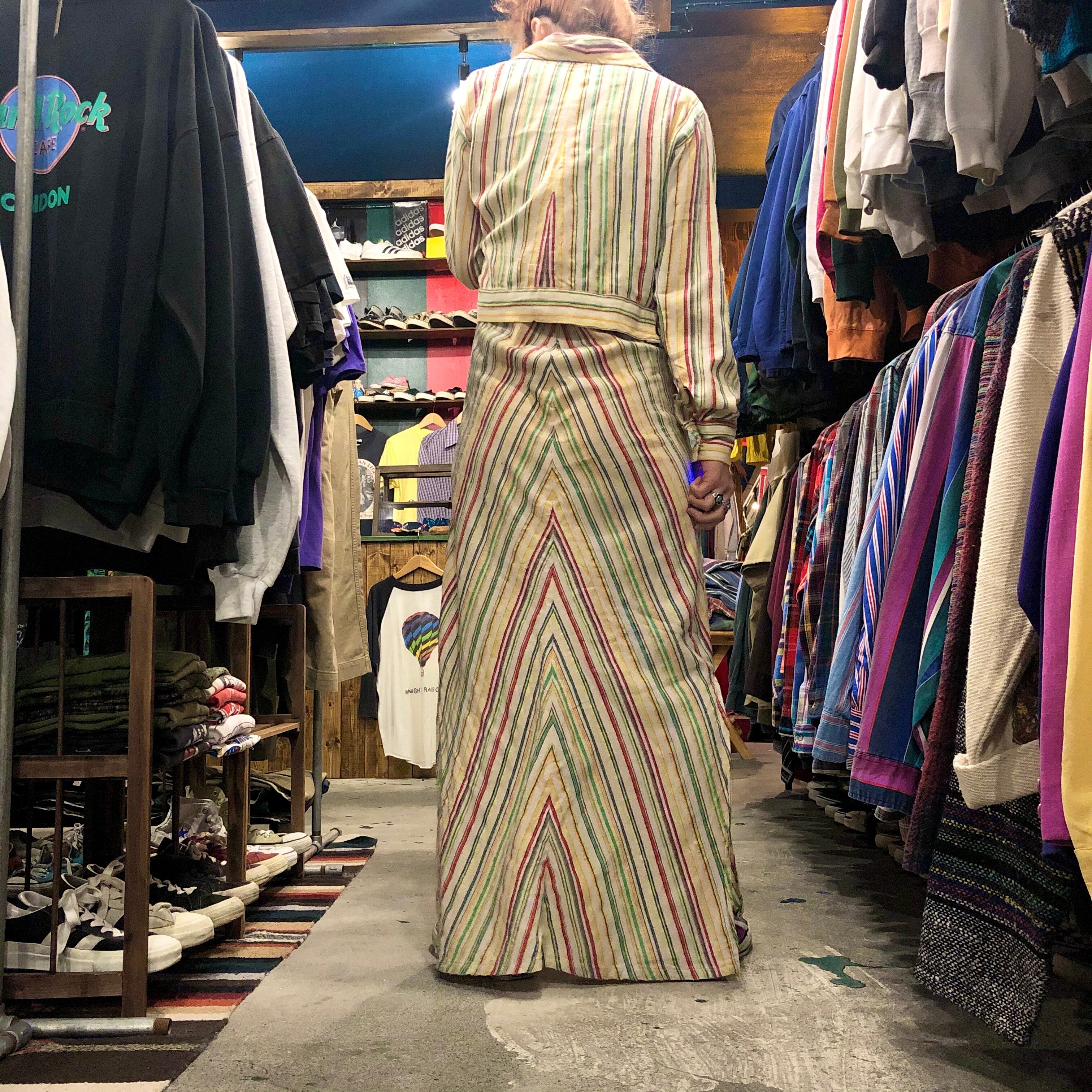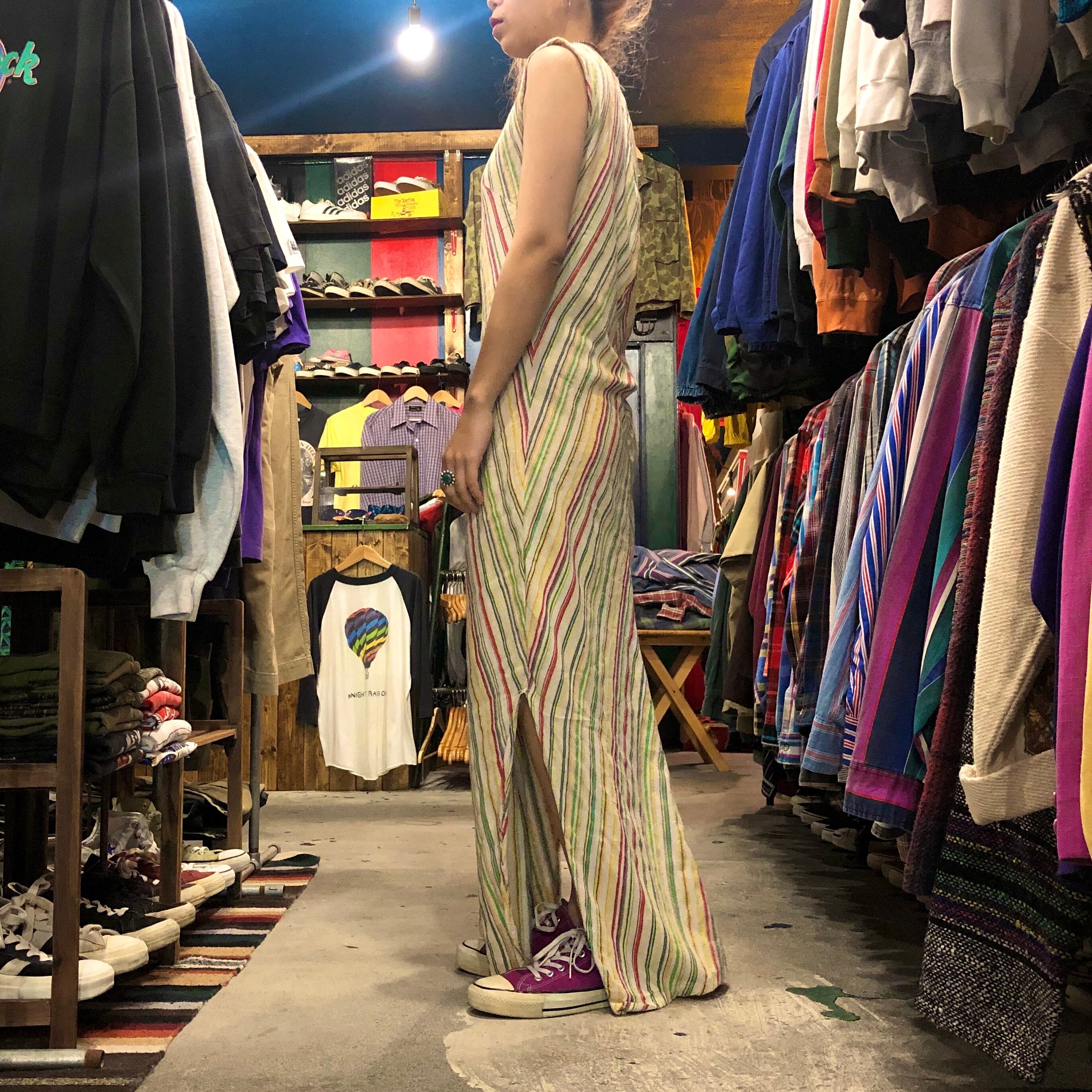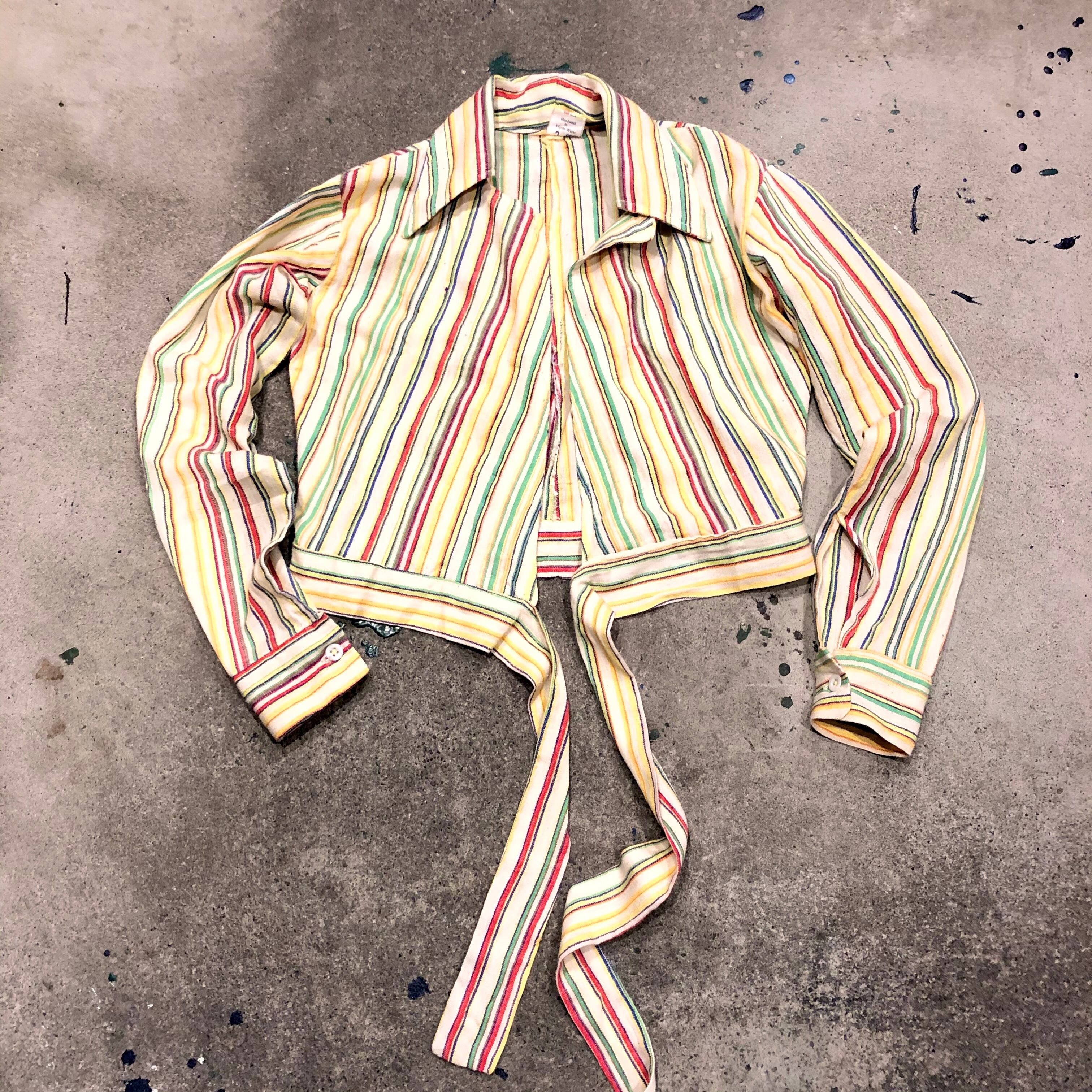 パキスタン製ハンドメイドの柔らかいリネンのような肌触りのコットンと、大人っぽいシルエット、ハッピーなストライプ柄がとっても素敵なセットアップです。別々でももちろん使いまわせそうです。ジャケットの方の紐は巻きスカートのような仕組みでお使い頂く仕様ですが、そのまま垂らして着るのもかわいいです!