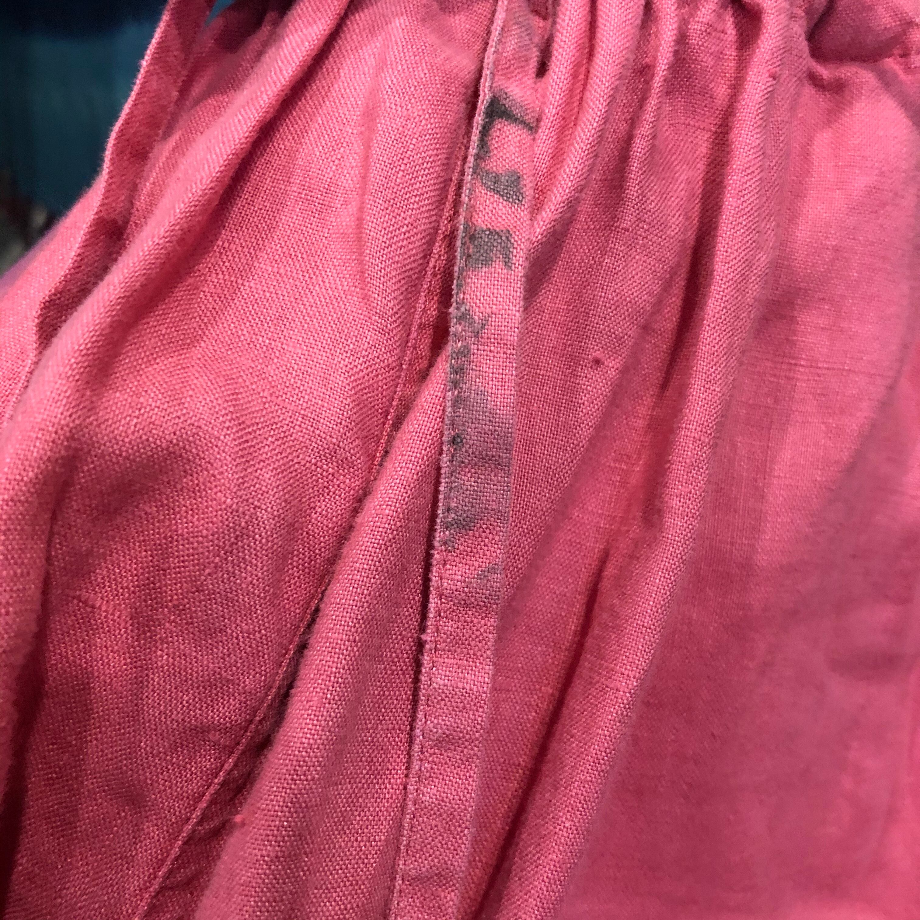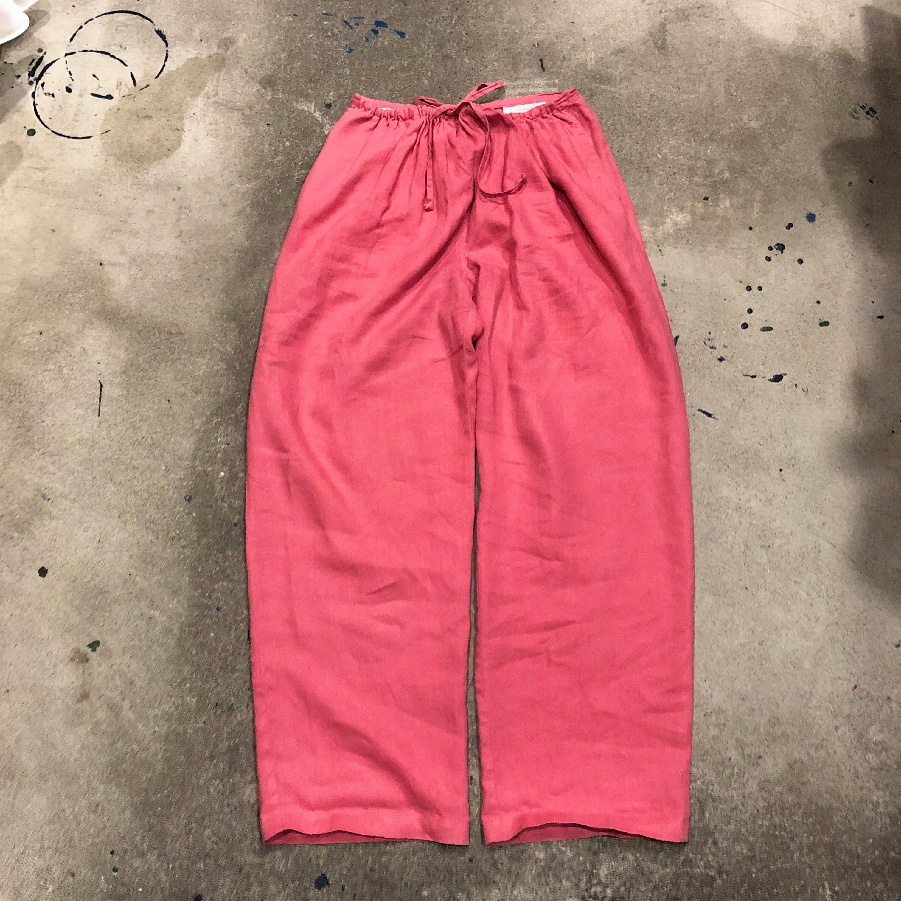 優しいピンクが柔らかい印象のイージーパンツです。前見頃のみゴムと紐で調節できる仕様になっています。リネンなので夏にもゆったり涼しく着ていただけそうです。