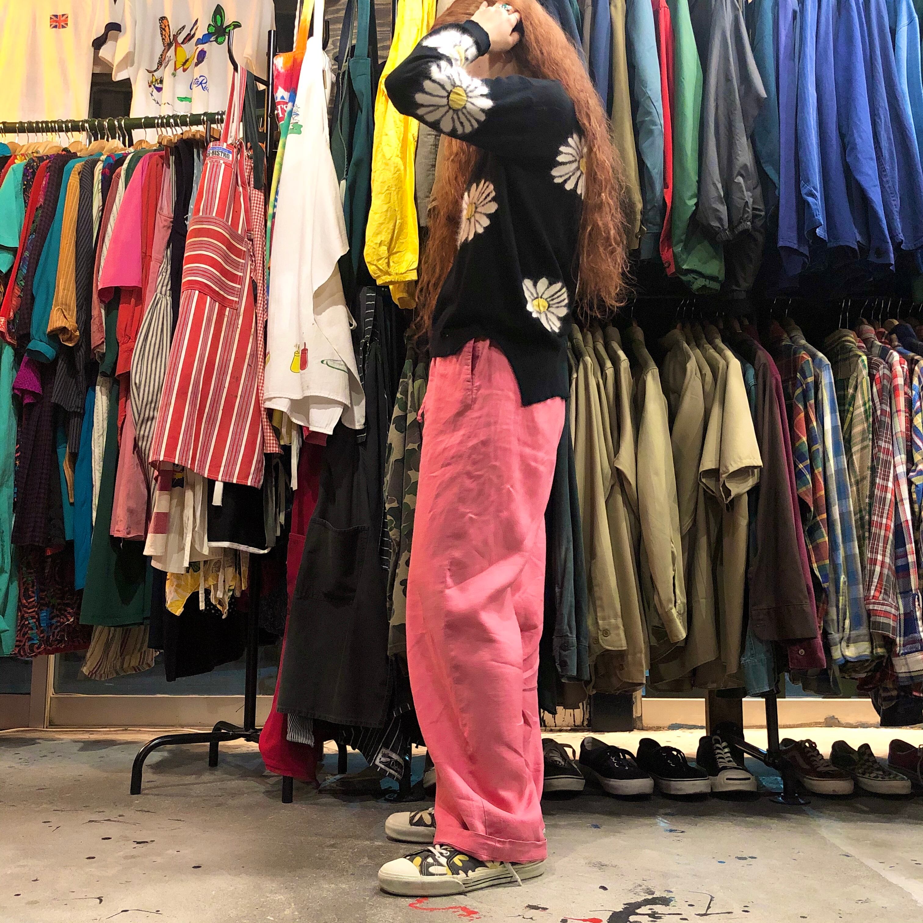 ウエストの紐と裾に洗濯では落ちない汚れがございます。その他目立った傷や汚れはありませんが、古着にご理解のある方のご購入をお願い致します。