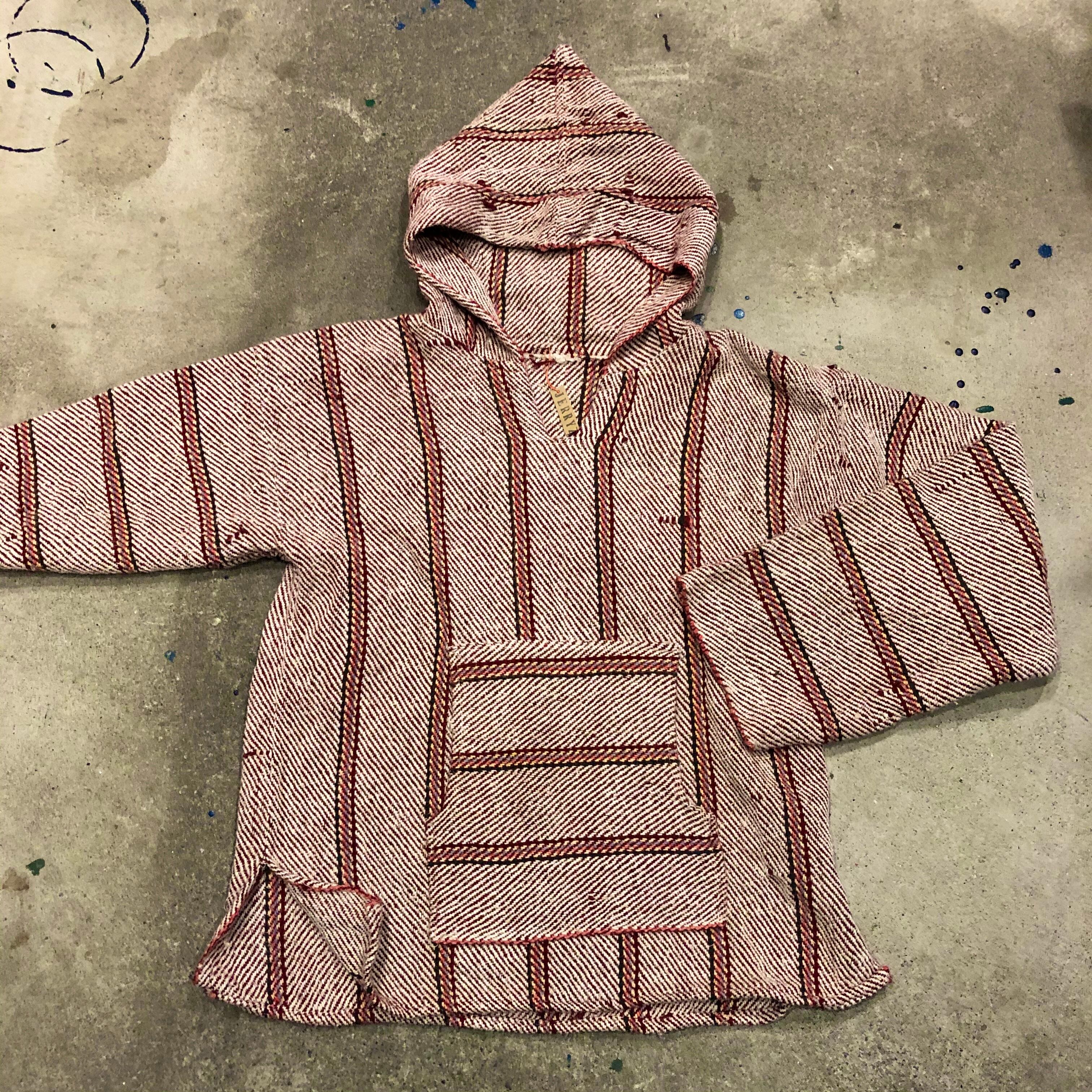 エンジやピンク系の配色がかわいい若干薄手のメキシカンパーカーです。
